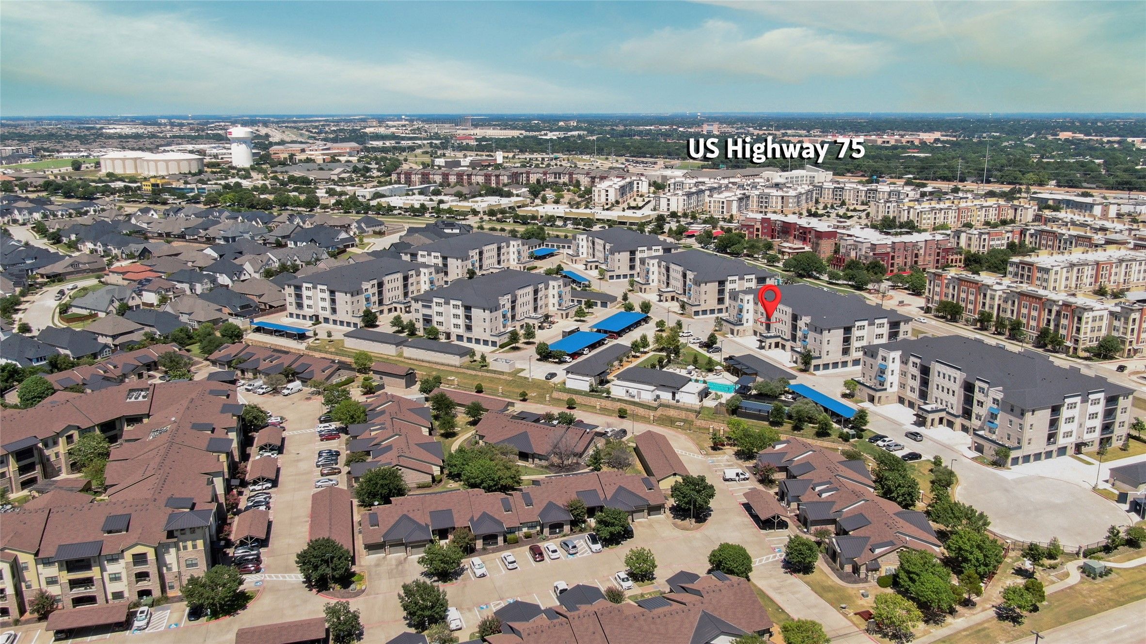 Discover modern luxury and easy living in the heart of Allen. This beautifully appointed 2-bed, 2-bath condominium offers comfort, style, & practicality in a desirable active adult 55+ community. Inside, the open-concept layout is filled with natural light & designed for both everyday living & entertaining. The spacious living area features neutral tones, quality finishes, & plantation shutters throughout, creating a warm & inviting feel. The kitchen is both stylish & functional with sleek quartz counters, SS appliances, pendant lighting, & ample cabinetry. Separate dining nook is perfect for casual meals or hosting guests. Primary suite offers a peaceful retreat with custom closet system & an ensuite bath with contemporary fixtures & handicap grab bars for added accessibility. Secondary bedroom provides flexibility for guests, a home office, or added living space, & includes closet shelving for extra organization. Ceiling fans in both bedrooms enhance comfort, while thoughtful touches like a hanging rod in the laundry add convenience. Enjoy peaceful views from the private balcony overlooking the putting green & pool area, without road or highway noise...the perfect spot for morning coffee. This unit also stands out for its exceptional storage & convenience. It includes an assigned attached 1-car garage on the first floor of the building. At 25 feet deep, it offers more space than the standard detached garages found elsewhere in the community. Adjacent to the garage is an assigned air-conditioned storage unit, a rare and valuable upgrade, with only 8 storage units per building & none currently available. Additional upgrades include keyless entry at the front door & both garage doors, a surge protector on the AC compressor, & thoughtful custom features throughout. With low-maintenance living, appealing architecture, & close proximity to shopping, dining, recreation, & top-rated Allen amenities, this home offers the perfect balance of comfort, function, & lifestyle.