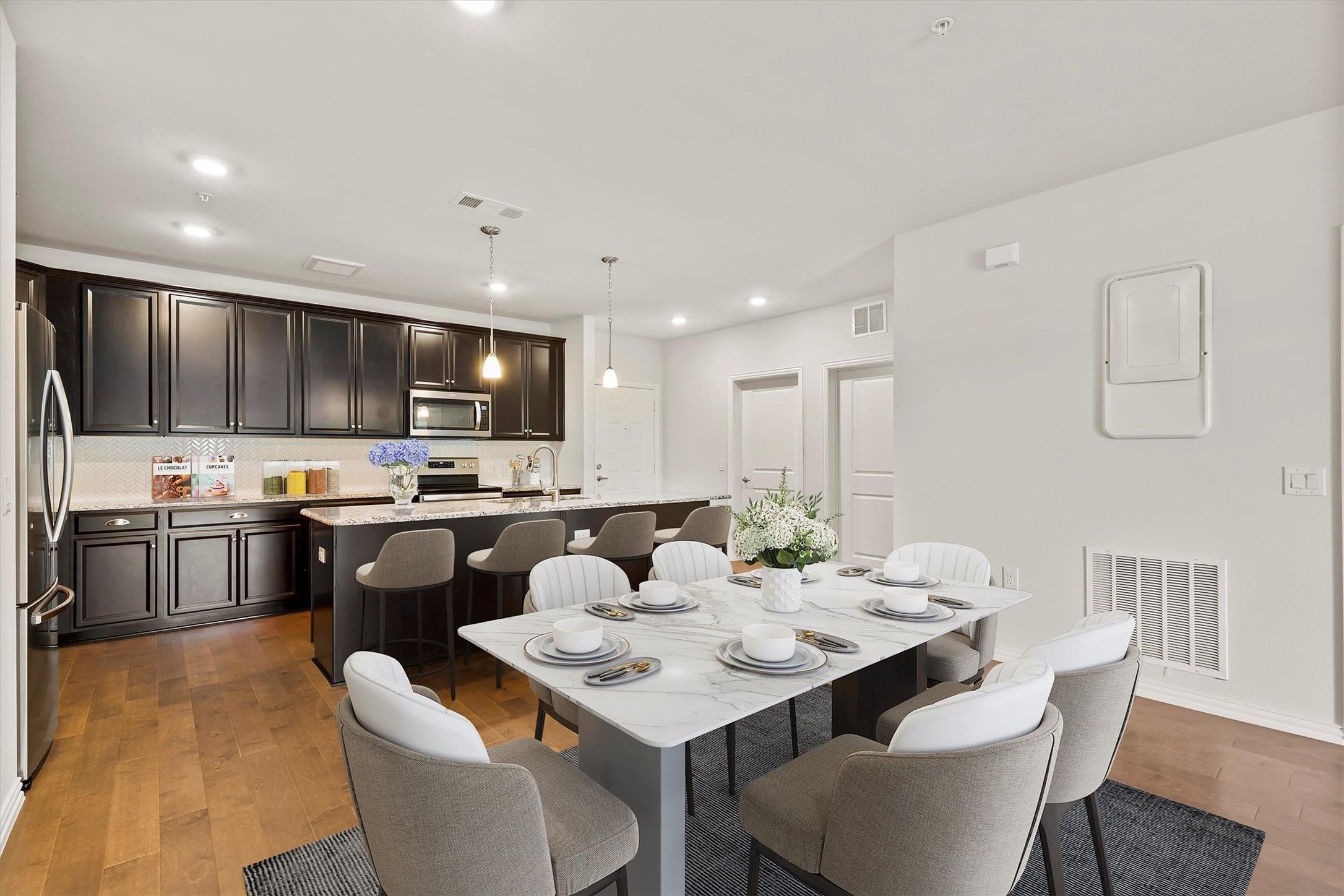 - Dishwasher, Electric Cooktop, Electric Oven, Disposal, Microwave