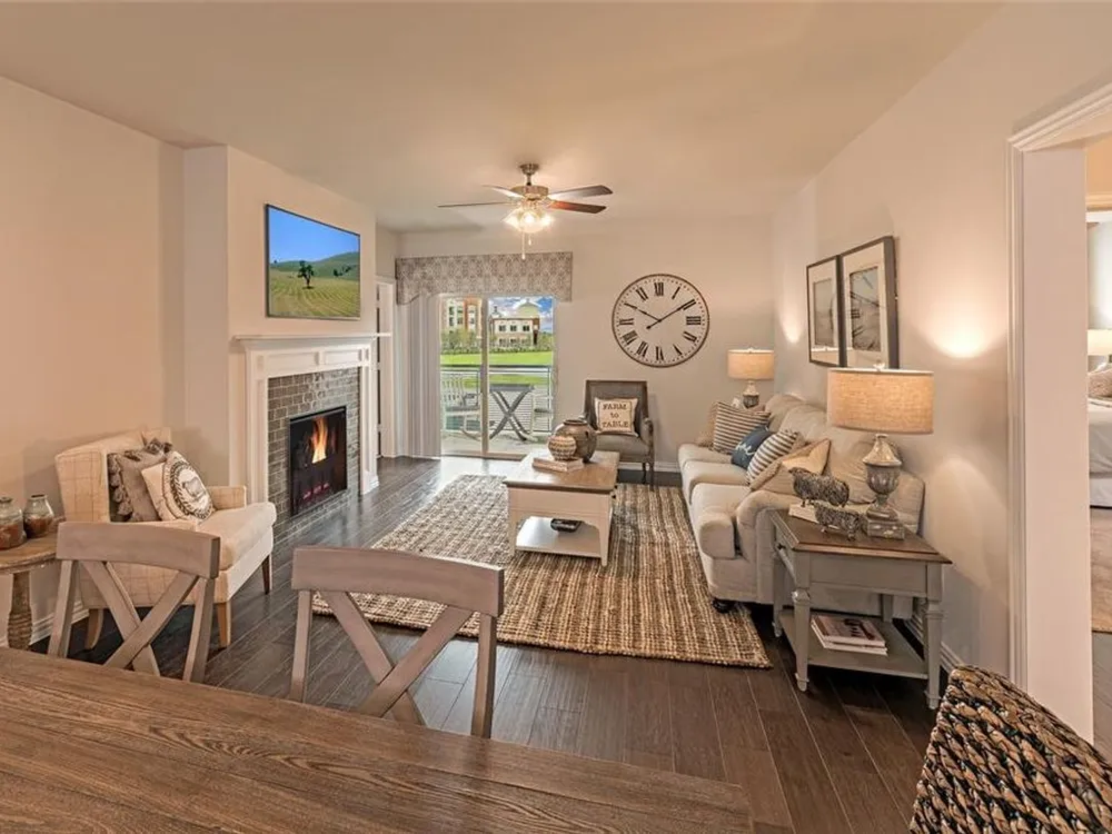 Beazer's Active Adult, 55 or better community! This unit is ADA compliant! Engineered wood floors in the living area, dining and kitchen. 2-inch White PVC Blinds included. 1 Car garage plus covered parking, community Pool, fitness center, pickleball court, grilling stations, party room, putting green, and picnic area with fire pit. Low tax rate, no MUD or PID taxes! COA fee includes hazard insurance for the building, landscape, secured access, elevators and common area maintenance.*Days on Market Based on Start of Construction* *Estimated Completion July 2024*