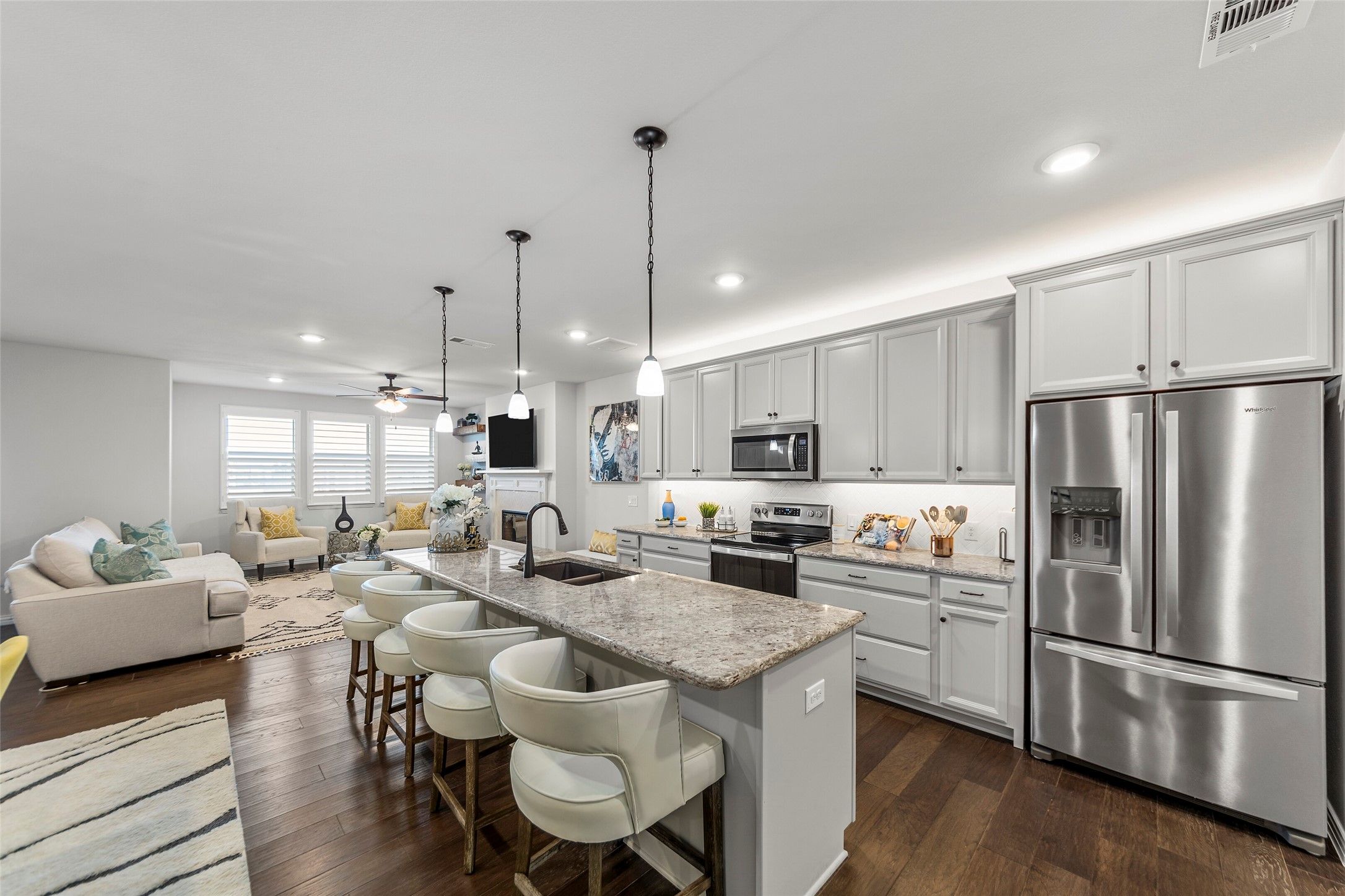 - Built-in Features, Decorative/Designer Lighting Fixtures, Double Vanity, Eat-in Kitchen, Granite Counters, High Speed Internet, Kitchen Island, Open Floorplan, Pantry, Cable TV, Walk-In Closet(s)