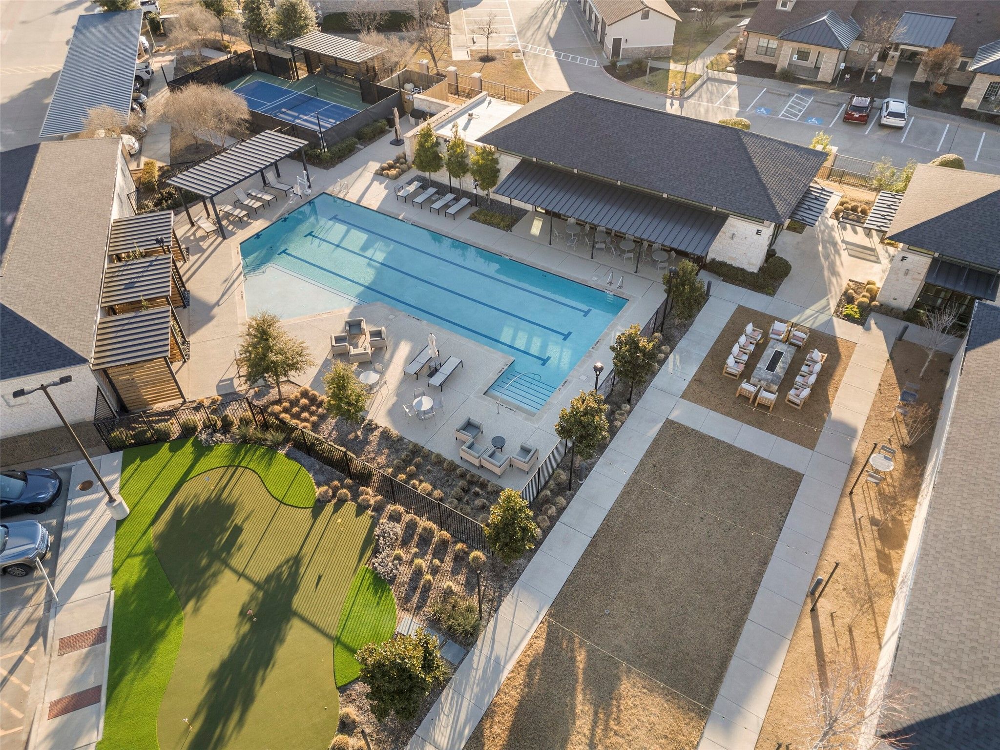 - Clubhouse, Elevator, FitnessCenter, Other, Pickleball, Pool, TrailsPaths, CommunityMailbox, Curbs, PuttingGreen
