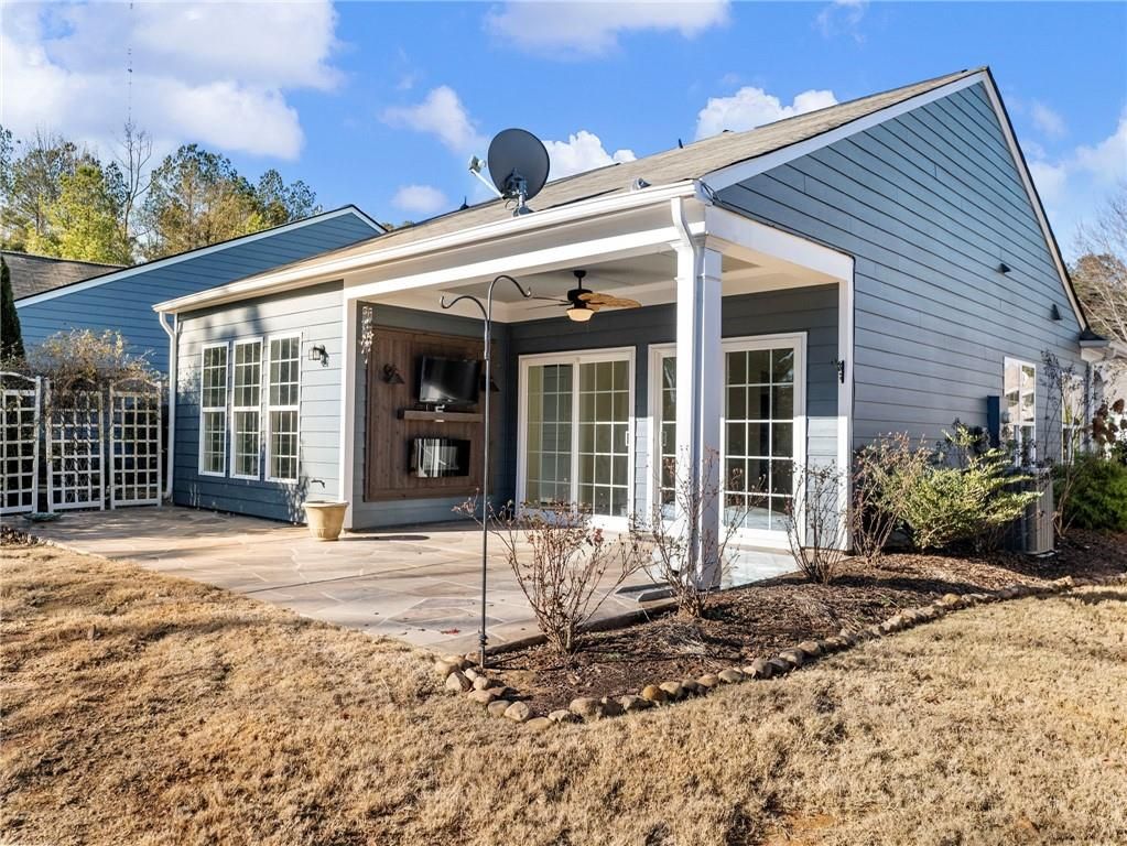 Lifestyle living at its finest in the Active Adult Community of The Village at Deaton Creek—where the work has been done and all that’s left is to move in and enjoy. Surrounded by nature, this home is filled with abundant natural light and showcases thoughtful attention to detail both inside and out. The professionally designed landscaping features lush gardens that attract birds and butterflies, while being strategically placed to create serene, picturesque views from nearly every interior window. The well-designed two-bedroom floor plan offers effortless flow, anchored by a spacious kitchen that opens seamlessly to the dining and living areas—allowing for flexible furniture placement to suit your lifestyle. A desirable split-bedroom layout provides privacy, with a guest bedroom and bath, a dedicated home office or den, and a tranquil owner’s suite overlooking the scenic backyard. Outdoor living is equally impressive. The covered lanai with a fireplace is the perfect space for entertaining or simply relaxing while enjoying the peaceful surroundings. As they say in real estate—location matters. This home is tucked away on a quiet cul-de-sac near the rear of the neighborhood and offers convenient access to the back gate, providing an alternative route to nearby restaurants, shopping, and everyday conveniences. The community itself is ideally located near the Northeast Georgia Medical Center campus, a wide array of dining and retail options, and offers golf-cart-friendly access within the gates and to surrounding areas via the Braselton LifePath. With amenities that are truly unmatched, this home offers an exceptional opportunity to enjoy active adult living at its best.