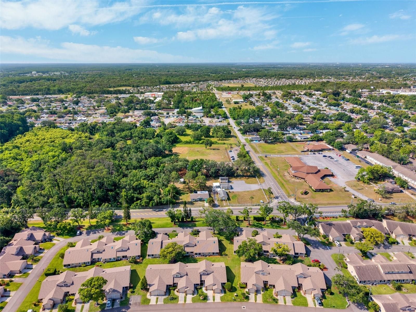One or more photo(s) has been virtually staged. Welcome to this beautifully maintained villa nestled in the welcoming 55+ neighborhood of Briar Patch in New Port Richey! This end-unit, 2-bedroom, 2-bath home delivers easy, single-story living with an inviting open floorplan, high vaulted ceilings, and abundant natural light enhanced by skylights. With a brand new A/C (2024) and new roof (2024), this home is move-in ready and designed for comfort and ease. Enjoy the serenity of a landscaped garden view from your front porch, or unwind under the enclosed back patio, surrounded by rain gutters, flower beds, and sliding doors that blend indoor and outdoor living. Inside, you’ll find a split bedroom layout for added privacy, a spacious living/dining combo, and a bright kitchen with an informal dining nook, laminate countertops, and electric appliances — perfect for both daily living and entertaining. Retreat to the owner’s suite, featuring a custom built-in closet system and a large en suite bath with a seamless tile shower stall. Additional perks include an inside utility room, ample storage, and guest-friendly parking options including a driveway, garage with opener, and guest parking. Located directly across from the community pool and clubhouse, this villa provides unbeatable access to amenities in a friendly inviting neighborhood. The HOA is refreshingly low and covers exterior maintenance, as well as the roof, making for truly hassle-free living. Whether you're looking for a seasonal escape or your forever Florida home, this vibrant and friendly community awaits. Don’t miss your chance to live the lifestyle you deserve!