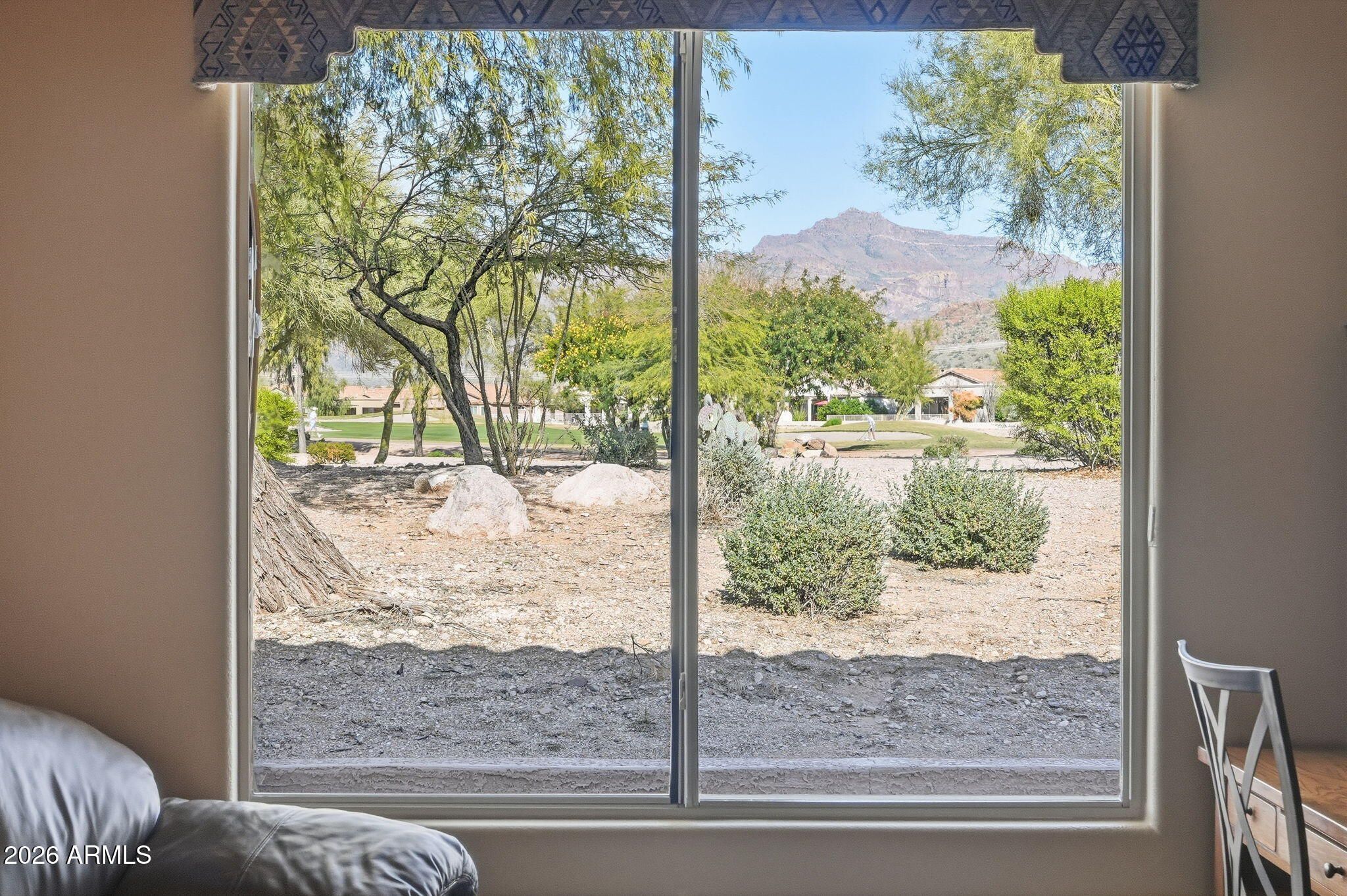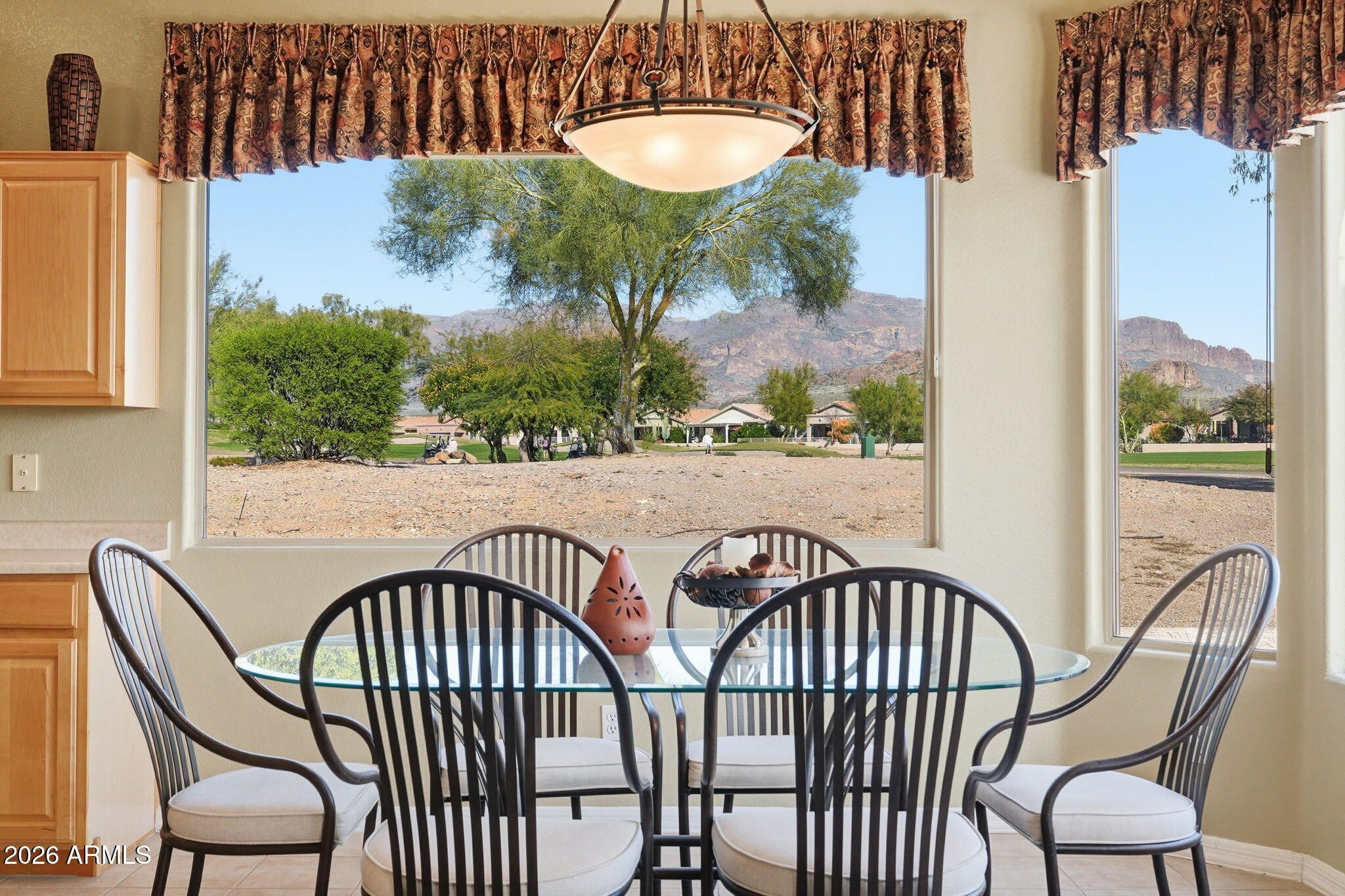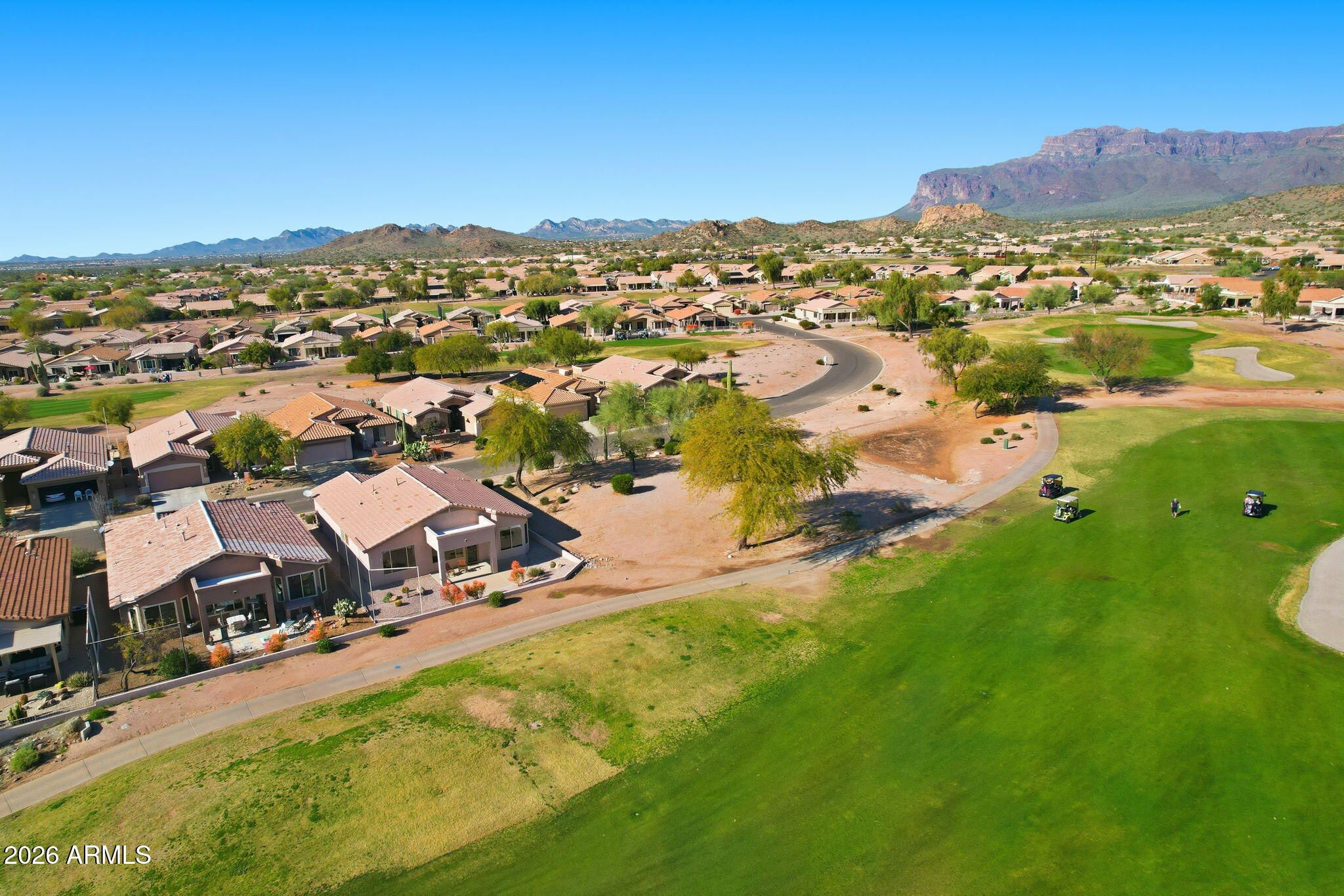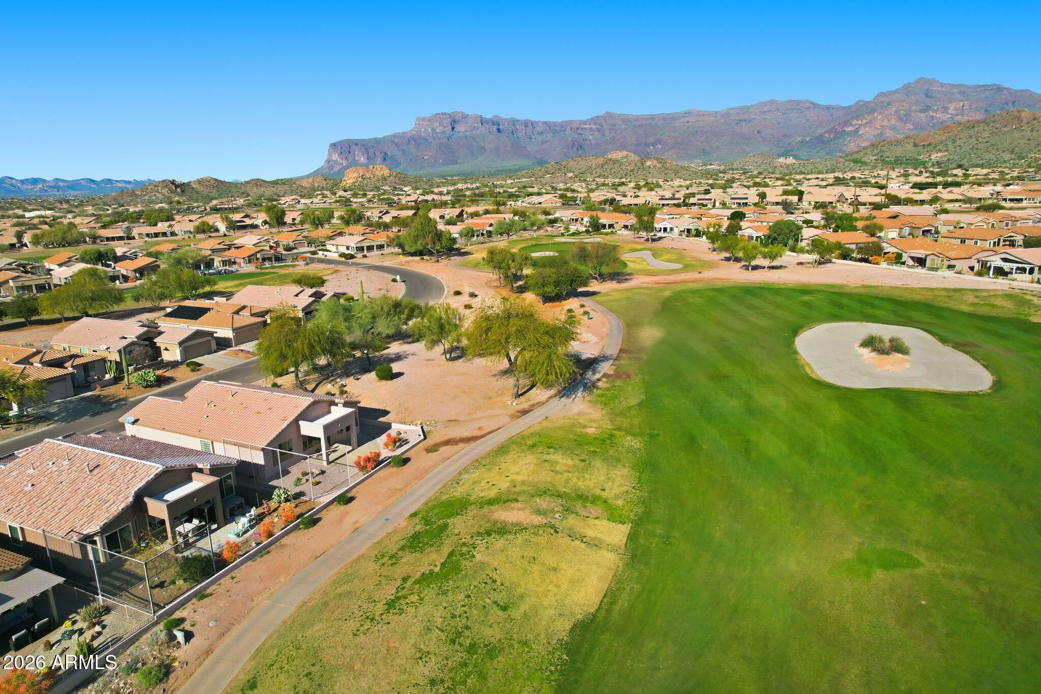 AWESOME LOCATION, New Roof, New Ac, Exterior Paint And The Best Views Imaginable. Backing To The Golf Course, This Home Is Surrounded By Common Area And Mountain Views, There Is Only One Neighbor. The Home Is Being Sold Turnkey Furnished And Is The Popular 1,700 Square Feet Saguaro Model That Has 2 Bedrooms, 2 Bathrooms And A Den. Large Windows Throughout Floods The Home With Natural Light. Picture Window In Kitchen Has Sweeping Panoramic Views Of The Superstition Mountains. Kitchen Has A Pantry, Loads Of Cabinet Space And A Breakfast Bar. Split Floor Plan. Primary Bedroom Has A Large Bay Window While The Bathroom Features Both A Shower And Bath Tub. On a quiet street.