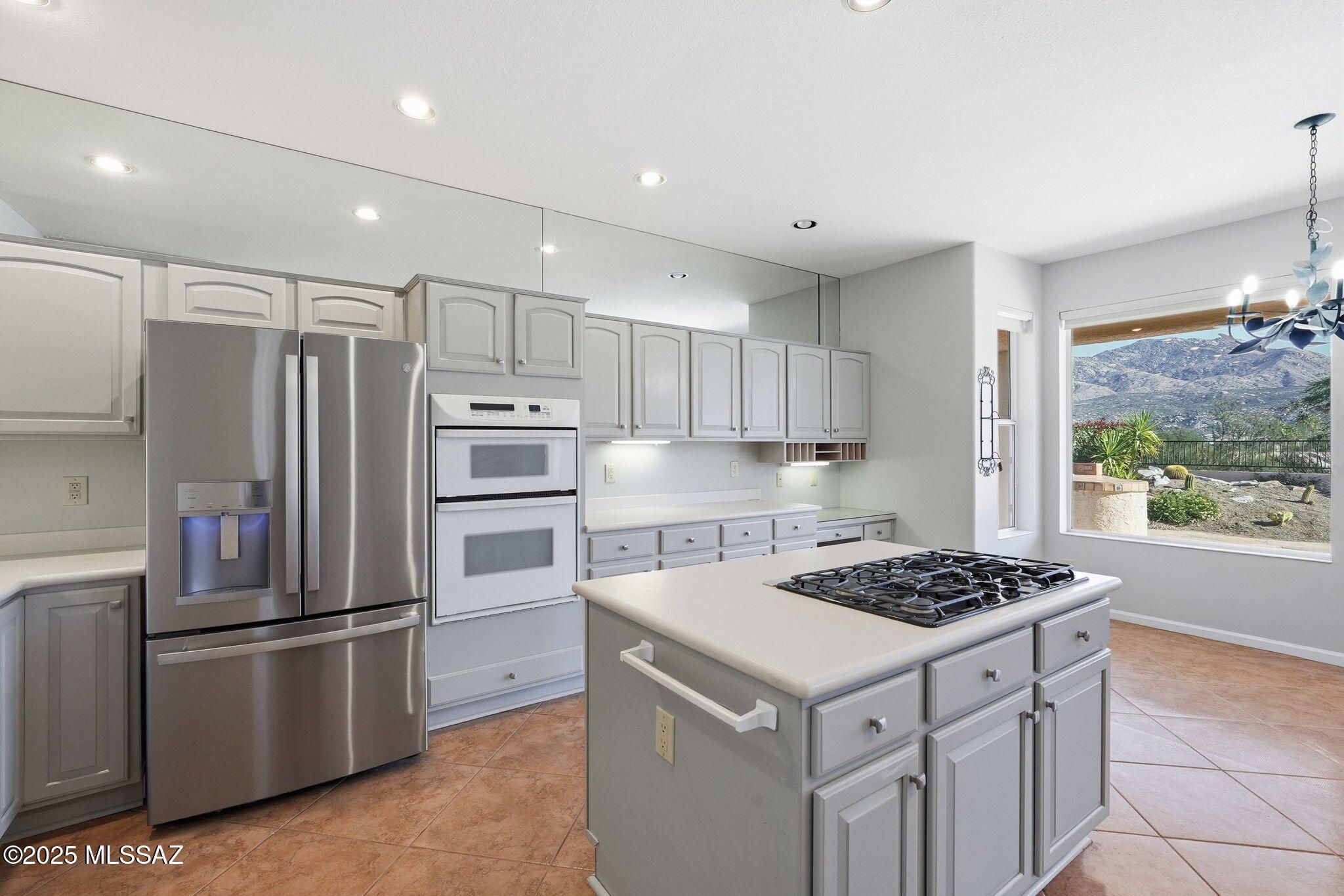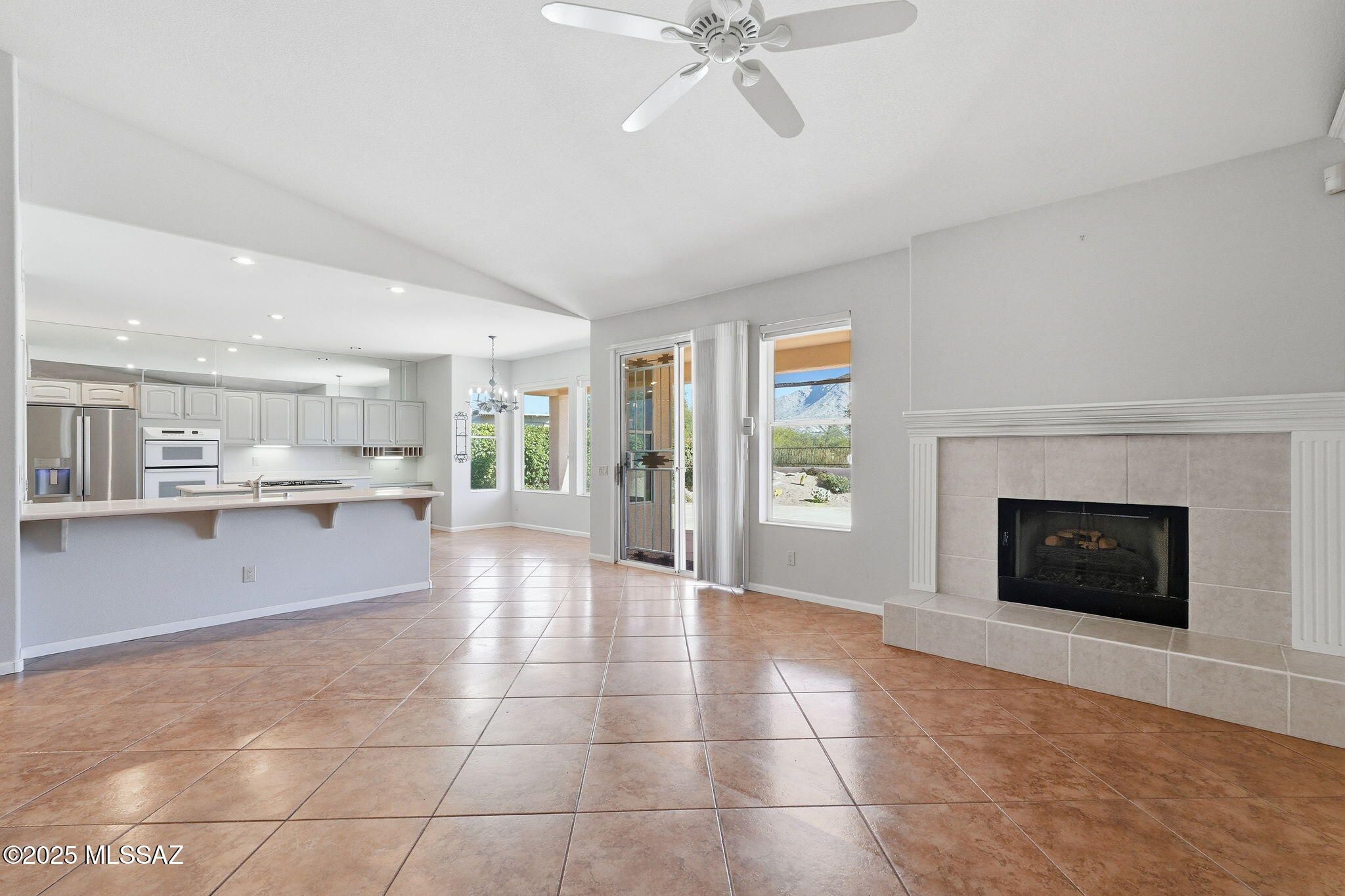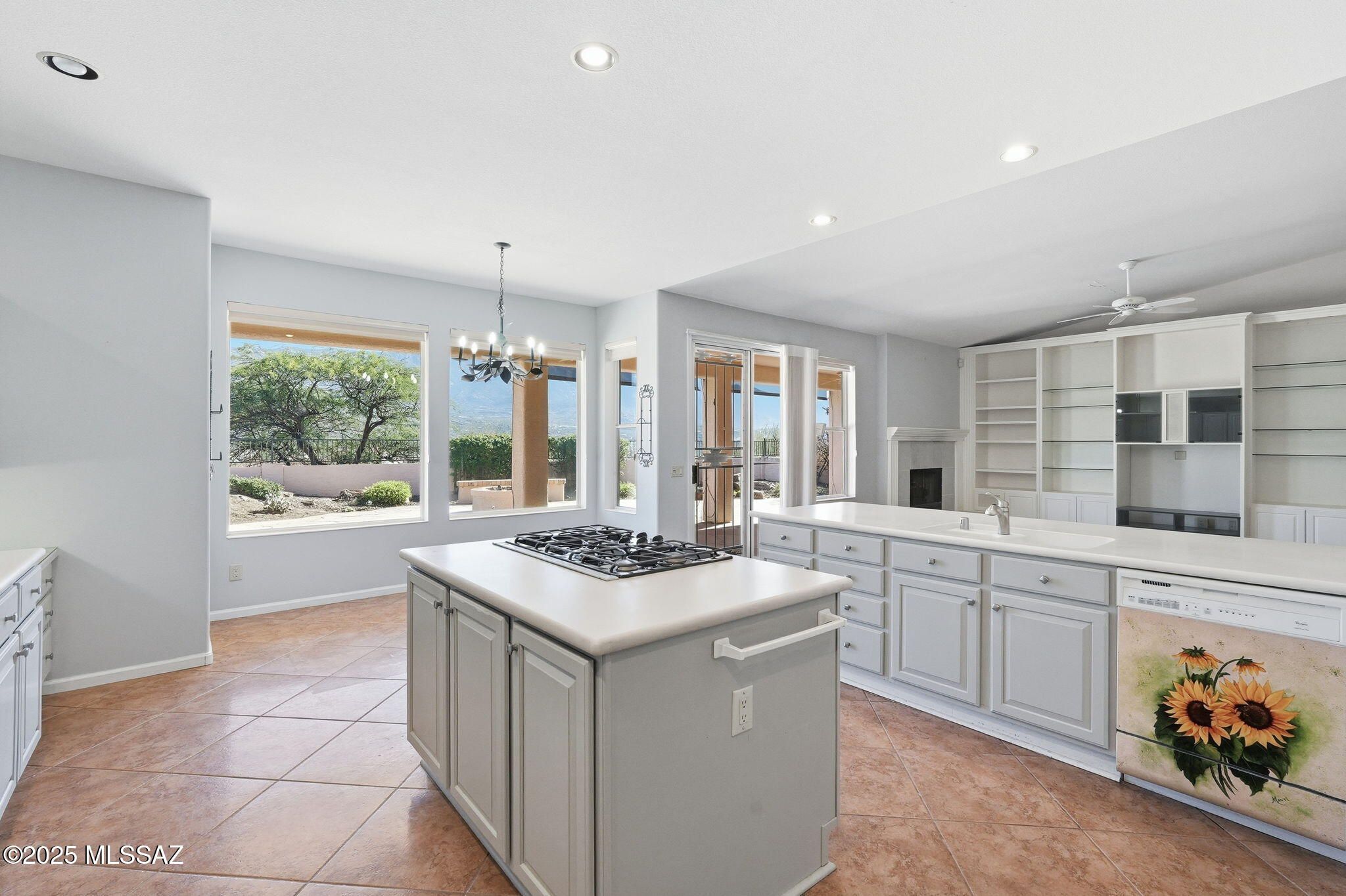 LOCATION! LOCATION! LOCATION! Enjoy stunning mountain views from this elevated, private SaddleBrooke One lot. Lovingly maintained by its original owner since 1999, this 2-story Galleria offers 3 beds and 2.5 baths. The front living room is ideal for a den or hobby space, while the family room features a gas fireplace and built-ins. The kitchen includes painted cabinets, Corian counters, walk-in pantry, island with gas cooktop, and stainless French-door fridge, plus a wet bar. Upstairs is a casita with 2 beds and a bath. The primary suite has dual closets, soaking tub, and separate shower. Highlights include plantation shutters, ample storage, laundry with sink, 3-car garage with workbench, and a flagstone patio with built-in grill to enjoy the views. Opportunity to make it your own!