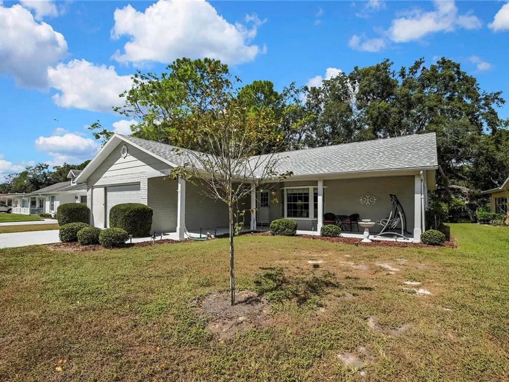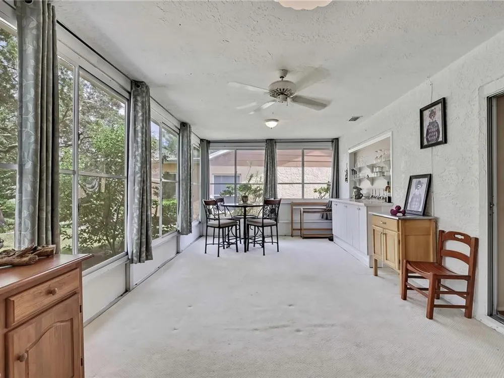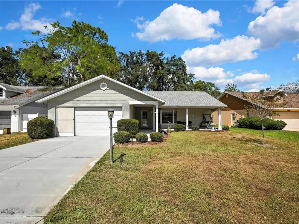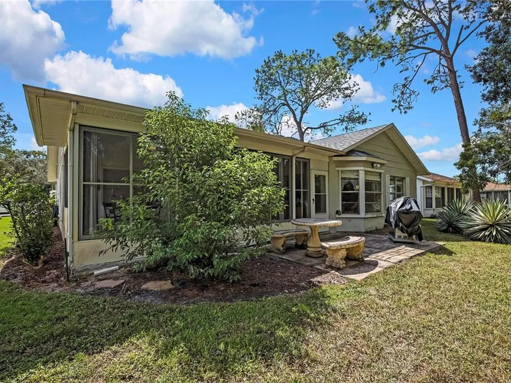 Luxury and Active Retirement Living in Timber Pines! Experience the best of 55+ living in the sought-after, 24-hour gated community of Timber Pines. This spacious 2-bedroom, 2-bath home with a garage offers approximately 2,020 sq ft of living space, including a large, enclosed Florida room under A/C and heat — perfect for year-round enjoyment. The split-bedroom floor plan provides privacy and plenty of room to spread out. As you enter, you'll find an open living and dining area that flows seamlessly into the bright sunroom with a built-in bar area — ideal for entertaining. The kitchen features abundant cabinet space, a dinette area with bay windows overlooking the private backyard, and easy access to the large family room on the opposite side of the home. The main suite includes ample closet space, while the guest bedroom and hall bath are equally comfortable for visitors. Additional features include an indoor laundry room located just off the screened garage, laminate flooring throughout for easy maintenance, and a newer roof (2023) HVAC (8/2017). Step outside to relax or grill on the patio surrounded by lush greenery. Home is offered with furnishings, all appliances including washer and dryer, grill, concrete patio set and garage tools, so you can move right in and start enjoying your new home! Timber Pines is a vibrant, country club-style community spanning over 1,400 acres and featuring four golf courses, two swimming pools, a performing arts center, fitness center, newly remodeled restaurant, and a wide range of indoor and outdoor recreational amenities. With countless clubs and activities, there's always something to do. Residents love the beautifully maintained grounds, natural scenery, and friendly atmosphere that make Timber Pines truly special. Conveniently located in Hernando County, Florida, the community is just minutes from shopping, dining, and beautiful Gulf Coast beaches. Spectrum cable and high-speed internet are included in the HOA. Check out the 3D walkthrough floor plan!
