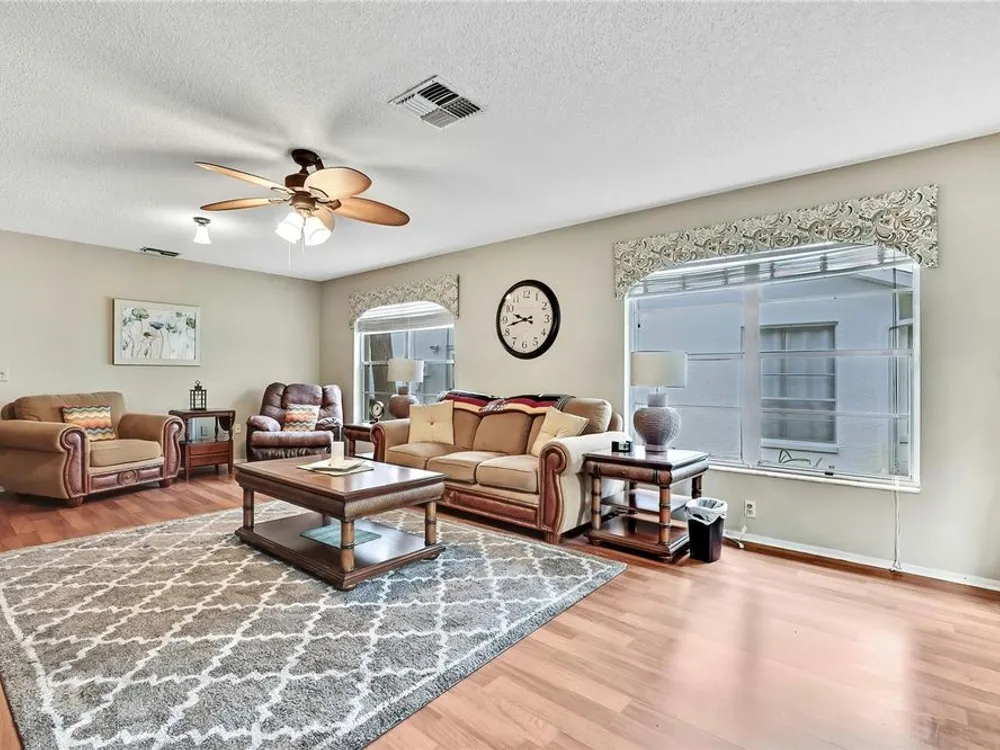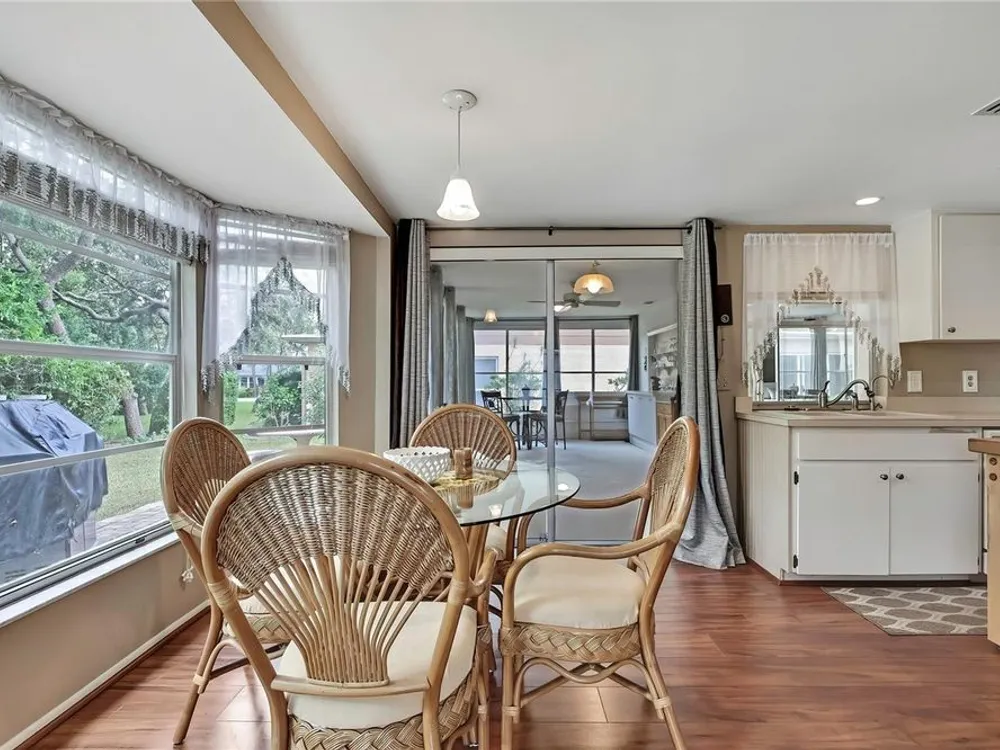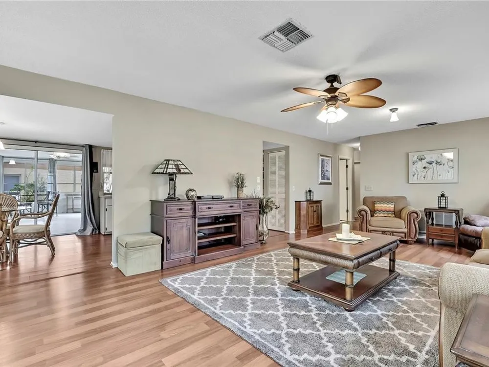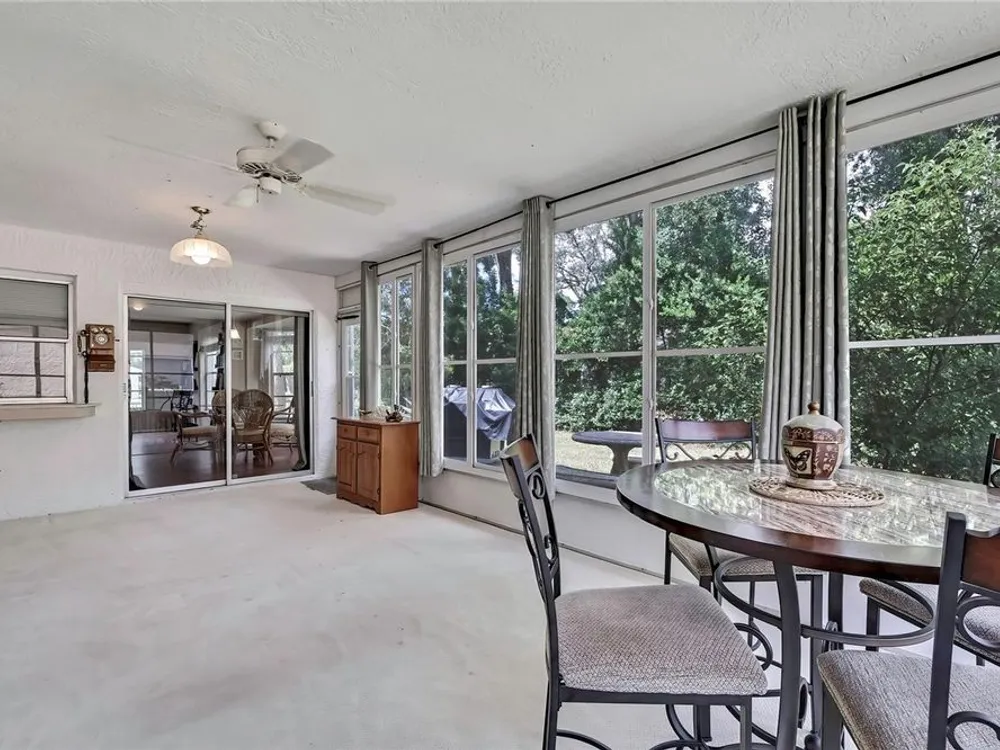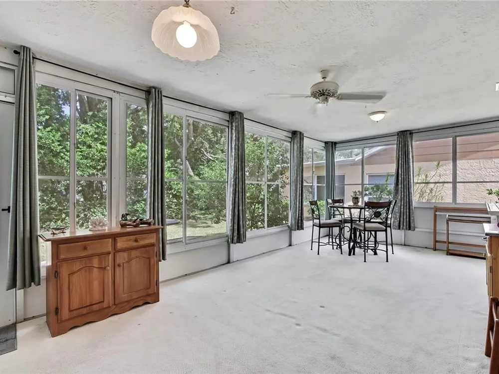 Luxury and Active Retirement Living in Timber Pines! Experience the best of 55+ living in the sought-after, 24-hour gated community of Timber Pines. This spacious 2-bedroom, 2-bath home with a garage offers approximately 2,020 sq ft of living space, including a large, enclosed Florida room under A/C and heat — perfect for year-round enjoyment. The split-bedroom floor plan provides privacy and plenty of room to spread out. As you enter, you'll find an open living and dining area that flows seamlessly into the bright sunroom with a built-in bar area — ideal for entertaining. The kitchen features abundant cabinet space, a dinette area with bay windows overlooking the private backyard, and easy access to the large family room on the opposite side of the home. The main suite includes ample closet space, while the guest bedroom and hall bath are equally comfortable for visitors. Additional features include an indoor laundry room located just off the screened garage, laminate flooring throughout for easy maintenance, and a newer roof (2023) HVAC (8/2017). Step outside to relax or grill on the patio surrounded by lush greenery. Home is offered with furnishings, all appliances including washer and dryer, grill, concrete patio set and garage tools, so you can move right in and start enjoying your new home! Timber Pines is a vibrant, country club-style community spanning over 1,400 acres and featuring four golf courses, two swimming pools, a performing arts center, fitness center, newly remodeled restaurant, and a wide range of indoor and outdoor recreational amenities. With countless clubs and activities, there's always something to do. Residents love the beautifully maintained grounds, natural scenery, and friendly atmosphere that make Timber Pines truly special. Conveniently located in Hernando County, Florida, the community is just minutes from shopping, dining, and beautiful Gulf Coast beaches. Spectrum cable and high-speed internet are included in the HOA. Check out the 3D walkthrough floor plan!