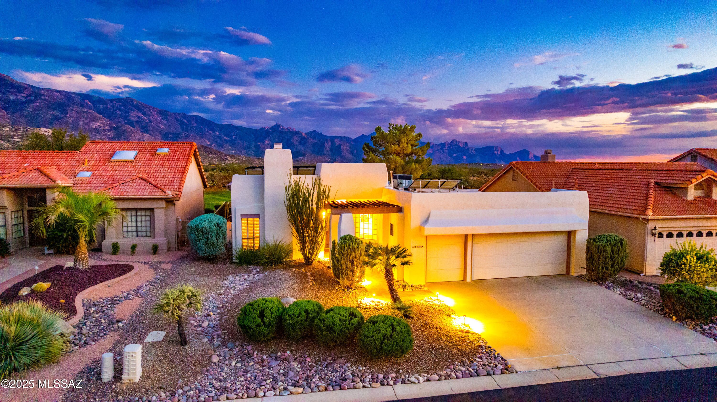 NEW PRICE!! Spectacular Saddlebrooke Home! MOVE-IN READY! READY TO GO! Stunning Mountain and Golf Course Views! Sparkling Pool/Spa, Extended Flagstone Patio and OWNED Solar!! Impressive Interior with Beautiful Saltillo Tile throughout, all the Extras and Sweeping Mountain Views across the back of the home. Relaxing Family Room and Living Room, both with fireplace. Spacious Cook's Kitchen with lots of cabinets and granite counters! SS Appliances and Induction Cooktop. Primary Suite is owner's oasis with back patio access, VIEWS, Jetted Tub, Walk-In Shower and LARGE Walk-In Closet! Great Office/Den Space with all the Built-Ins! 2.5 Car Garage with space for Golf Cart(s)! Epoxy Flooring and Work Bench! Plus Enjoy Saddlebrooke Resort Style Living; Golf, Pools, Fitness Center, Dining and More