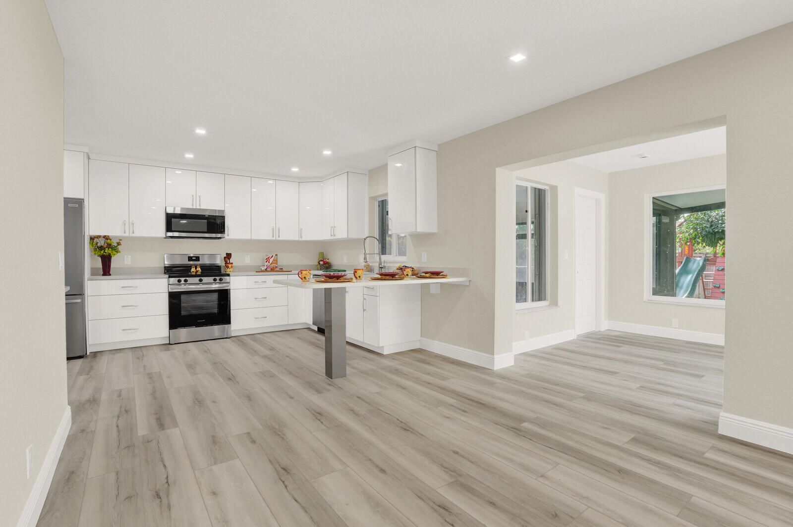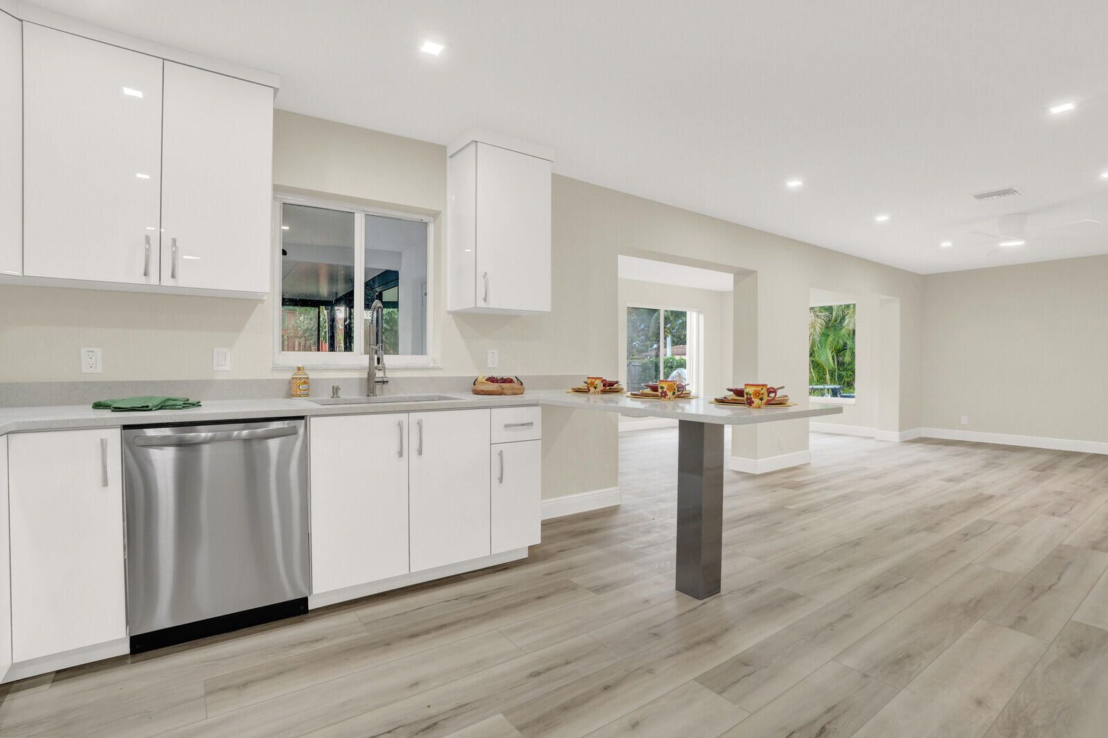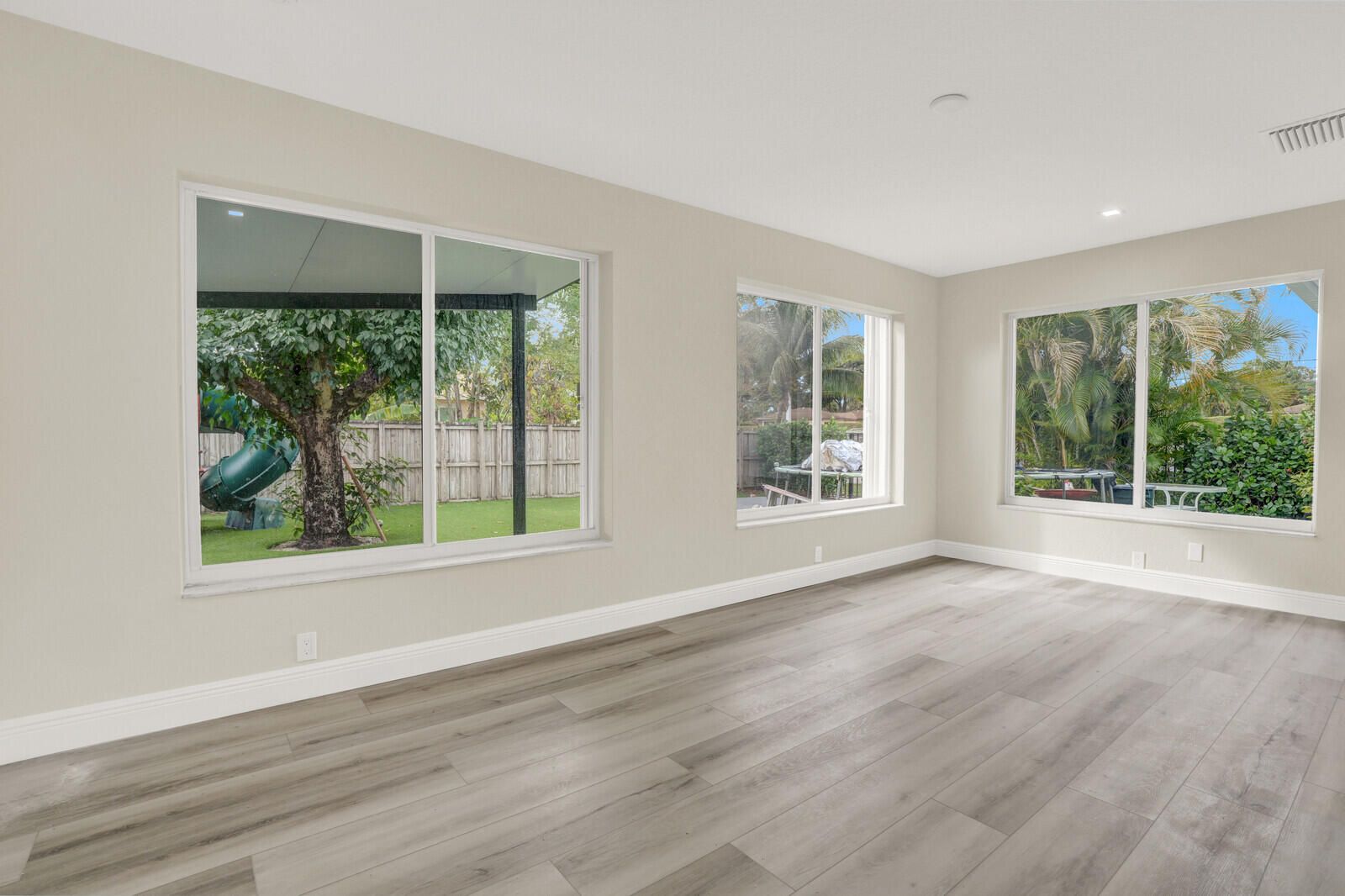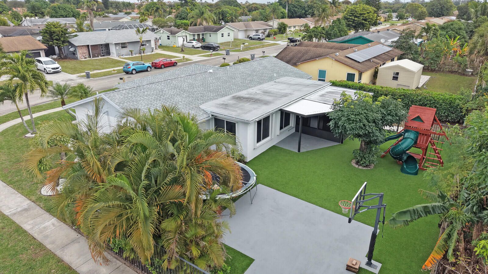 Welcome home to Sleepy Willow Way! Move-in ready and fully remodeled, this stunning home in the heart of Delray Beach offers style, function and peace of mind - starting with a brand-new roof (2025) and brand-new HVAC system, ideal for both comfort and insurance savings. Situated on a spacious corner lot in a quiet, centrally located non-HOA neighborhood, this 3 bedroom, 2 bath home has been thoughtfully updated top to bottom! Inside, you'll find a freshly painted interior, all new windows and doors and all-new flooring - with no carpet in sight. The beautifully renovated kitchen features quartz countertops, new cabinetry and brand-new stainless steel appliances, making it both stylish and functional. Both bathrooms have been completely remodeled with modern finishes and the split bedroom floor plan offers excellent privacy and flexibility. The fully fenced backyard is made for Florida living - featuring a screen-enclosed patio, playset for the kids, maintenance free artificial turf for safety and cleanliness during playtime, plus a dedicated dog run. Large family room windows overlook the outdoor space, making it easy to keep an eye on pets or kids while enjoying the view. Additional highlights include accordion shutters, a one car garage, new electrical panel and spray foam attic insulation for added energy efficiency and year-round comfort. Ideally located near shopping, dining, parks, and major roadways, this home is a true Delray Beach gem - completely turnkey and ready for its next chapter.
