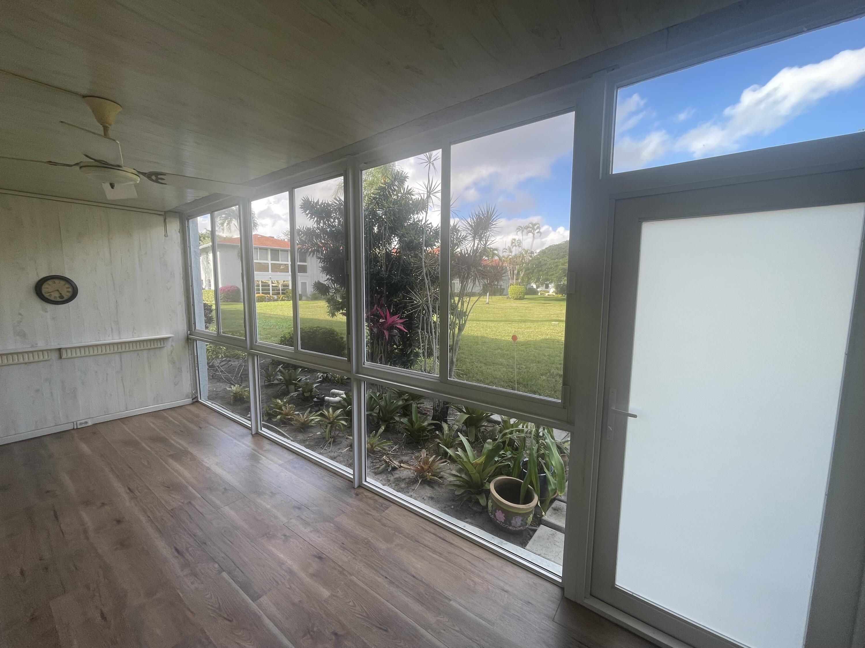 Rarely available 1st-floor Condo offering ultimate peace of mind and modern style! This spacious 2-bedroom, 2-bathroom residence has been upgraded with full high-impact windows and a matching impact front door, ensuring maximum storm protection and energy efficiency. Step inside to find a beautifully renovated master bathroom featuring contemporary finishes. Enjoy the ease of first-floor living with no stairs to navigate. Located in the vibrant 55+ Deauville Village, you're just steps from the newly renovated clubhouse, resort-style pool, and local shopping. Your Florida lifestyle starts here! Deauville is located off West Atlantic Avenue, on the west side of Jog Road, and is close to restaurants, shopping, supermarkets, movie theaters, a public library, and medical facilities.