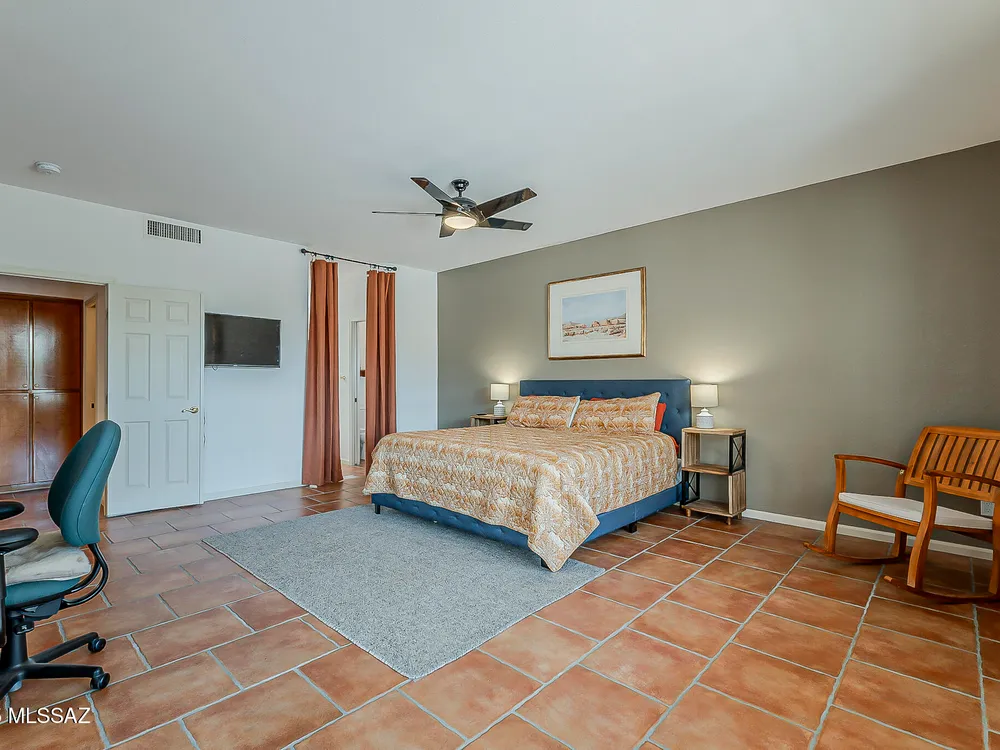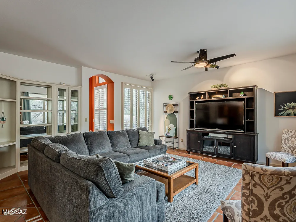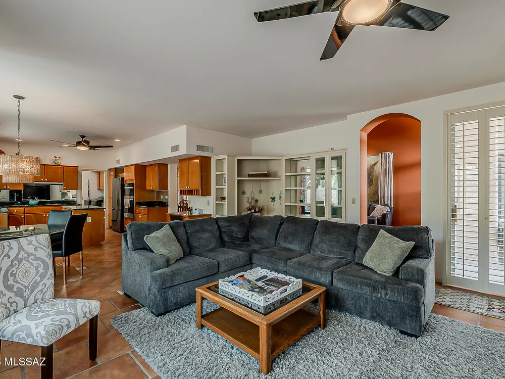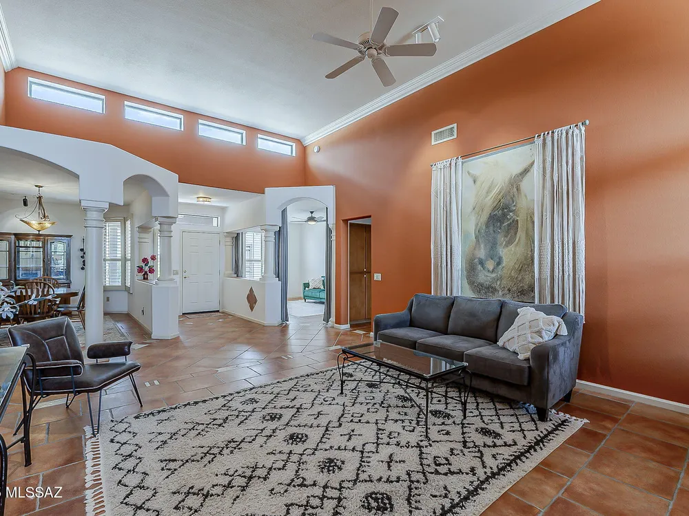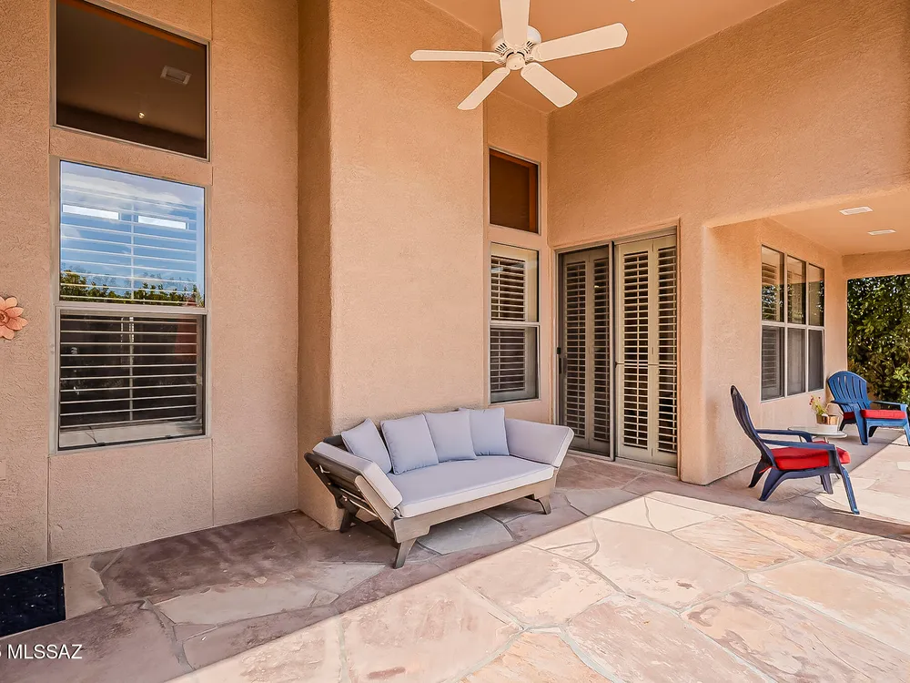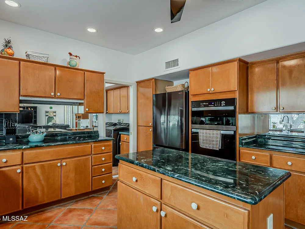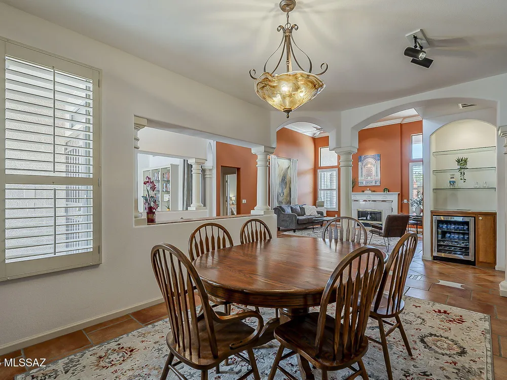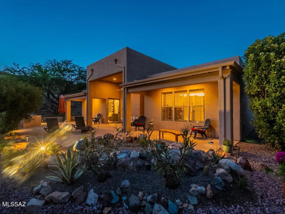 Nestled at the end of a quiet cul-de-sac on a premium elevated lot, this partially furnished Estancia model w/ the coveted private Casita offers a rare blend of elegance, space & serenity. Surrounded by open common areas and featuring a coveted north/south orientation, the home captures breathtaking views of the Catalina Mountains. Inside, you'll find cathedral ceilings, built-in shelving, ceramic tile throughout (no carpet), classic shutters, a cozy gas fireplace, a den, and a formal dining room with a wine cooler just steps away. The culinary-inspired kitchen is both stylish and functional, boasting marble countertops, a generous island, high-end appliances, and a garden window perfect for growing herbs while overlooking the natural desert--frequented by birds, deer, rabbits, and mo