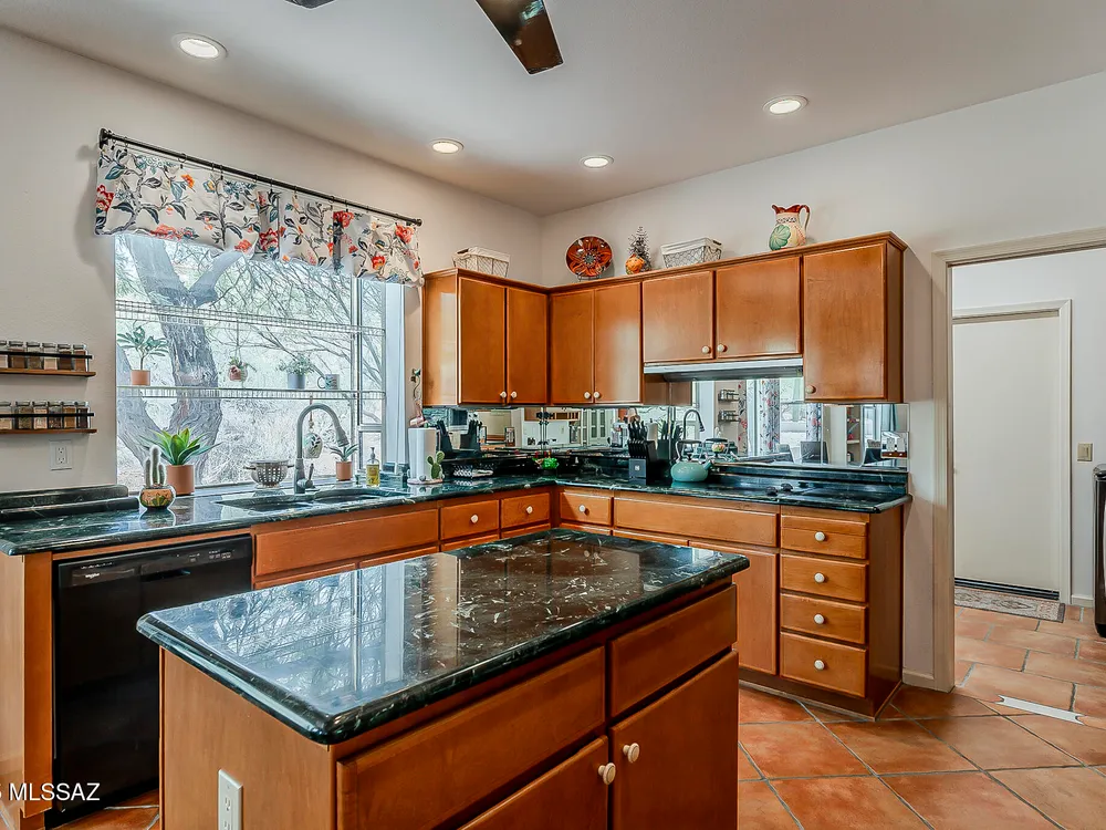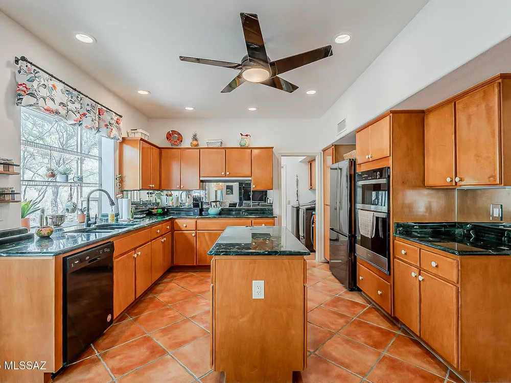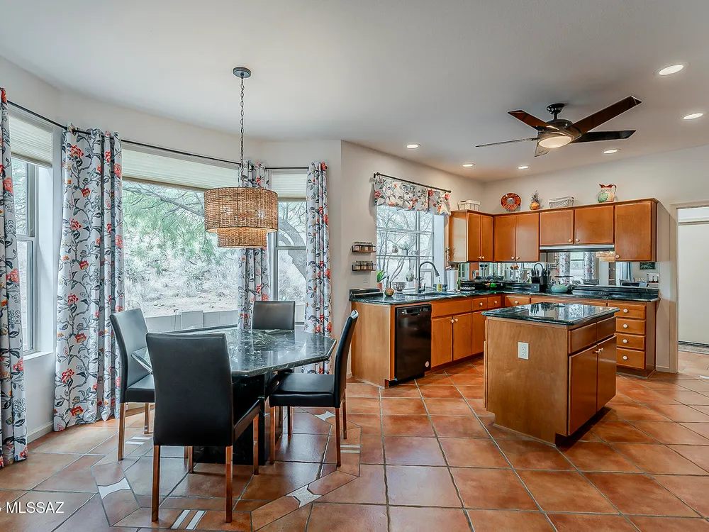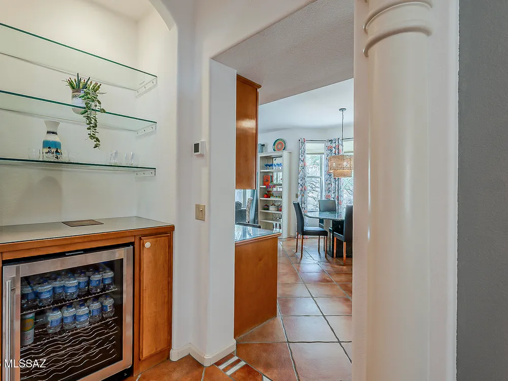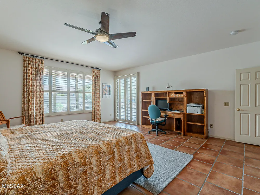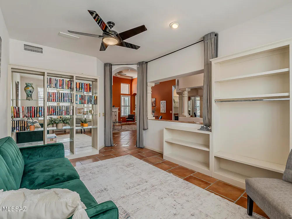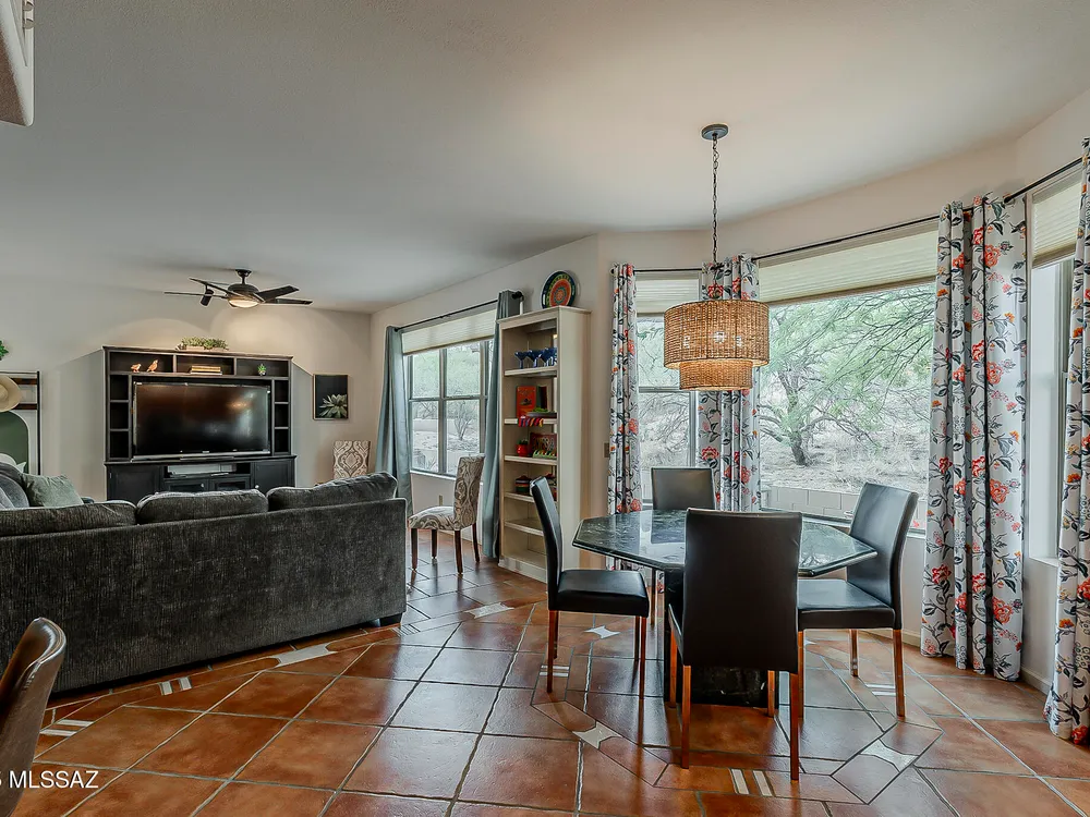 Nestled at the end of a quiet cul-de-sac on a premium elevated lot, this partially furnished Estancia model w/ the coveted private Casita offers a rare blend of elegance, space & serenity. Surrounded by open common areas and featuring a coveted north/south orientation, the home captures breathtaking views of the Catalina Mountains. Inside, you'll find cathedral ceilings, built-in shelving, ceramic tile throughout (no carpet), classic shutters, a cozy gas fireplace, a den, and a formal dining room with a wine cooler just steps away. The culinary-inspired kitchen is both stylish and functional, boasting marble countertops, a generous island, high-end appliances, and a garden window perfect for growing herbs while overlooking the natural desert--frequented by birds, deer, rabbits, and mo