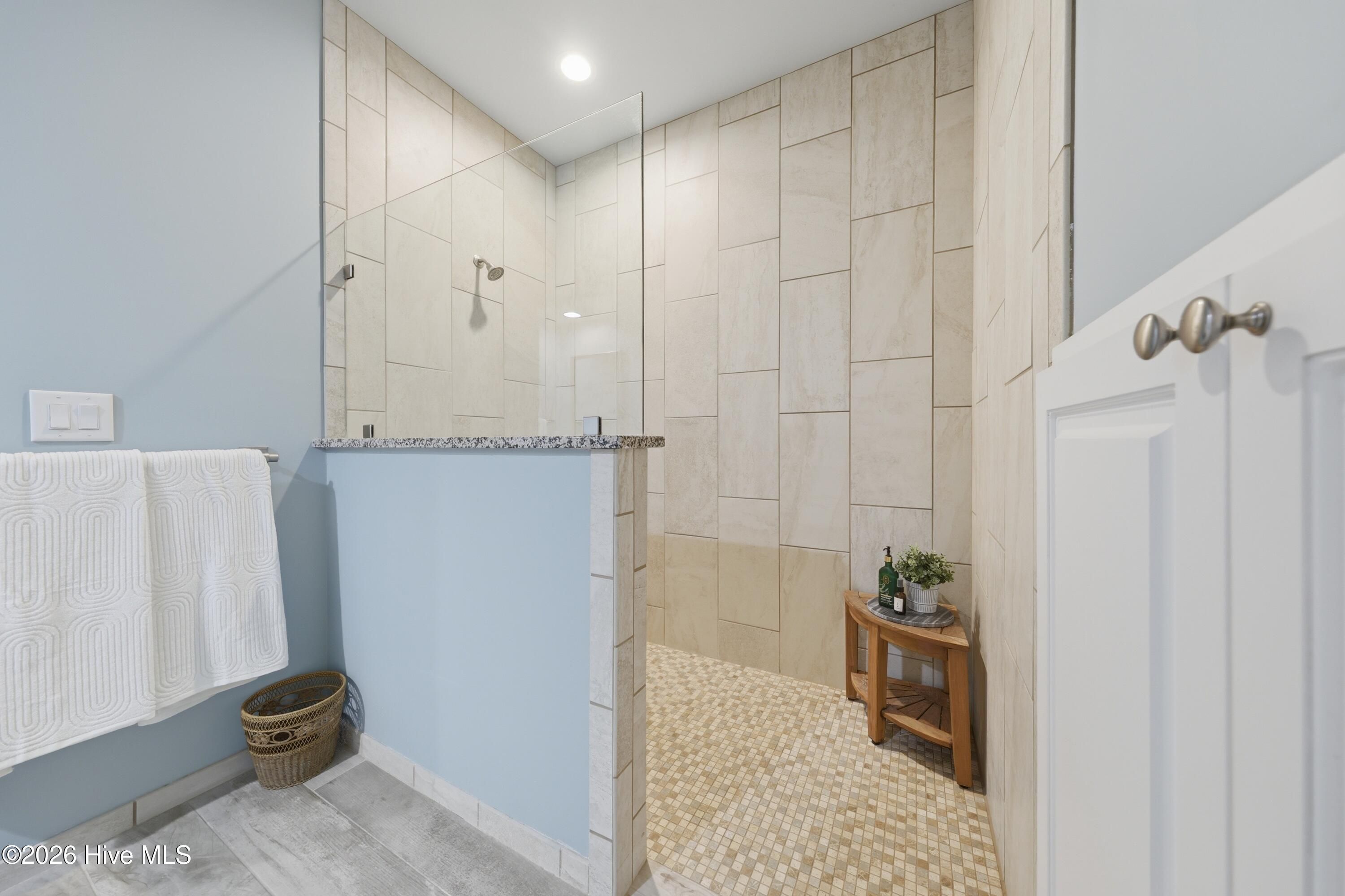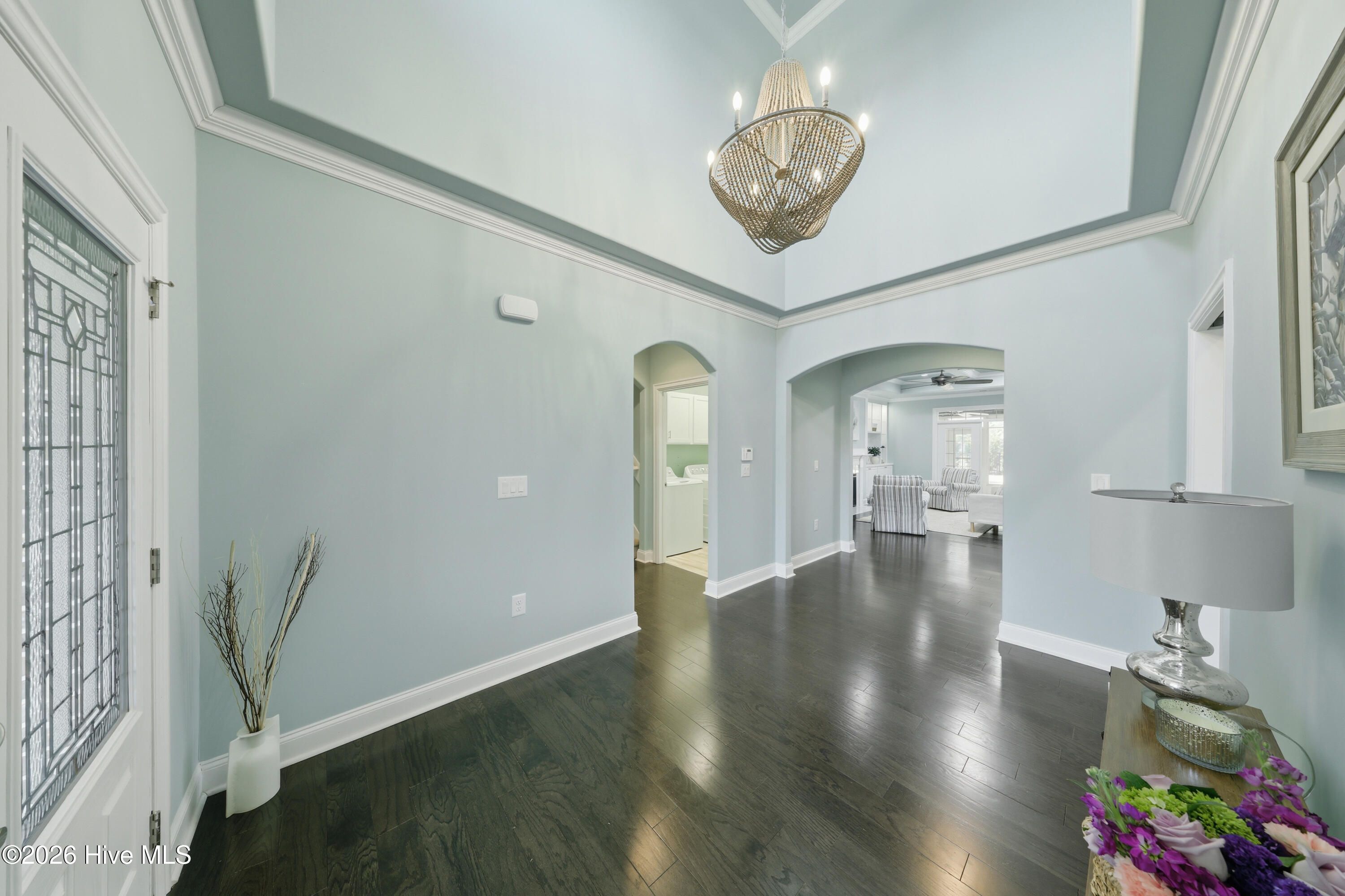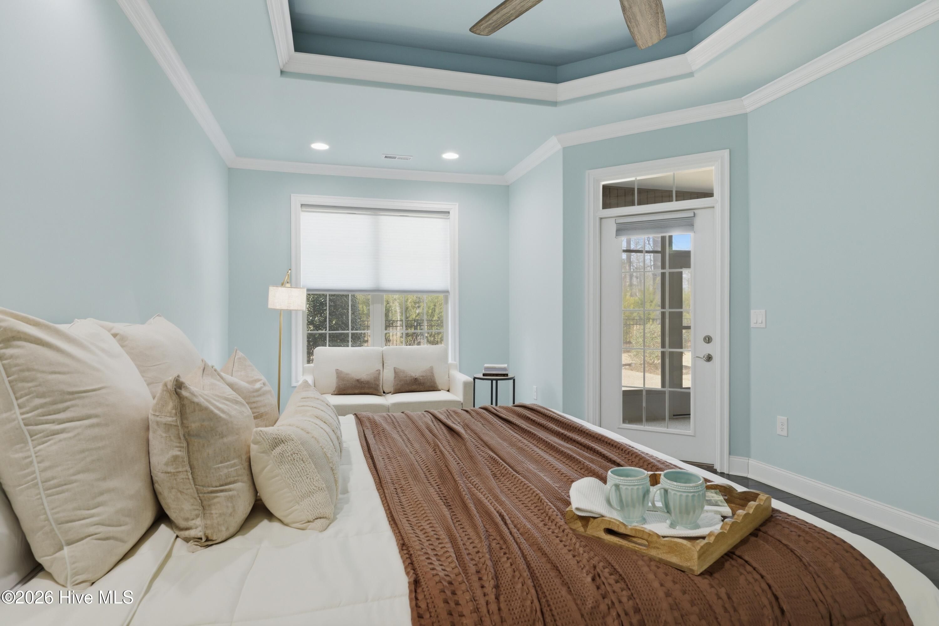 - Master Downstairs, Walk-In Closet(s), Tray Ceiling(s), High Ceilings, Entrance Foyer, Ceiling Fan(s), Walk-In Shower, Blinds