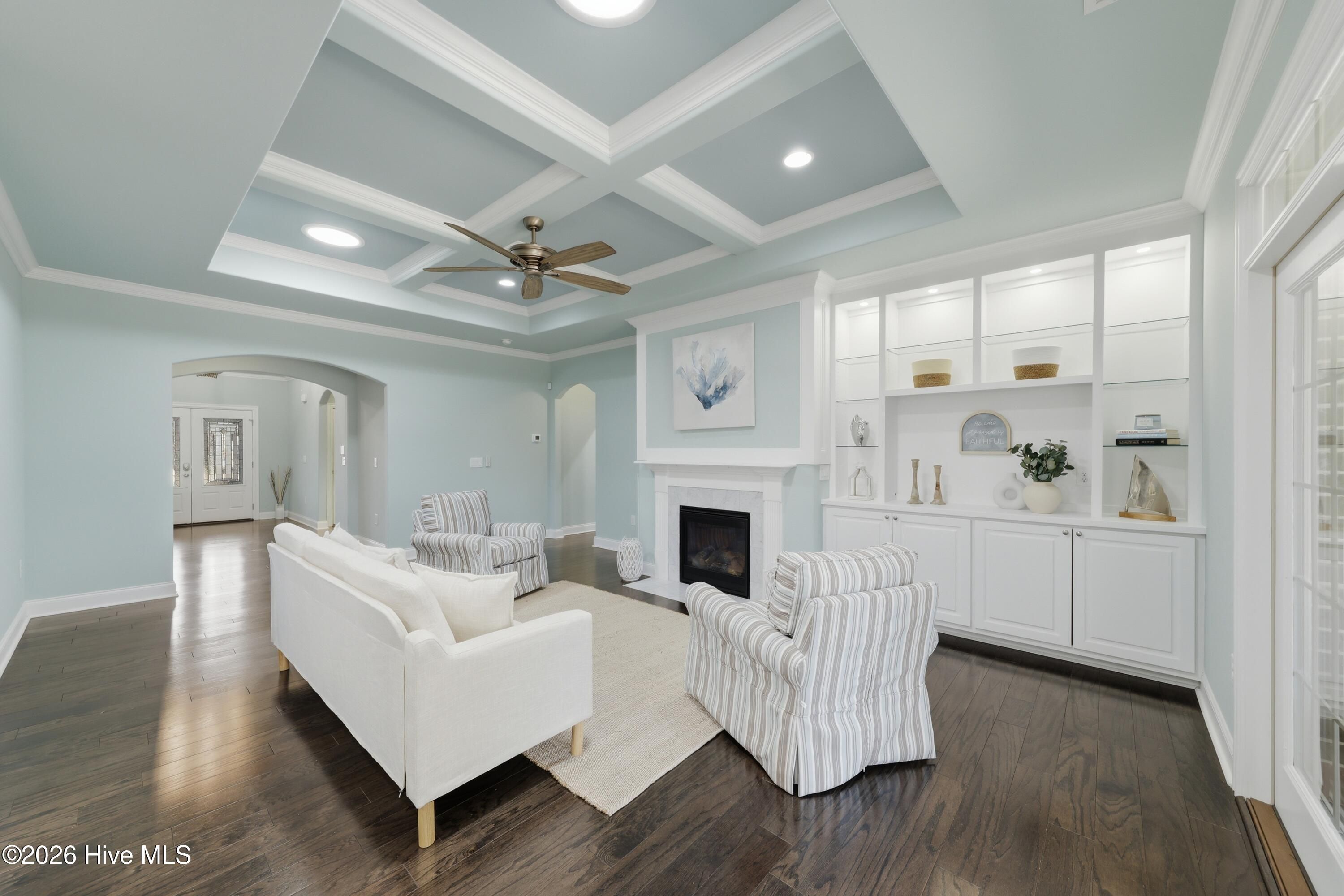 Experience refined coastal living in the award-winning gated riverfront community of River Bluffs, ideally located just minutes from historic downtown Wilmington with its vibrant restaurants, entertainment, and theater venues, as well as the upscale shopping and dining of Mayfaire Town Center.This impeccably maintained home showcases thoughtful design and elevated finishes throughout, offering three bedrooms and two full baths on the main level, with a spacious bonus room or fourth bedroom and full bath upstairs--perfect for guests, a media room, or private suite.Elegant architectural details include crown molding, coffered and tray ceilings, rich hardwood flooring throughout the main level, and abundant natural light enhanced by solar tubes and transom windows. The chef's kitchen features granite countertops, stainless appliances, and a designer tile backsplash, flowing seamlessly into the inviting living area anchored by a gas fireplace.The private owner's suite offers dual walk-in closets and a custom-designed spa-style bath, creating a peaceful retreat. Additional highlights include a temperature-controlled storage space in the garage, irrigation system, and a new HVAC system installed in 2025.Outdoor living is equally impressive with a three-season enclosed lanai, oversized patio for entertaining, and a fenced backyard. The property enjoys exceptional privacy thanks to added privacy landscaping, wooded surroundings, and a nearby retention pond creating a serene natural buffer.Located outside the city limits, this home also benefits from lower taxes. Residents of River Bluffs enjoy a lock-and-leave lifestyle with HOA services covering lawn care, exterior maintenance, roof maintenance, and insurance.Community amenities include two pools, pickleball courts, tennis courts, basketball courts, scenic walking trails, and an on-site restaurant. Boat slips are available for purchase, and the community also offers boat and RV parking--making it easy to enjoy the Cape Fear River and the coastal lifestyle.