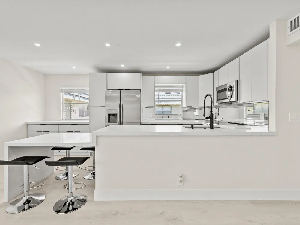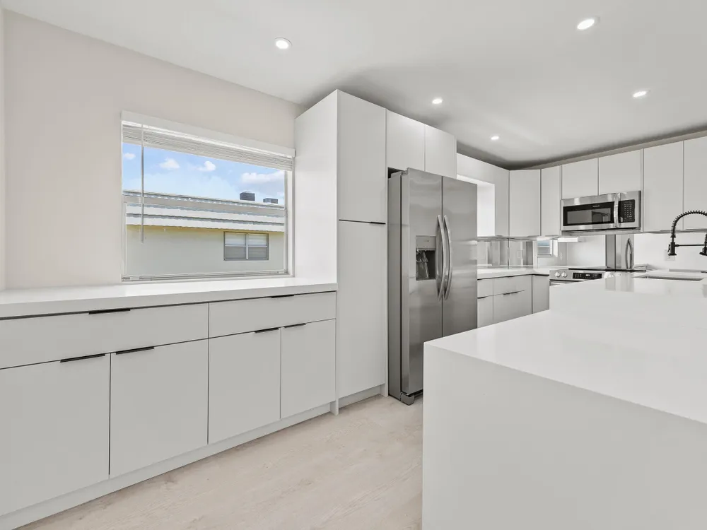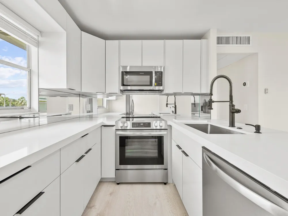 Stunning, Fully Renovated 2BR/2BA Condo with Designer Finishes & Upscale Touches Throughout at the 55+ Non-equity membership King's Point Golf and Country Club! Step into luxury with this beautifully reimagined second-floor residence, showcasing over $70,000 in top-tier upgrades. No detail was spared in transforming this space into a modern haven. The chef-inspired kitchen is a showstopper, featuring premium Frigidaire appliances in a sleek, fingerprint-resistant stainless steel finish, including a spacious refrigerator with built-in ice and water dispenser, a 5-burner glass cooktop with convection oven, matching microwave, and dishwasher. The quartz countertops--boasting a 2-inch profile--extend seamlessly into a waterfall-edge dining island, perfect for entertaining.
