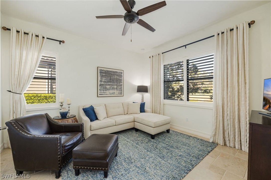 Nestled within the prestigious Lakoya community of Lely Resort, this exceptional Ponte Vedra II residence at 6530 Carema Lane in Naples offers refined comfort, thoughtful design, and picturesque long-lake and fountain views. Created for both relaxed daily living and effortless entertaining, the home features an airy open-concept layout that unites the great room, dining areas, and kitchen into one welcoming gathering space. Expansive windows and sliding glass doors bathe the interiors in natural light while showcasing the tranquil waterfront scenery and lush surroundings. The well-designed kitchen provides abundant cabinetry, ample workspace, and a highly functional arrangement suited for cooking, hosting, and everyday convenience. Offering 4 bedrooms plus a den and 4-1/2 baths, the home is enhanced by elegant travertine flooring, soaring ceilings, custom interior details, a dedicated laundry room, and a spacious three-car garage. The serene primary suite delivers a private retreat complete with dual vanities, a walk-in shower, and two generous closets. Outdoor covered living space invites quiet relaxation or alfresco dining while overlooking peaceful lake views and beautifully landscaped grounds. Have peace of mind with impact-resistant doors and windows throughout, and an additional layer of Storm Smart hurricane screens enclosing the lanai. Recent updates include 2 newer A/C systems installed in 2022, and a new gas water heater in 2024. Immediate membership to The Players Club & Spa provides access to resort-inspired pools, tennis, pickleball and bocce courts, a full-service spa, modern fitness center, indoor dining, and a lively tiki bar. Golf enthusiasts will enjoy optional membership at The Classics along with opportunities to golf at the renowned Mustang and Flamingo championship courses. This remarkable property represents more than a residence—it embodies the coveted Lakoya lifestyle at Lely Resort.