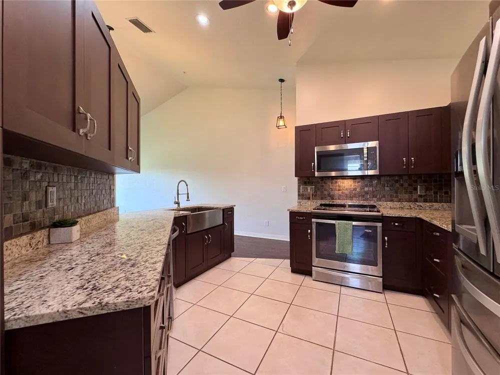 - Built-in Features, Cathedral Ceiling(s), Ceiling Fan(s), High Ceilings, Open Floorplan, Split Bedrooms, Stone Counters, Walk-In Closet(s), Window Treatments