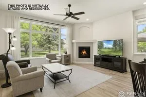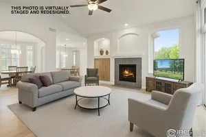 Meticulously maintained 4-bedroom, 4-bathroom ranch-style residence offers seamless main-level living with thoughtful upgrades throughout. Step into a bright, open layout that connects an elegant great room with custom built-ins to a gourmet kitchen and cozy hearth room-perfect for entertaining and everyday comfort. The primary suite offers a retreat-like setting with dual walk-in closets, a luxurious ensuite, and convenient access to the main living areas. The fully finished basement extends your living space with a large family room, fireplace, custom art shelving, a bar, and two generously sized guest bedrooms with supplemental baseboard heating. Enjoy year-round indoor-outdoor living with a stamped concrete front patio and a spacious, partially enclosed west-facing rear patio featuring roll-down screens and a natural gas line-ideal for grilling or outdoor heaters. Three fireplaces, plantation shutters on the east-facing windows, and full surround sound wiring enhance comfort and functionality throughout. Unique features include a true 3-car garage (80 sqft larger than typical models) with a 220-volt outlet, a freshly repainted exterior (August 2024), and a well-maintained HVAC system serviced twice annually. Residents benefit from the low-maintenance lifestyle provided by the Metro, which includes exterior watering, landscaping, snow removal (over 4"), garbage service, and exterior care-ideal for worry-free travel. Located in a very peaceful, quiet, low traffic residential enclave with quick access to I-25, walking trails, parks, and the exclusive Highland Meadows Recreation Center, this home offers a perfect blend of privacy, community, and convenience. Schedule your showing today for this outstanding property in one of Northern Colorado's premier communities.