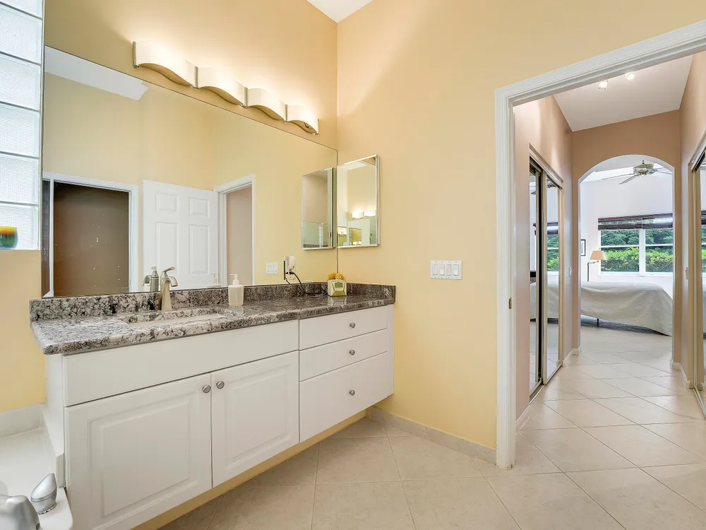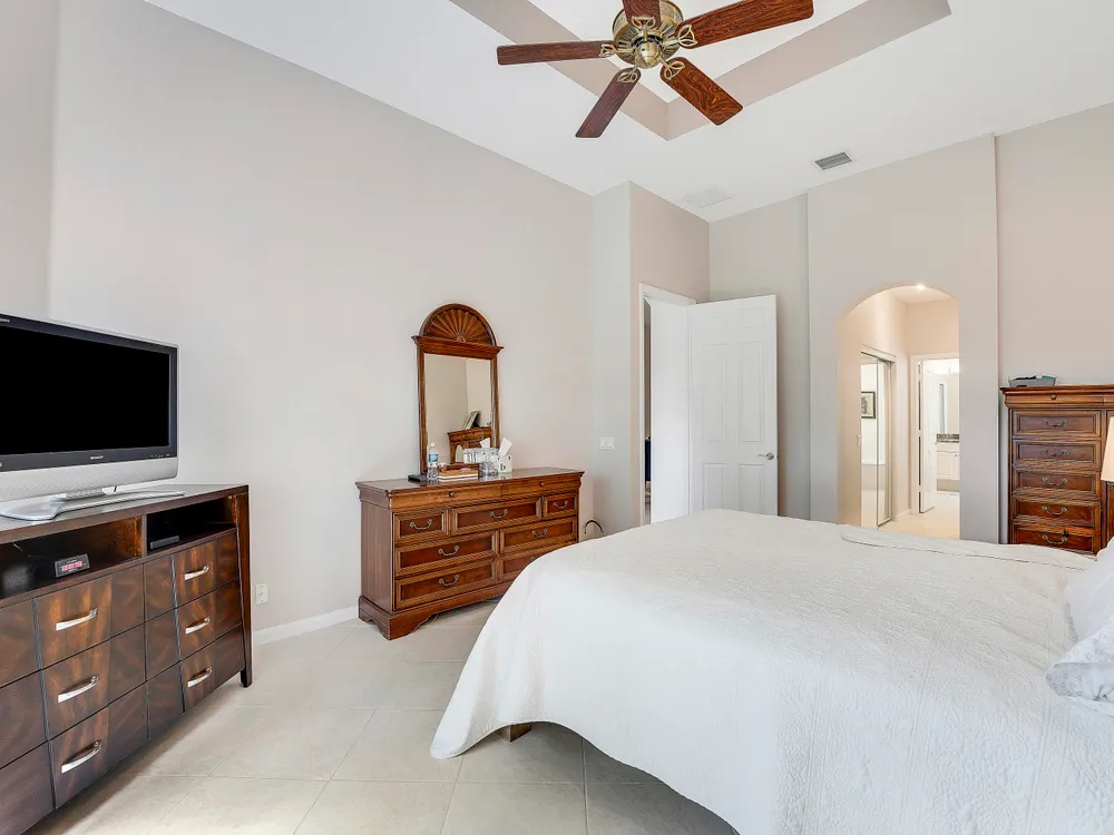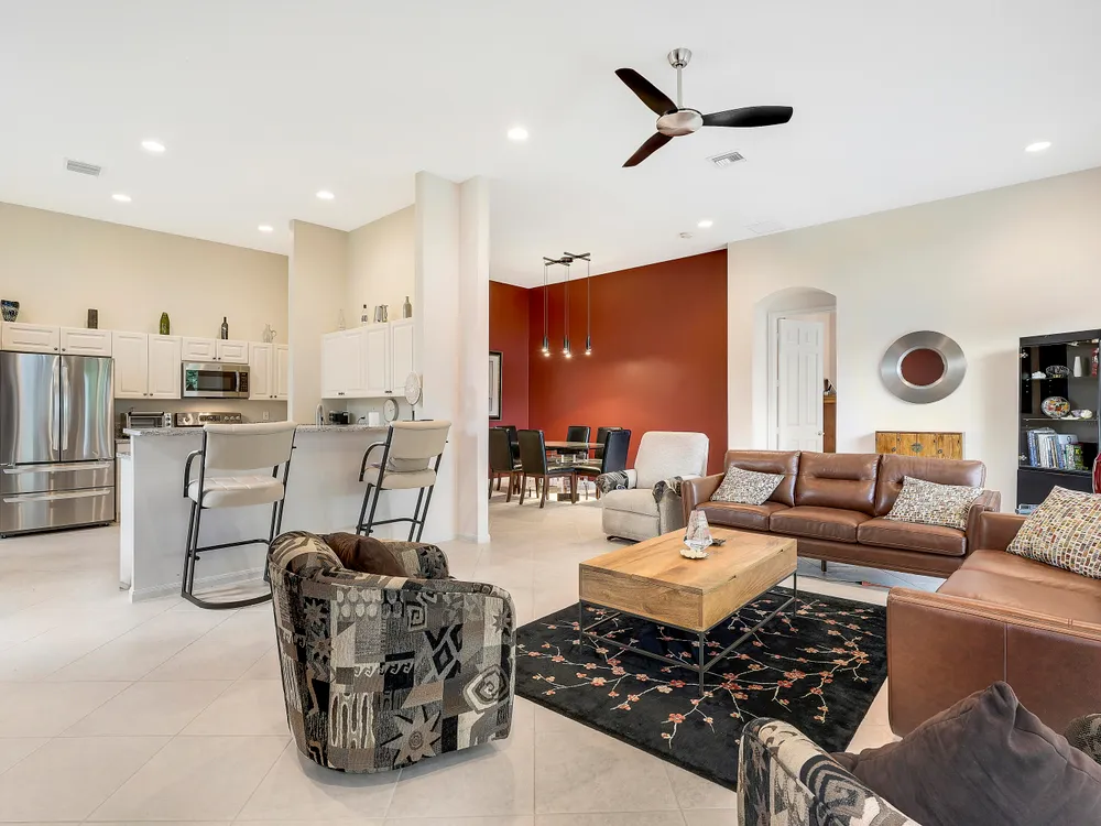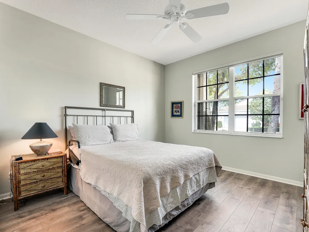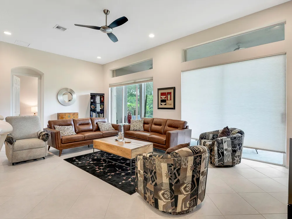 Welcome to Beautiful Bellaggio! This Alexander Model is highly sort after, and one of the most Popular Homes. People love this Layout due to the Open Floor Plan and Breakfast Nook. This is a 3 Bedroom, 2 Bath home in which the 3rd Bedroom is being used as a Den. Kitchen has Bright White Cabinets, Granite Countertops and updated Stainless Steel Appliances. Guest Bedroom & Den have Wood Floors. Master Bathroom & Guest Bathroom have Vanities with Granite Countertops. Master Bathroom has a ''Jacuzzi Tub.'' Washer & Dryer were replaced a few years ago with a Utility Sink inside the Laundry Room. Air Conditioner replaced a year ago. There are Accordion Hurricane Shutters throughout the house. All Built-in Remain with House including the Desk in the Den.