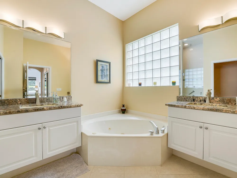 - Cathedral Ceiling(s), Entrance Foyer, French Door(s)/Atrium Door(s), Pantry, Garden Tub/Roman Tub, Split Bedrooms, Walk-In Closet(s), Attic, Home Office, Great Room, Living/Dining Room, Eat-in Kitchen, Blinds, Drapes, Dual Sinks, Primary Downstairs, Separate Shower, Bathtub, Storm Shutters