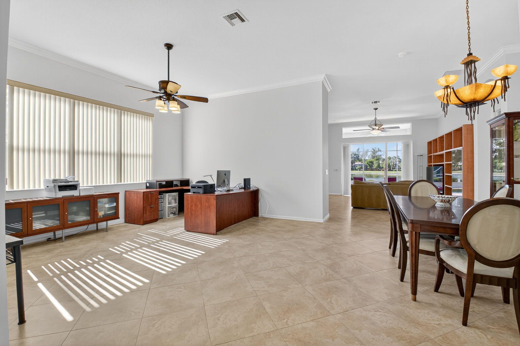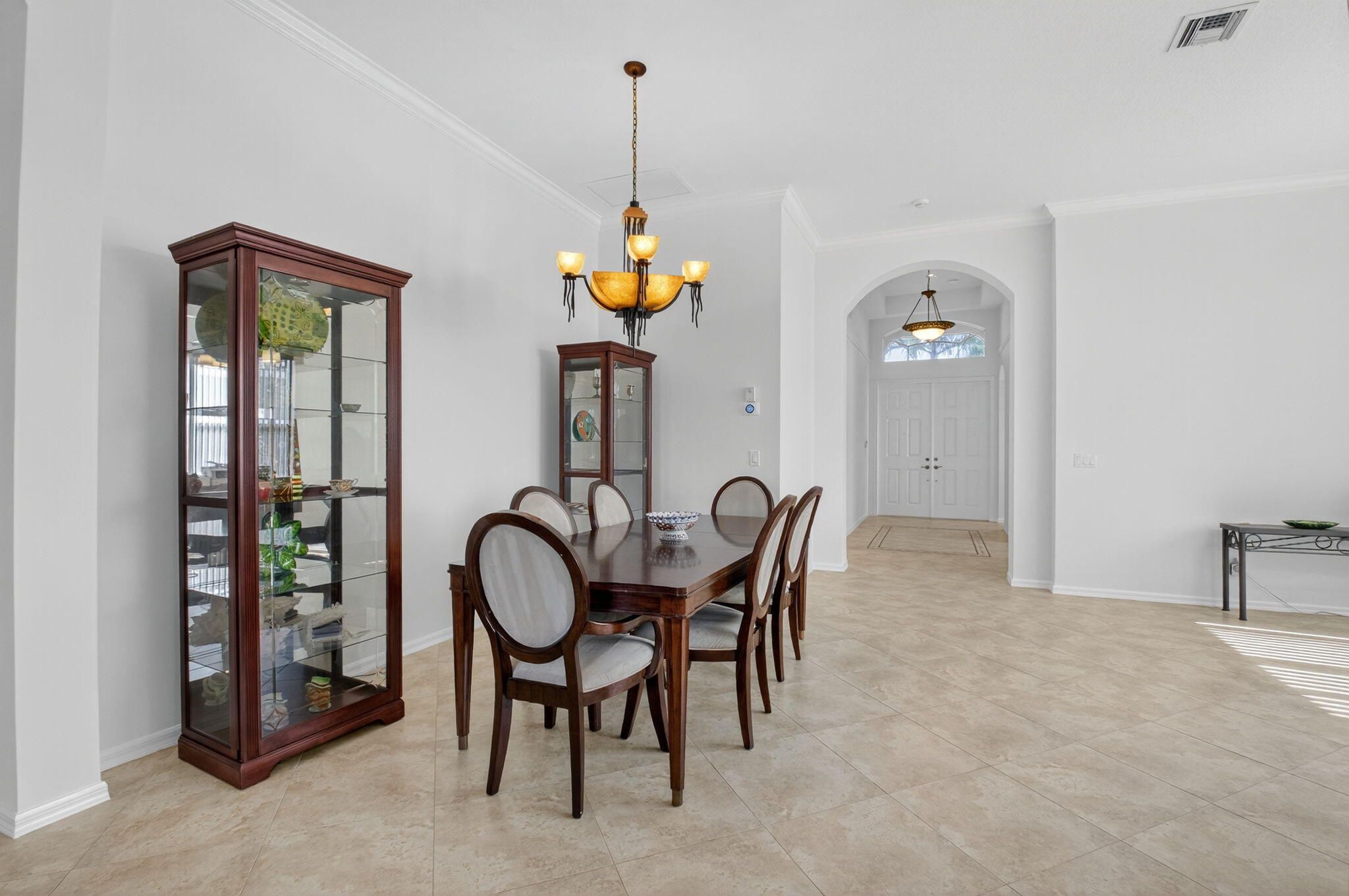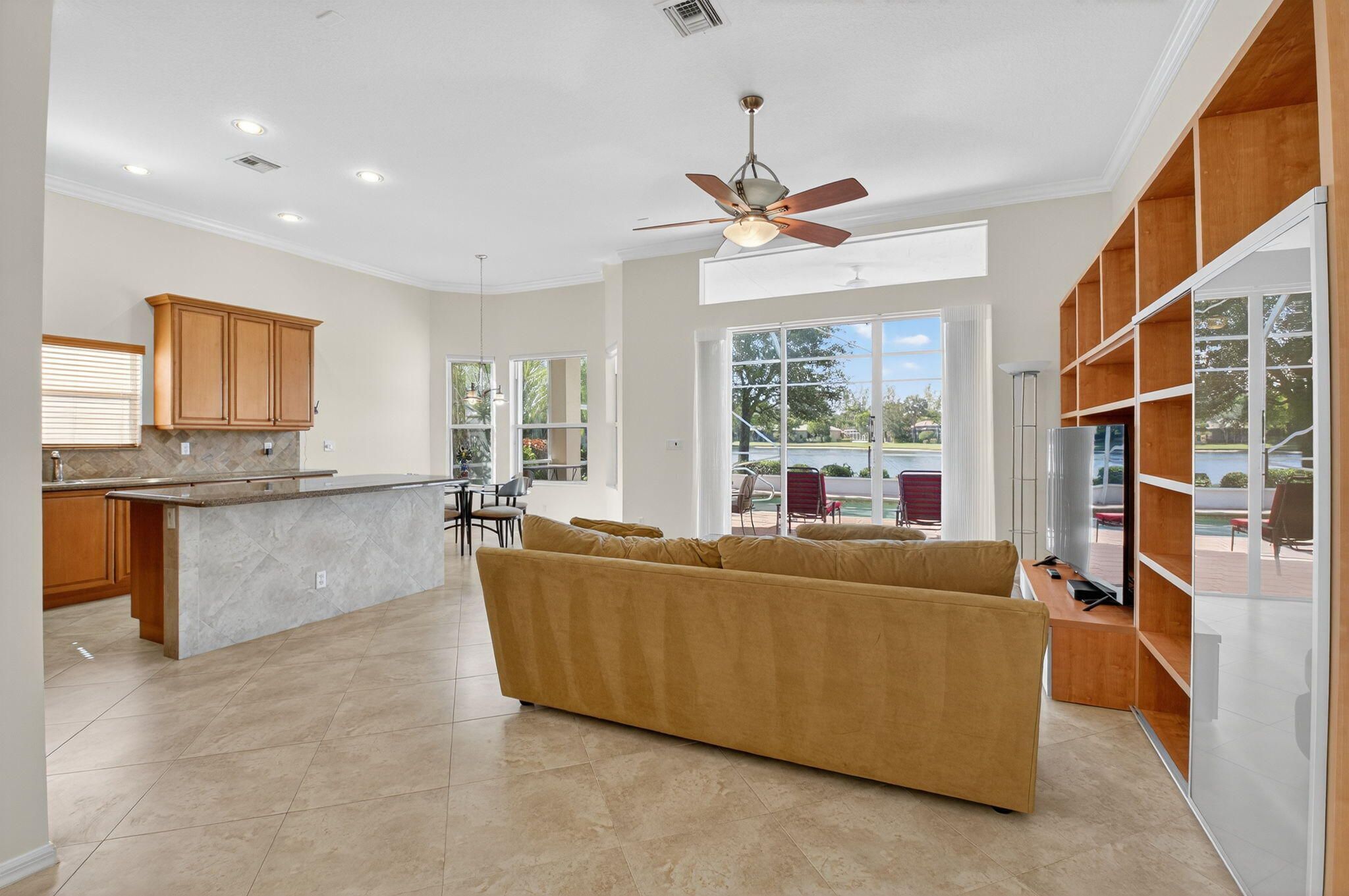 ABSOLUTELY BEAUTIFUL LAKE VIEW WITH YOUR OWN HEATED POOL & EXTENDED PATIO! THE INSIDE OF THIS LIGHT/BRIGHT HOUSE WAS JUST PAINTED. CERAMIC TILE SET ON A DIAGONAL THROUGHOUT PLUS MARBLE INSERTS...NO CARPETING! CONTEMPORARY POWDER ROOM. DECORATOR LIGHTING & PLUMBING FIXTURES. FAMILY ROOM WALL UNIT STAYS. CROWN MOLDING. WOOD CABINETS IN KITCHEN. UPGRADED GRANITE. TUMBLE- MARBLE BACKSPLASH. S/S 90/10 SINK. TILED WALL OF ISLAND SO NO SCUFF MARKS FROM SHOES.SHADES AND LUMINETS ON WINDOWS & SLIDING DOOR. SCREENED ENTRY. PROFESSIONALLY LANDSCAPED. ACCORDION SHUTTERS. LEADERS & GUTTERS. A/C MARCH, 2025. WATER HEATER 1 YR OLD. COME JOIN THE VERY ACTIVE VILLAGGIO LIFESTYLE. 2 CLUBHOUSES (SOCIAL/ATHLETIC); 2 POOLS (INDOOR/OUTDOOR). SHOW SERIES, PICKLEBALL, TENNIS, BOCCE, EXERCISE CLASSES, CAFE,