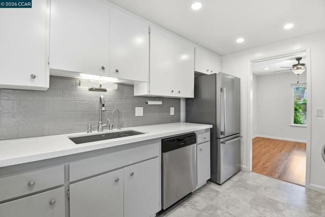 Reasons why you will want to make this your home. Located on a quiet, well maintained street,this home has been beautifully updated. Smooth ceilings, dual pane windows, luxury vinyl plank flooring, recessed lighting, updated bathroom quartz counters, updated kitchen quartz counters and deep sink with spray faucet. Enjoy the lovely views of Trione-Annadel Park from the back patio while relaxing in your private, beautifully landscaped, fenced yard on this owner-maintained lot. Low maintenance landscaping in front and back adds to the charm of the home. Complete with central heat and air, washer, dryer, and newer refrigerator, this charming home is move-in ready. Oakmont is an active adult 55+ community with hiking, swimming, golf, tennis, pickleball, and more in the heart of Sonoma County's wine country.
