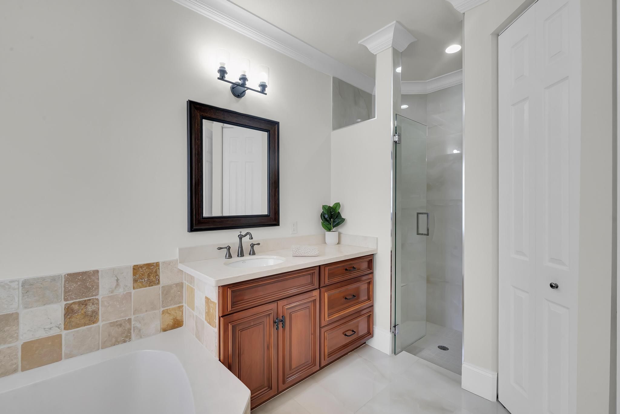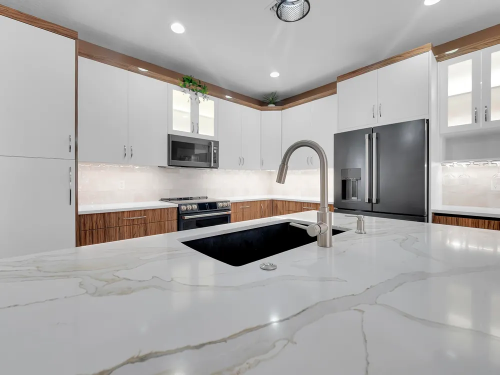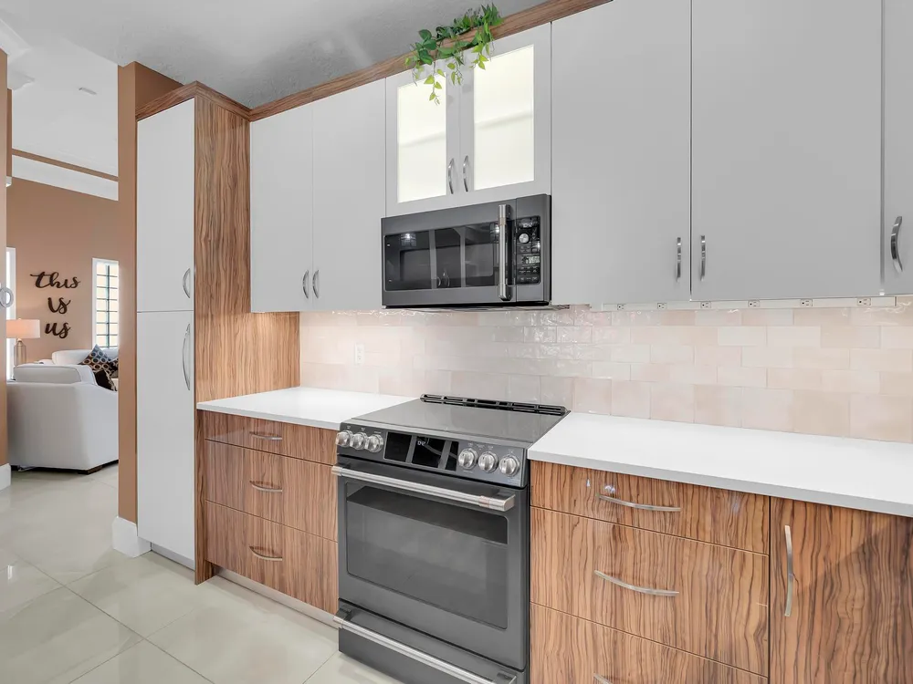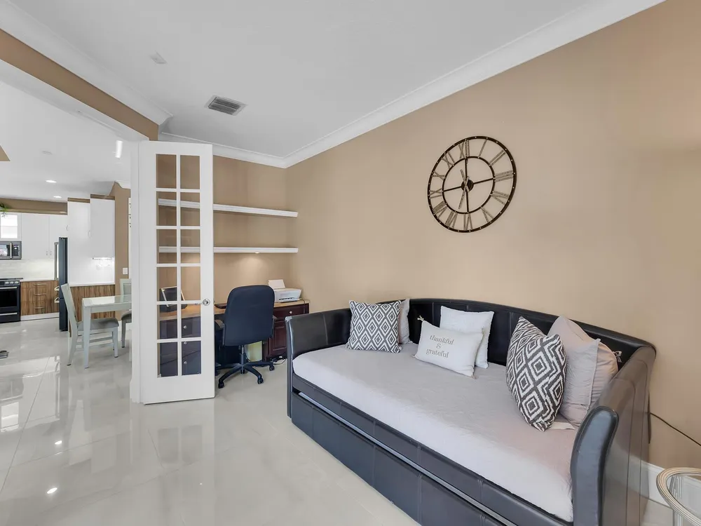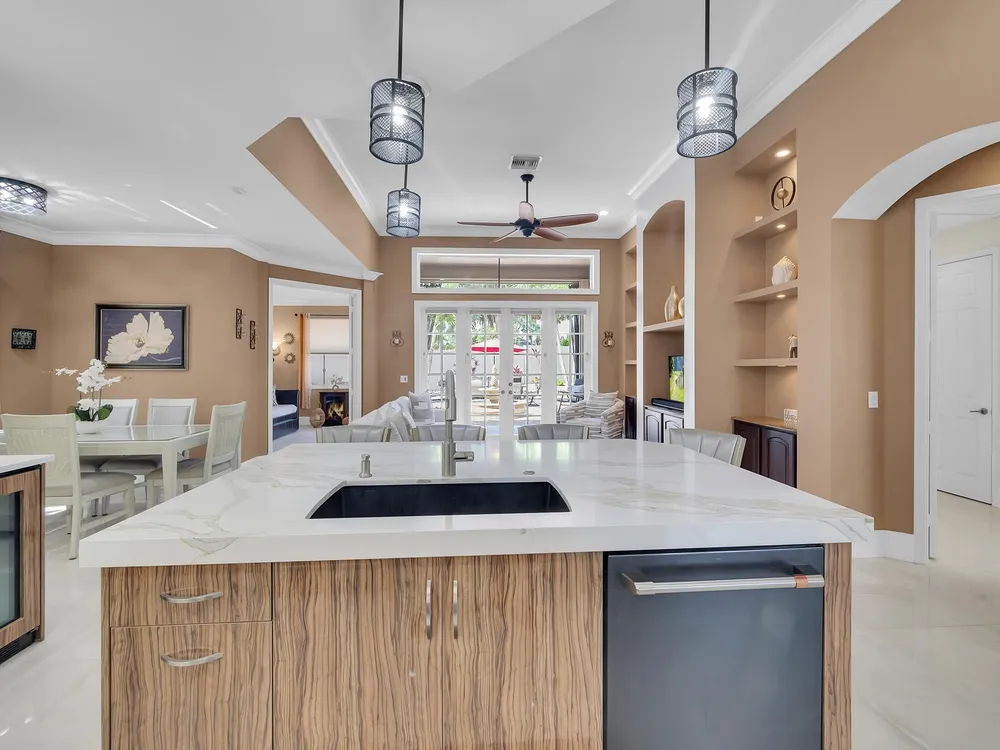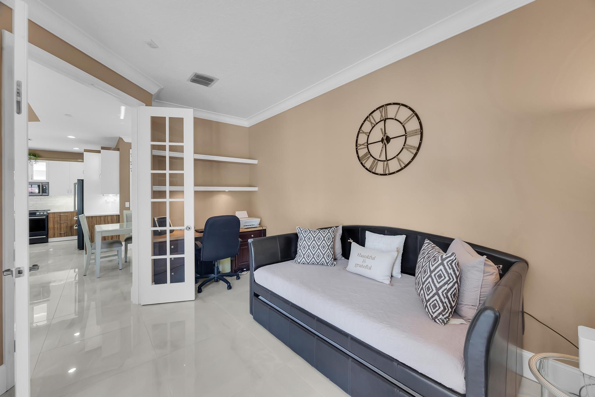 PRICE REDUCTION -SELLER MOTIVATED Nestled within the sought-after Aberdeen Golf & Country Club, this stunning 2 bedroom, 2 bathroom plus den home offers a seamless blend of modern luxury and resort-style living. Fully remodeled and move-in ready, every detail of this residence has been meticulously upgraded to create a sanctuary of sophistication and comfort. Step inside to discover an open-concept floorplan bathed in natural light, soaring high ceilings, crown molding and high end finishes throughout. The heart of the home is the brand-new gourmet kitchen, featuring sleek natural stone countertops, soft-close cabinetry, and top-tier GE CAFE appliances- perfect for both casual meals and entertaining.