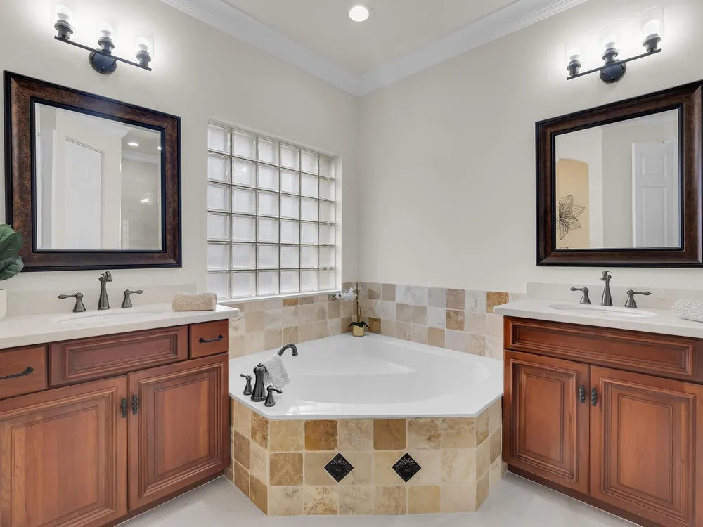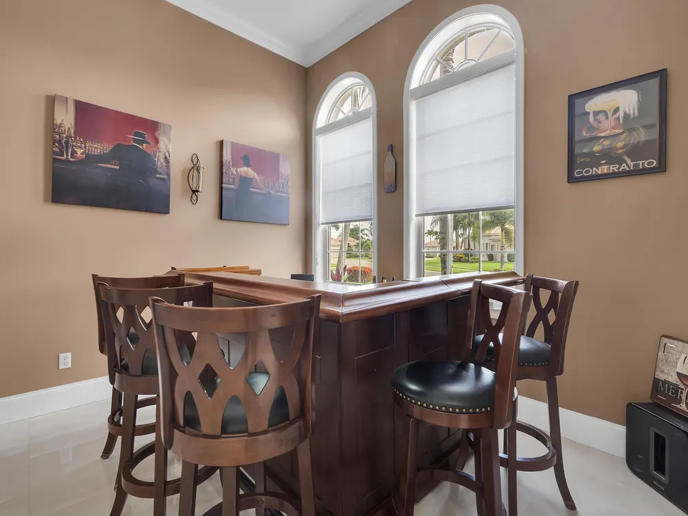 - Bar, Built-in Shelving, Cathedral Ceiling(s), French Door(s)/Atrium Door(s), Garden Tub/Roman Tub, Split Bedrooms, High Ceilings, Walk-In Closet(s), Home Office, Family Room, Breakfast Area, Family/Dining Room, Living/Dining Room, Eat-in Kitchen, Separate/Formal Dining Room, Snack Bar, Arched Window(s), Blinds, Double Hung Metal Window(s), Separate Shower, Bathtub