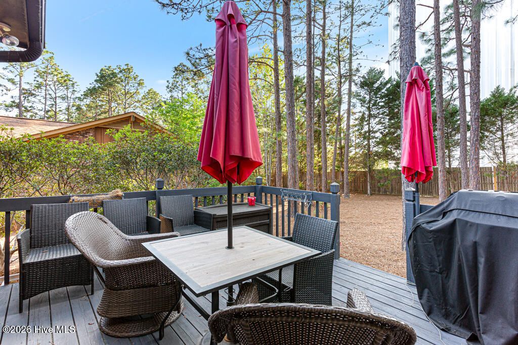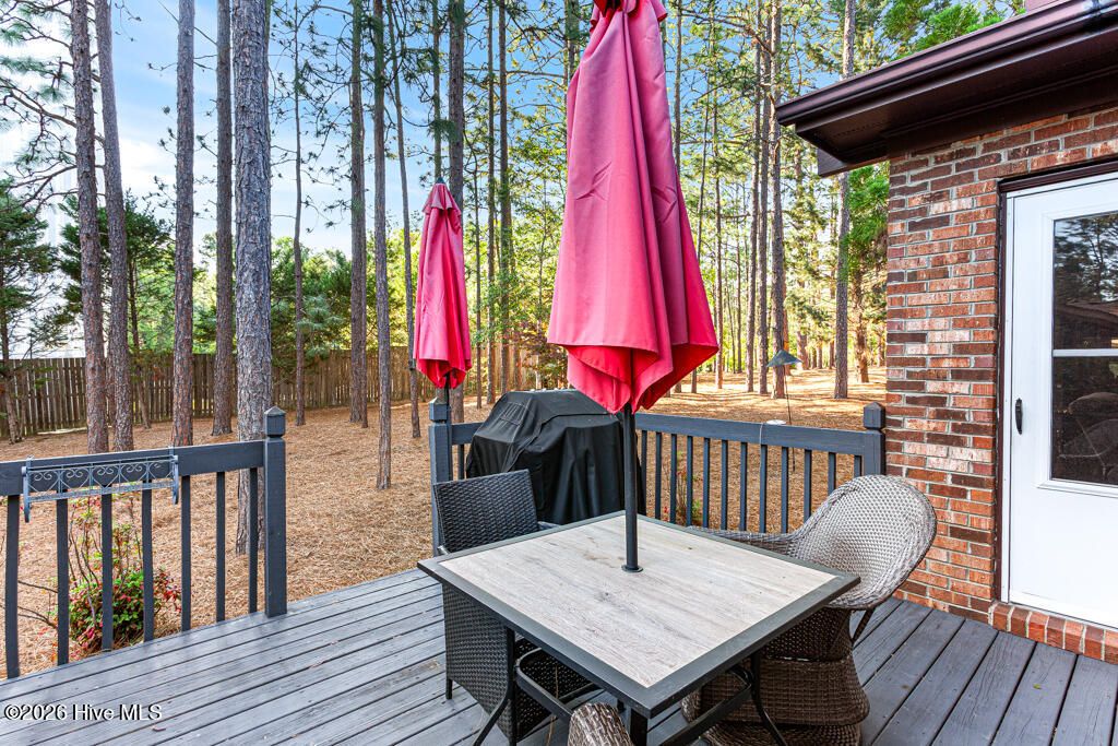 Welcome to Knollwood Village, a desirable 55+ age restricted community in Southern Pines offering amenities for your lifestyle, including golf and a community pool for your leisure. Tucked away in a sequestered cul-de-sac, this 2 Bedroom and 2 Bathroom home offers an open layout and split floor plan convenient for hosting family or guests. The large, open living/dining combo space includes plenty of room for entertaining, anchored by a gas fireplace and built-in bookcases. The kitchen/breakfast nook boasts ample natural light and overlooks an intimate patio, perfect for morning coffee. Both Bedrooms offer private retreats, with the primary bedroom also leading to a secluded deck and remote outdoor view. Conveniently located near the shopping and dining of Southern Pines and Pinehurst, your next home awaits.