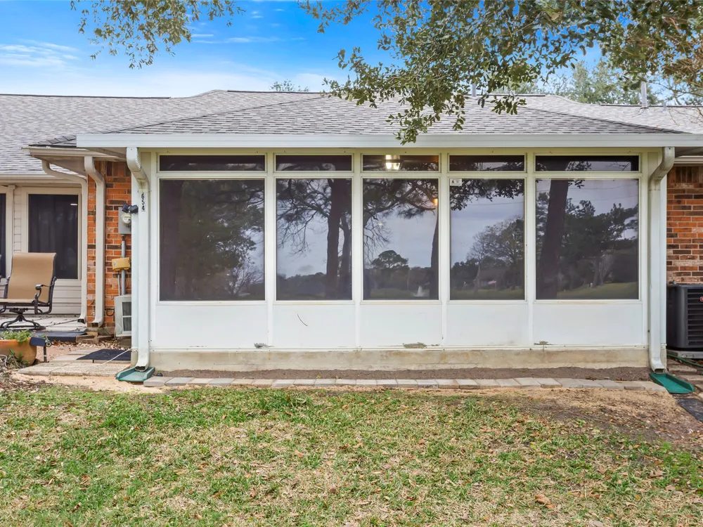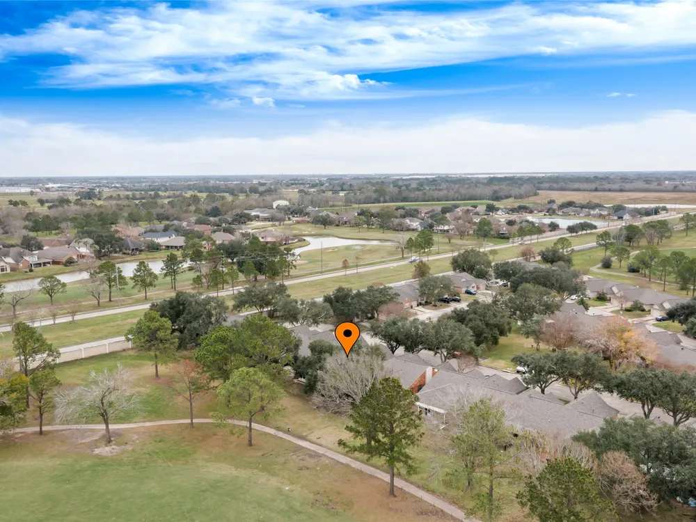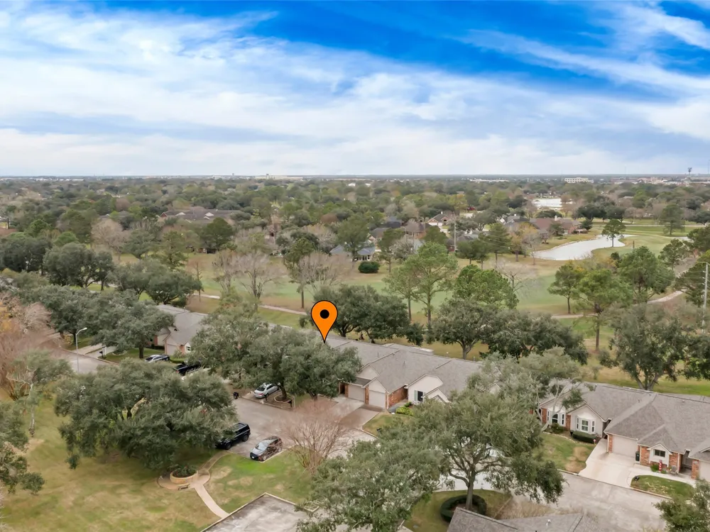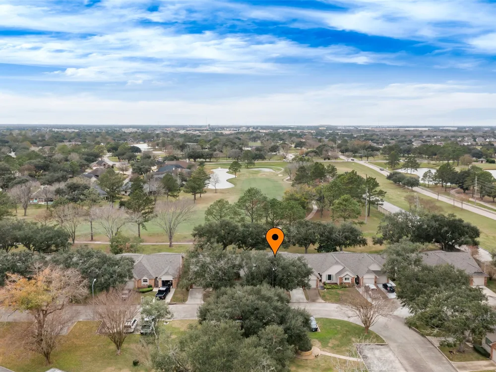 Price Reduced $8K! Welcome to this charming townhome in a 55+ community in Pearland with stunning golf course views. This 1,392 sq ft home features an open-concept layout, an updated kitchen with travertine countertops, and a spacious living room. Enjoy the security of a gated community while taking advantage of amenities such as tennis courts, a workout room, a game room, a library, a pool, and a hot tub. Relax in the sunroom with electric shades or participate in daily activities at the clubhouse. Conveniently located for shopping and dining, this home offers the perfect blend of comfort and luxury living. Just follow the Pears! All room sizes are approximate. Home is being sold AS-IS. Insurance is included in the HOA fees.