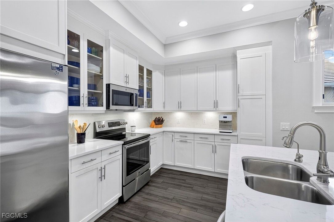 Welcome to your new coach home with high-end upgrades and exceptional craftsmanship throughout! Located in one of Naples’ finest gated communities—The Isles of Collier Preserve. This layout is know as the Oleander Grande which gives you 2 bedrooms, a den, 2 full bathrooms, just over 2100 square feet and a 2-car garage. Your private elevator makes access easy—no need to climb any stairs. Step inside and notice the open concept living area that flows seamlessly into the kitchen and eating area. Those main areas are both updated with tile flooring (also extended throughout). Features lining the kitchen include beautiful countertops, an oversized island, stainless-steel appliances, solid white cabinets with glass panels and a new dishwasher in 2024. Adjacently, you have your living room with high ceilings, crown molding, and wood added to the ceiling in 2018. This area overlooks your private glass-enclosed sunroom with floor-to-ceiling casement windows, which bring in an abundance of natural light. Walk upstairs where you will find your den/ office space and wraparound balcony! Back downstairs, the spacious owner’s suite offers peaceful views, automatic shades (2019), two walk-in closets, and a bathroom with dual sinks, quartz countertops, and a large step-in shower. Giving ample privacy to everyone residing, the opposite side of the home is where you will find the additional bedroom and bathroom. The guest bedroom is spacious and perfect for family members and other guests. Additional interior upgrades setting this home apart from others include new A/C units both w/ upgraded filtration, added tinting to all windows (2018), upgraded light fixtures and ceiling fans (2018), wall treatments added in main bedroom, dining room and great room (2018), new furniture (2025), new washer/dryer (2024), added book shelves crows nest (2018), barn door closet to extra room (2018), plantation shutters on most windows (2018), replaced all connections to faucets (2024) and replaced all lighting with LED lights 2020. Out in the garage, there is a new high-efficiency hot water heater (2023), whole house water filtration (2019), garage floor coated (2020), additional lighting added (2023), storage racks added (2024), and a ceiling fan (2023). 2023). The heavy lifting has been done, now it's ready for you to enjoy! Outside of your home, the Isles of Collier offers a resort style pool, lap pool, pool-side restaurant, a club house, state-of-the-art fitness center, saunas, a spa, tennis courts, pickle-ball, bocce, walking/biking paths, kayaking, canoeing, paddle boarding, and a dog park. The isles is also adjacent to the National Pickleball Headquarters featuring 65 open and covered courts!