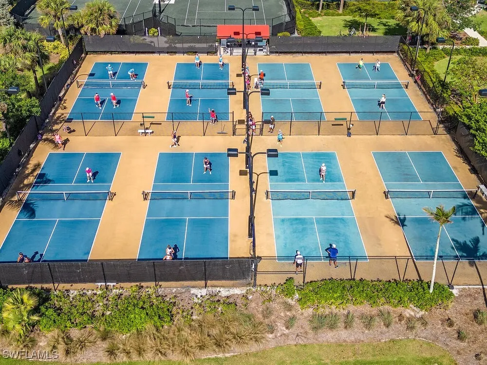 - Includes: Basketball Court, Bocce Court, Cabana, Clubhouse, Dog Park, Fitness Center, Pier, Pickleball, Pool, Restaurant, Sauna, Spa/Hot Tub, Sidewalks, Tennis Court(s), Trail(s)