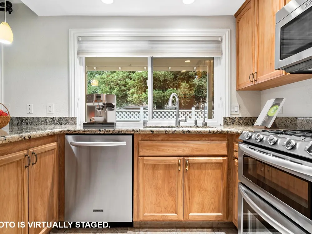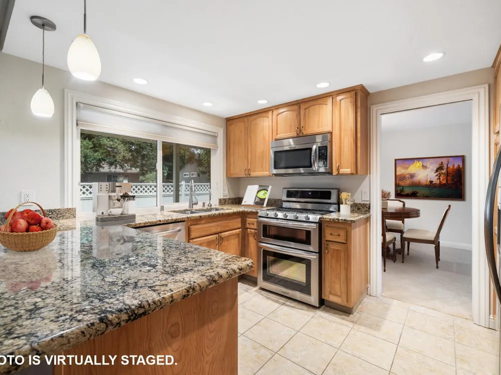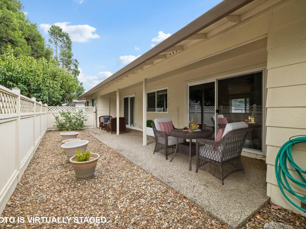 This light and welcoming Manzanita model offers an easy, comfortable layout designed for relaxed Sonoma Valley living. The spacious living room features a cozy gas fireplace and large windows that bring in plenty of natural light. The kitchen is both functional and inviting, showcasing granite countertops, generous cabinetry, stainless steel appliances, and a double gas oven for the home chef. The adjoining dining area flows nicely for everyday meals or entertaining. A versatile laundry and hobby room also works beautifully as an office or project space, and the attached two-car garage adds everyday convenience. The bedroom suite includes its own bath, and tile and carpet flooring provide a balanced mix of warmth and practicality. Step outside to a fenced, low-maintenance yard and patioideal for morning coffee, casual gatherings, or quiet reflection. Located in Oakmont, an active-adult community offering golf, tennis, pickleball, bocce, a fitness center, clubs, and events. Close to award-winning restaurants, wineries, and beloved parks and trails, this home pairs comfort with the best of wine country living.