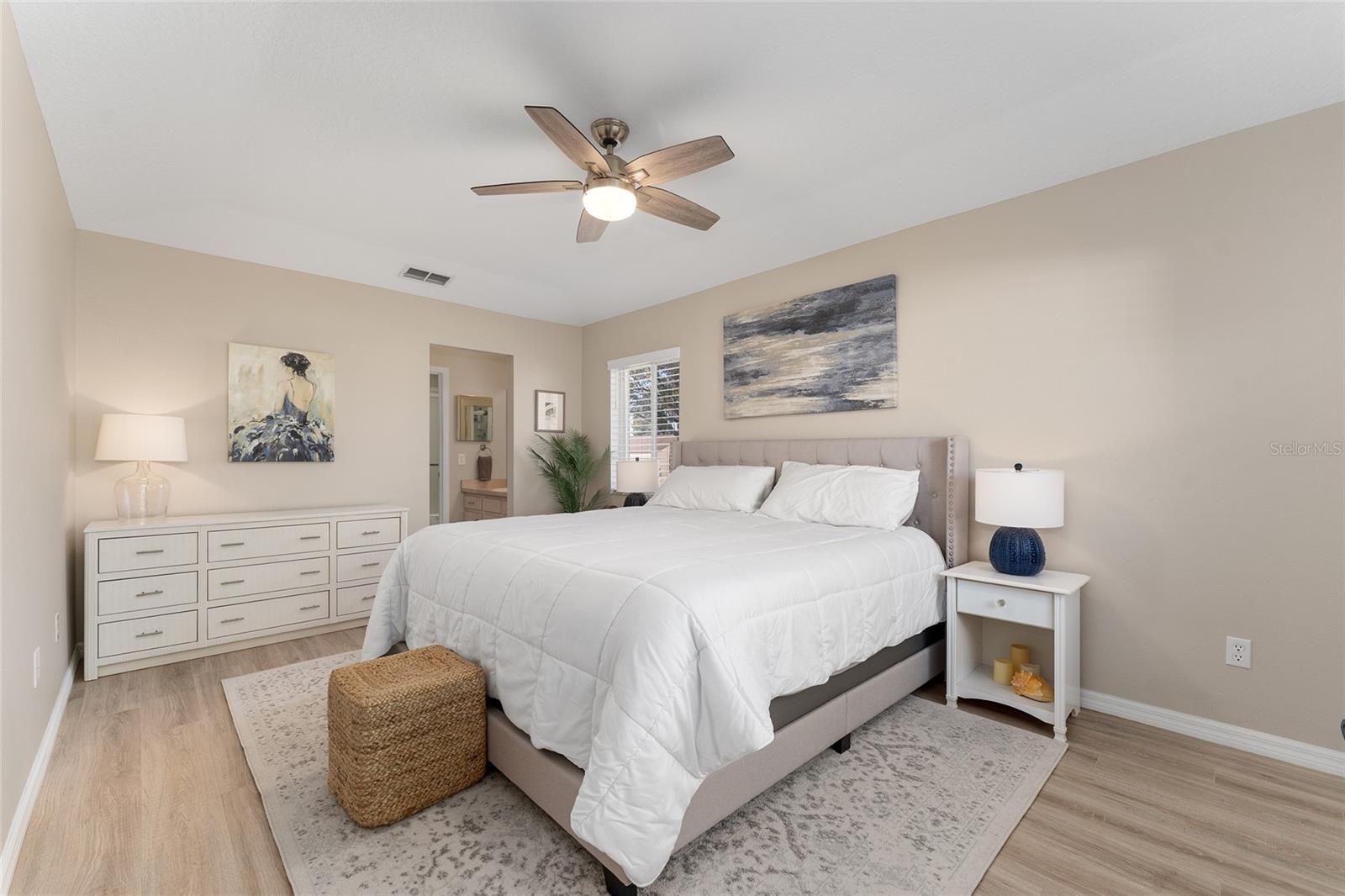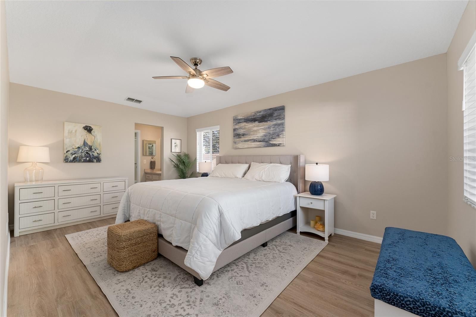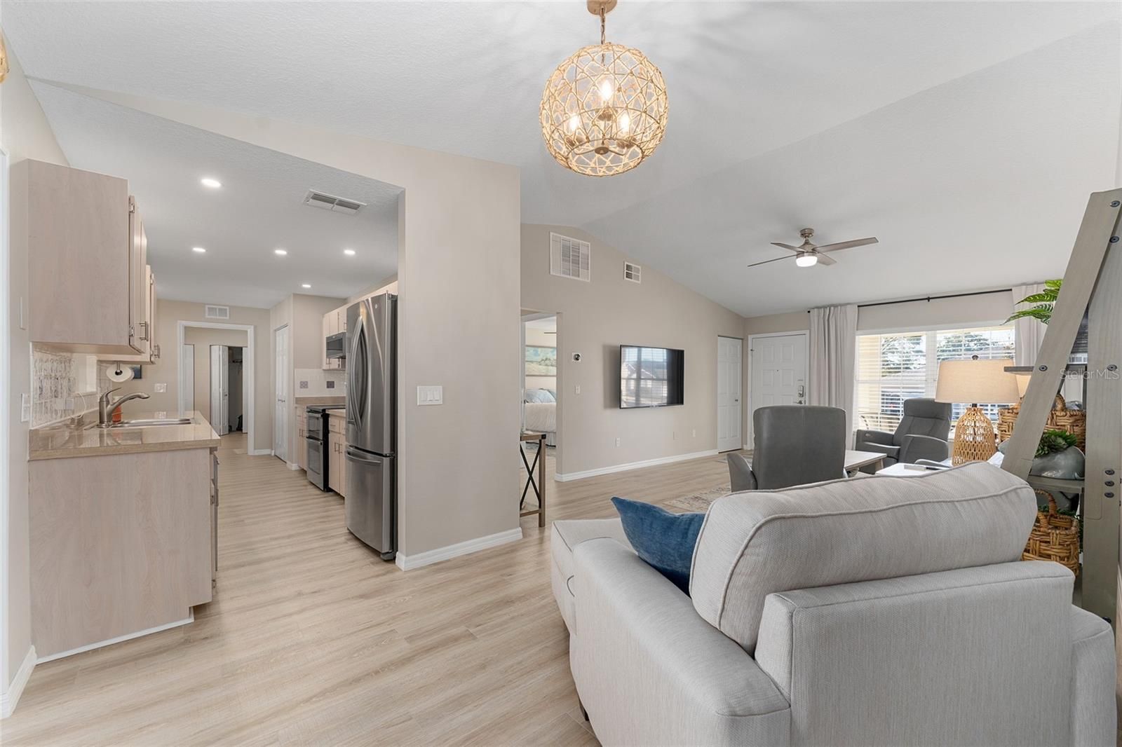 - Living/Dining Room, Main Level Primary, Solid-Wood Cabinets, Split Bedrooms, Walk-In Closet(s), Window Treatments