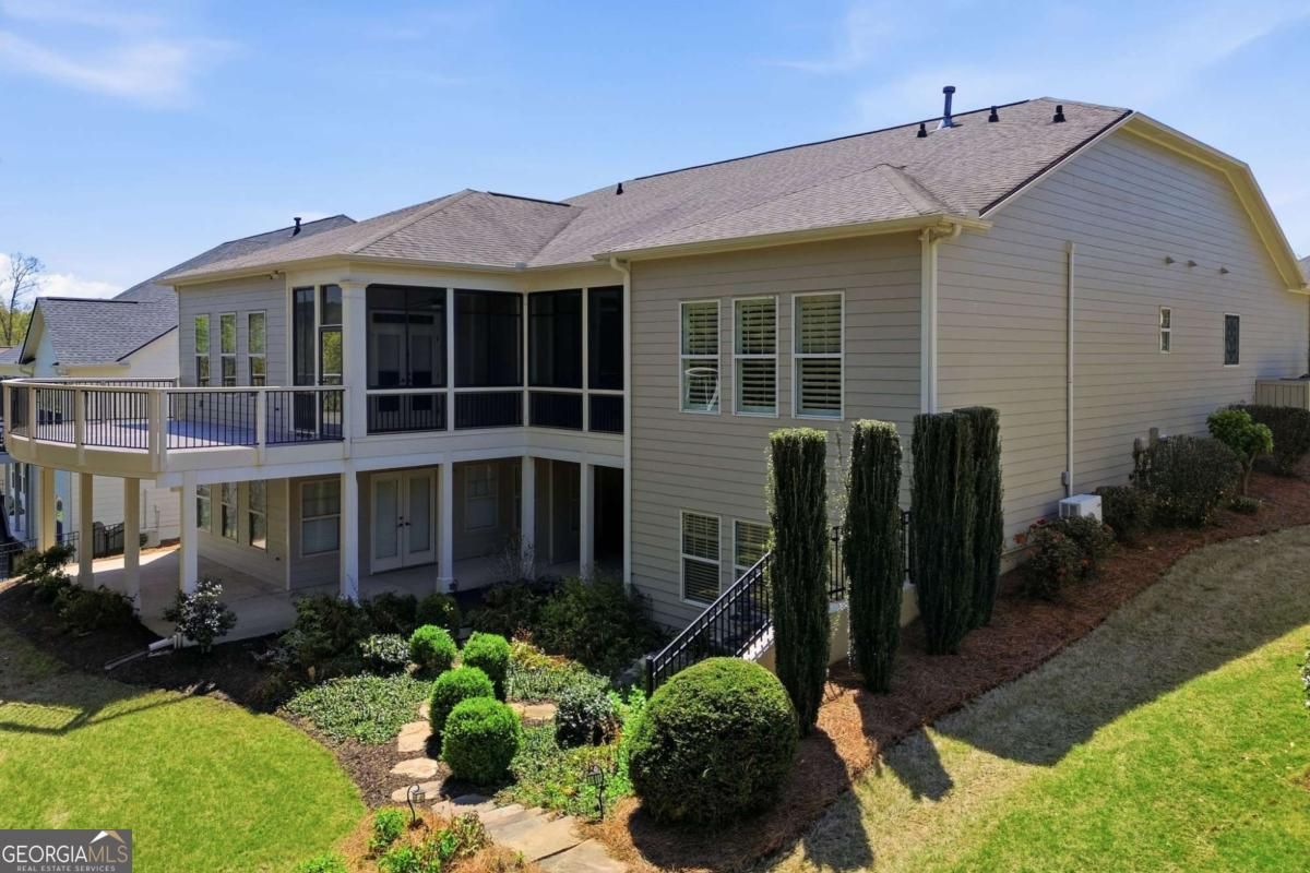 Welcome to a perfect 10 in the highly sought-after Soleil community-where luxury living meets resort-style amenities. Perfectly positioned on the lake, this stunning residence offers breathtaking water, golf course, and clubhouse views, creating an everyday retreat right outside your door. From the moment you arrive, the impressive 8-foot double leaded glass entry doors set the tone for the elegance found throughout. Inside, you'll discover a thoughtfully designed 3-bedroom, 3-bath home with a private office, showcasing exceptional craftsmanship, upscale finishes, and meticulous attention to detail. The heart of the home is a chef-inspired kitchen designed for both beauty and function. Featuring a premium DCS 36" gourmet gas convection range, pot filler, expansive island, abundant cabinetry, generous counter space, and convenient pantry access-this space is ideal for both everyday living and entertaining. The kitchen flows seamlessly into the expanded family room, where large windows frame stunning lake views and invite natural light throughout. Step outside to the heated and cooled enclosed porch with EZ Breeze windows, or relax on the Trex deck, perfectly positioned to enjoy serene views of the lake, golf course, and clubhouse. This outdoor living space offers year-round comfort and is ideal for entertaining or unwinding in nature. Inside, you'll find 10-foot ceilings, hardwood flooring throughout, and plantation shutters, adding timeless elegance. The expanded laundry room offers added functionality with extra cabinetry and a folding area. The luxurious primary suite is a true retreat, featuring oversized his-and-her closets and a spa-like bath complete with a frameless shower-perfect for relaxing after an active day. While the main level offers convenient one-level living, the unfinished basement is already framed and prepped for your vision, including electrical, lighting, stained concrete floors, humidifier, wooden blinds, bath stub, and waterproofing. Step out to the lower patio and appreciate the additional deck system with under-decking and columns. Additional highlights include: Garage with durable coated flooring and EV charging wiring, Professionally landscaped yard with cleared outdoor space, Separate irrigation meter for cost savings, and New HVAC (2023), water heater (2022), and water recirculating pump (2024) Enjoy maintenance-free living, with yard care handled by the HOA, allowing you to fully embrace the unparalleled Soleil lifestyle. This award-winning, 500-acre community features a 30,000 sq. ft. clubhouse, full-time activities directors, fitness programs, and professional instruction for tennis and pickleball. Live every day like you're on vacation-this is more than a home, it's a lifestyle.