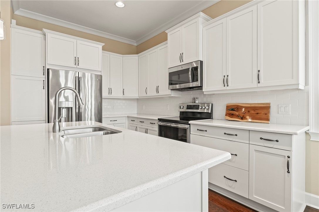 Highly desired Hibiscus Retreat floor plan! This Coach home, in a gated community, is waterfront and located only 90 feet from the Cypress River Waterway’s widest point (ocean water) that offers spectacular, unobstructed views from kitchen, great room, sunroom, and side balcony. Enjoy views of daily sunsets, two boat docks, club house, pool, and numerous wildlife. Cypress River has access to the Gulf of Mexico. Coach homes are built to strict high-quality commercial standards and is fully sprinklered and NOT IN A FLOOD ZONE (Low home insurance, the seller currently is paying $678 a year for HO6 home insurance). This popular 2,781, sq. ft. Hibiscus Retreat coach home floor plan is rarely available. It has 3 bedrooms, 3 baths, den/office, sunroom, loft retreat, covered front porch and two outside balconies. You have your own PRIVATE ELEVATOR that services the entry level, main floor, and loft on the third level. Coach home features include impact glass, vaulted ceilings, crown moldings, plantation shutters, beautiful hardwood flooring throughout (except for tile bathrooms), quartz countertops, walk-in closets in master suite, custom closets in other 2 bedrooms, large 2 car garage with an array of built-in storage cabinets and three ceiling bike racks. New HVAC installed 5/6/22. The Isles of Collier Preserve is a gated community which is only a 10-15 minute drive to Old Naples, 5th Ave restaurants, shopping, art galleries and pristine white sand beaches. First-class amenities include: resort style pool, spa, separate lap pool, club house, state-of-the-art fitness center, locker rooms, saunas, tennis, pickle-ball, bocce, miles of walking/biking paths, pool-side restaurant, kayaking, canoeing, paddle boarding, and dog park all in an environment with more than half of The Isles being a natural preserve.