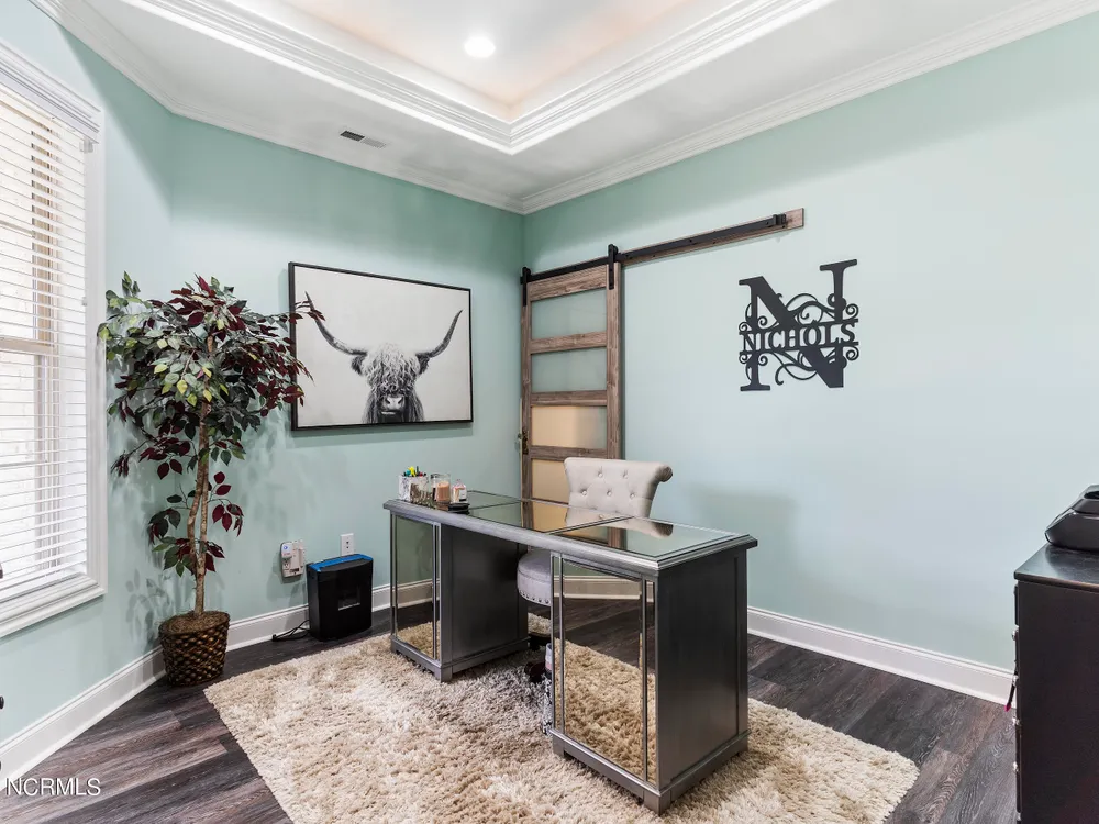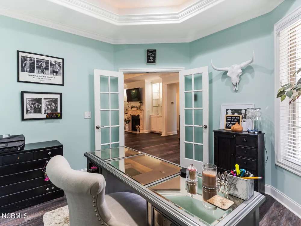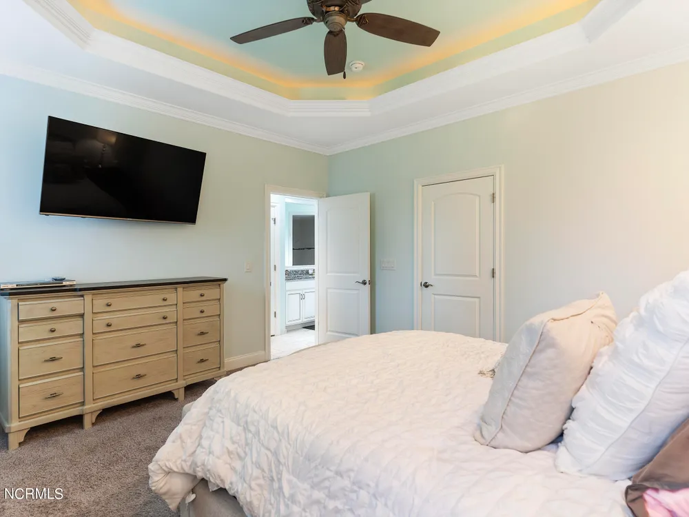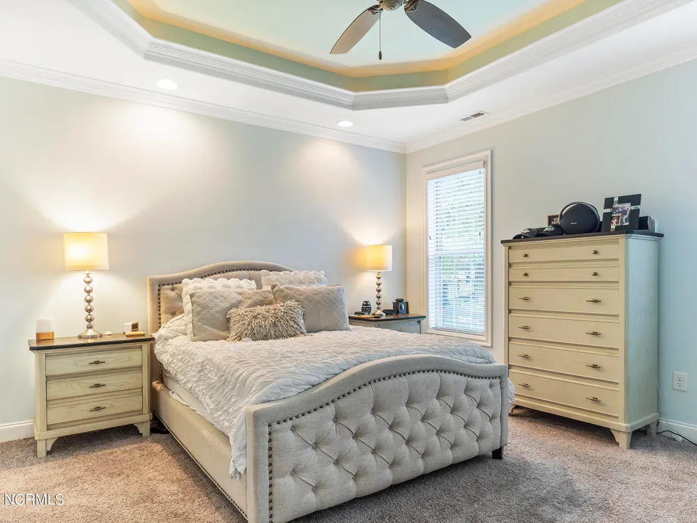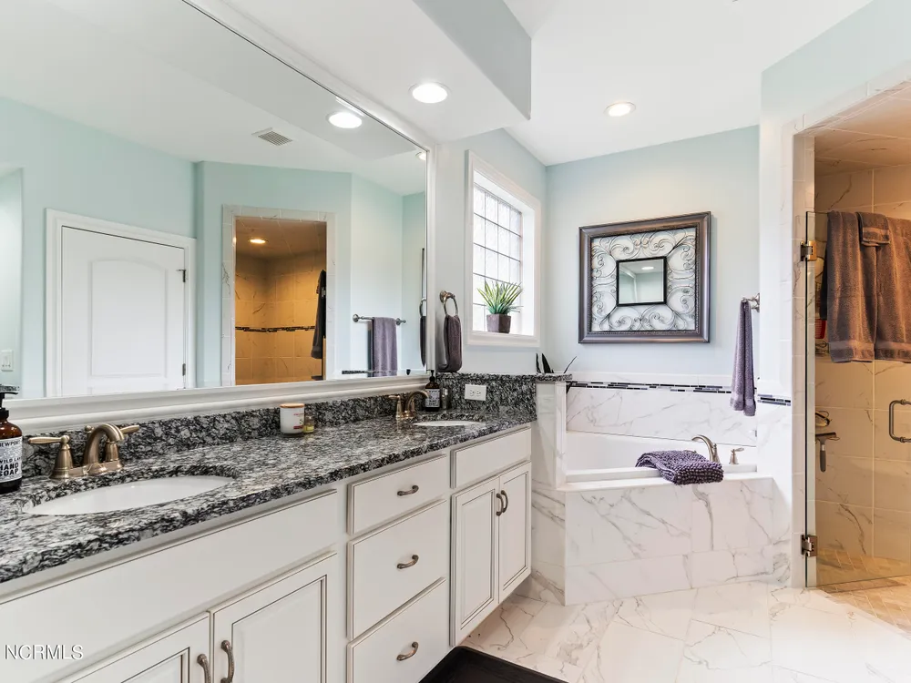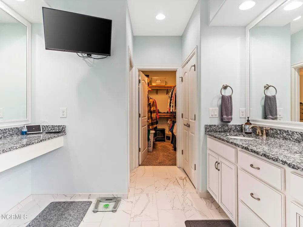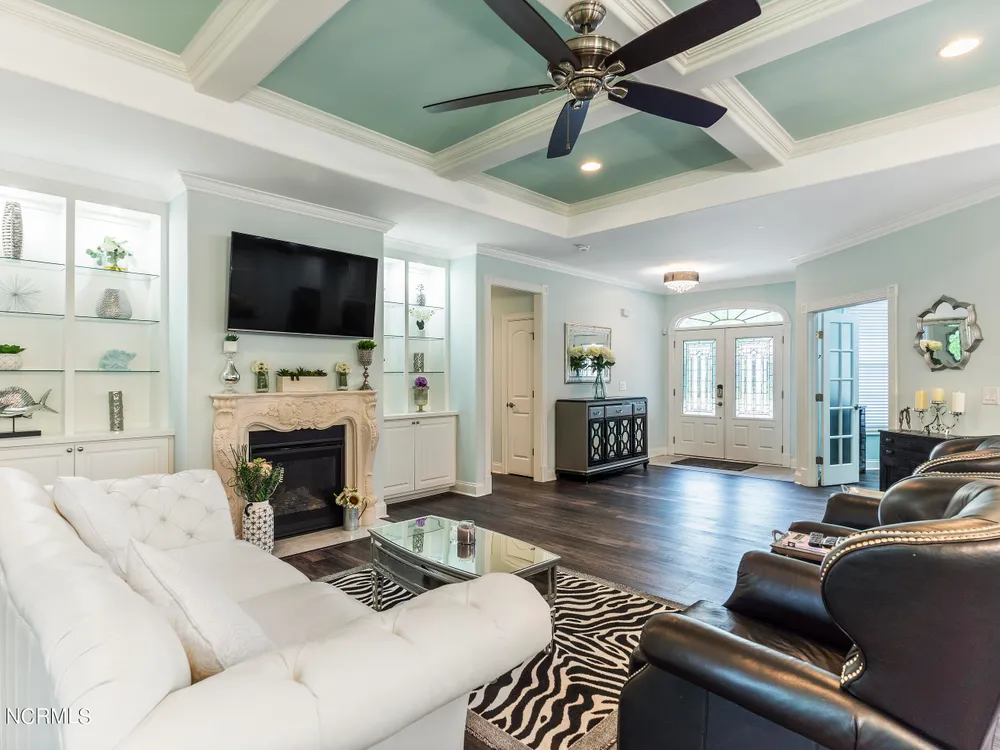 - Blinds/Shades, Solid Surface, Walk-In Closet(s), Walk-in Shower, Tray Ceiling(s), Entrance Foyer, Pantry, Mud Room, Master Downstairs, Kitchen Island, High Ceilings, Gas Log, Ceiling Fan(s), Bookcases