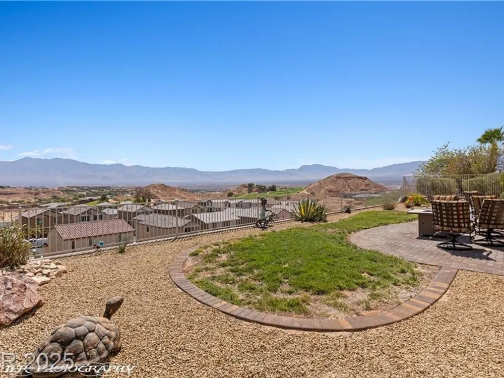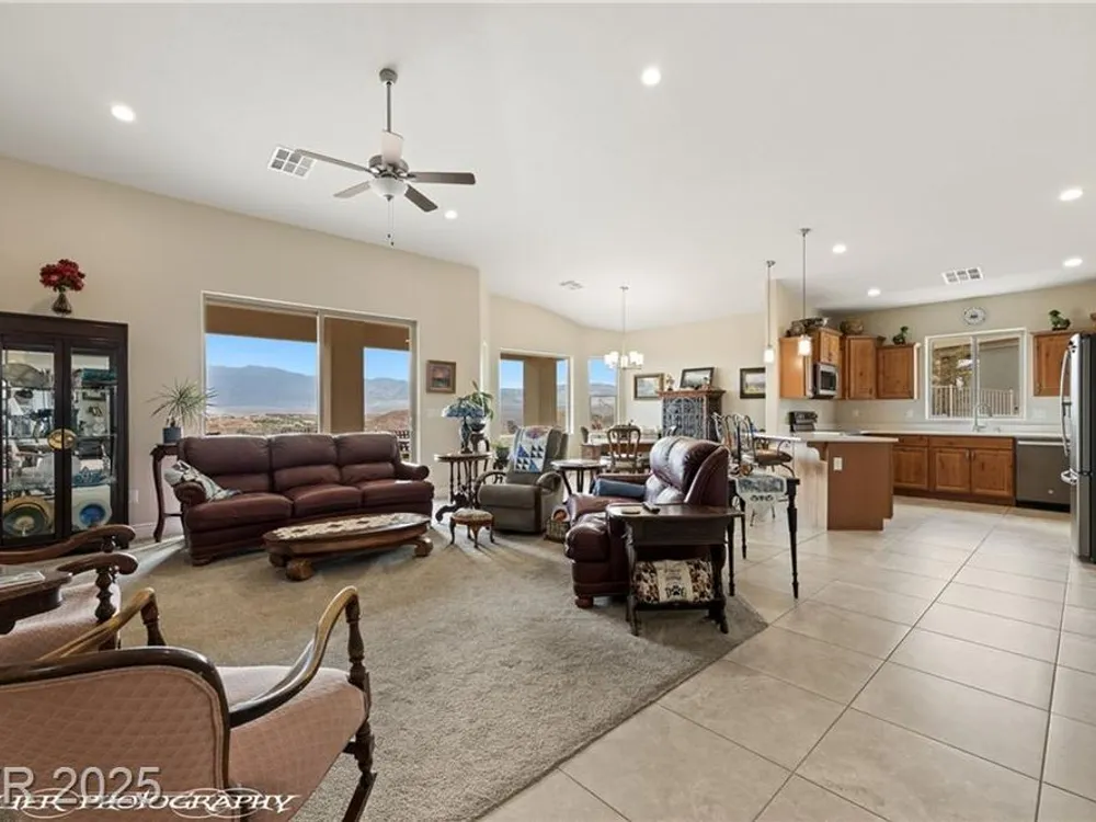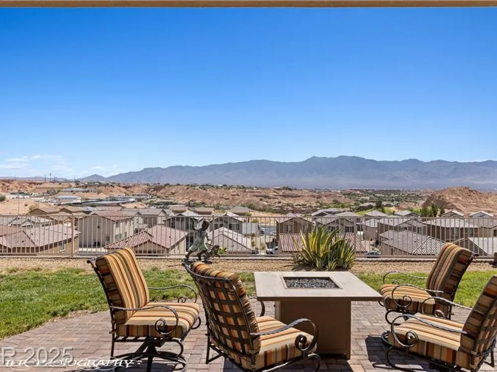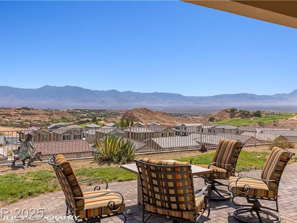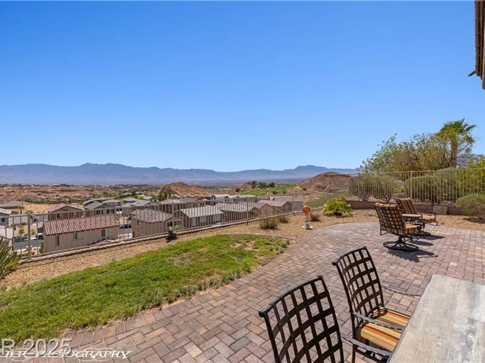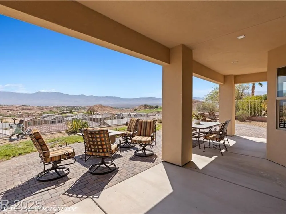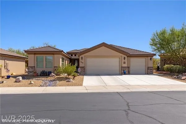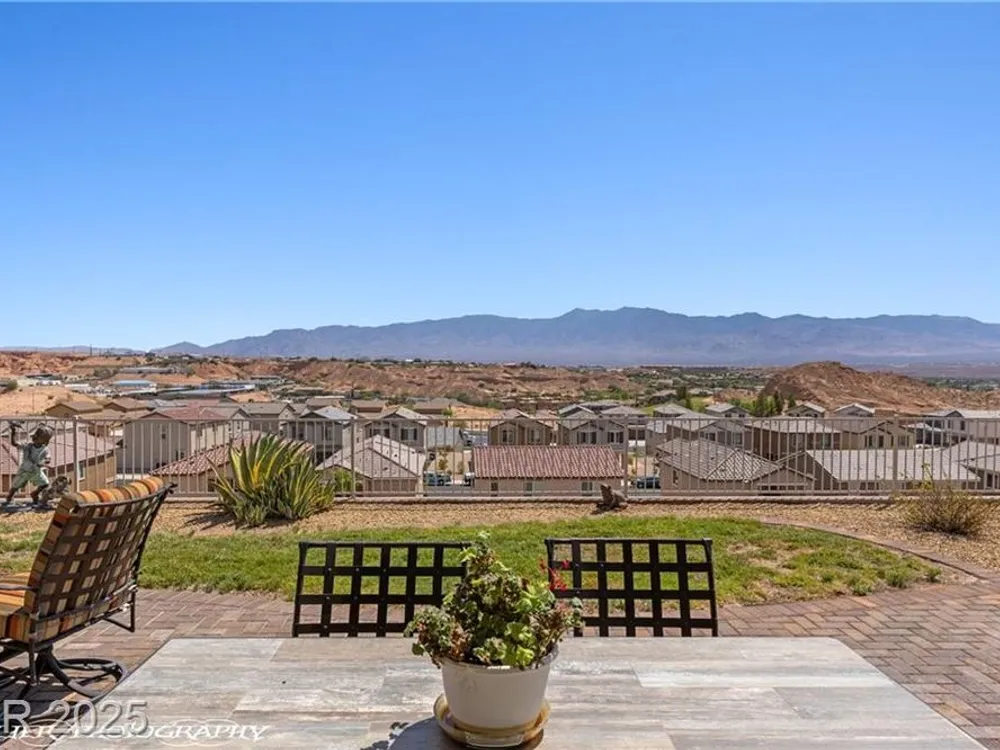 Welcome to 656 Shadow Ridge in the 55+ gated community of Shadow Crest! This beautiful 3BR, 3BA home with a 3-car garage sits on a .21-acre lot and offers panoramic views of the NV, AZ & UT mountains, the Oasis Golf Course, valley & city lights. Built in 2021 with quality 4x6 construction, the open concept floor plan includes a spacious den plus an additional office/work space. A highlight is the 240 sf attached casita featuring its own bedroom, bath, kitchenette & walk-in closet-perfect for guests or multi-gen living. Interior features include tile and carpet flooring, custom cabinets, stainless appliances, and a primary suite with a garden tub and walk-in shower. Epoxy-coated garage floors add durability and style. The fully fenced backyard with desert and lawn landscaping creates the perfect setting to relax and enjoy the views.