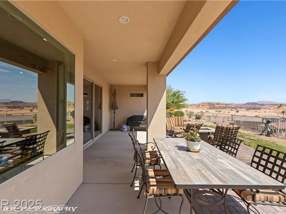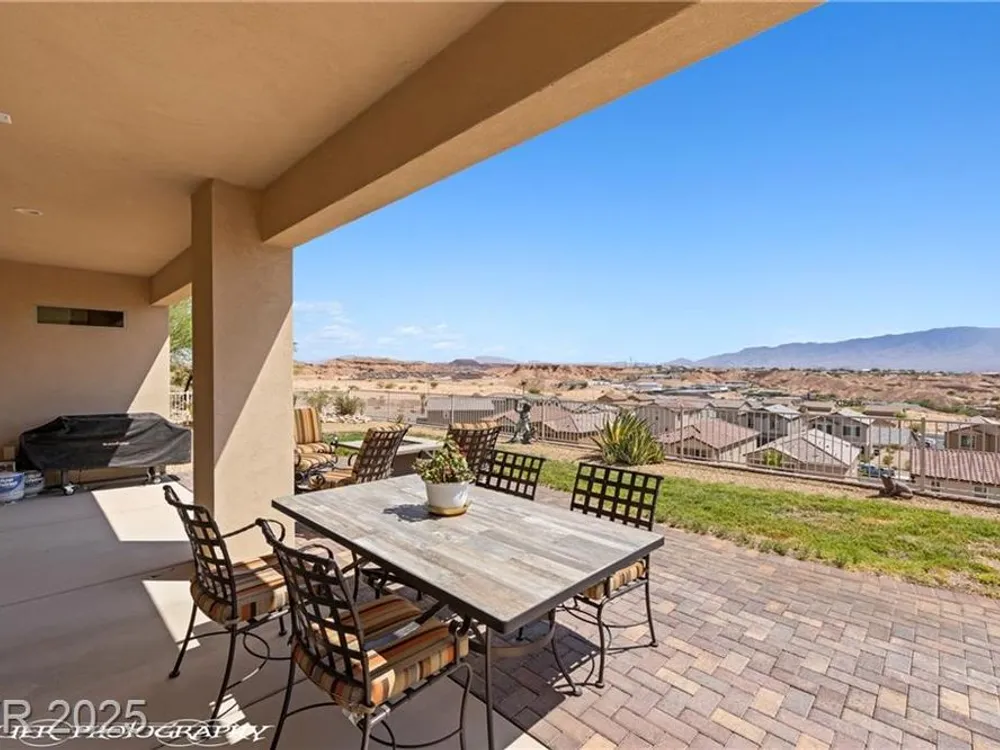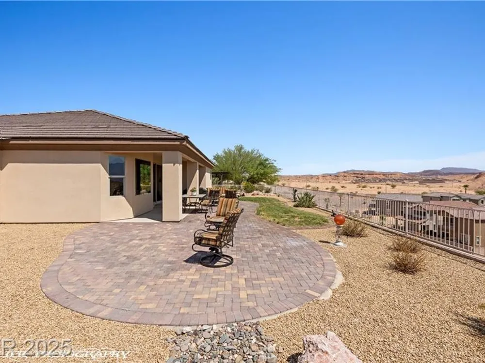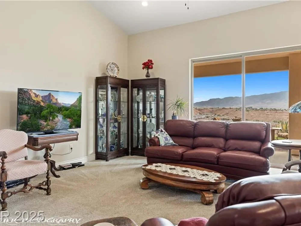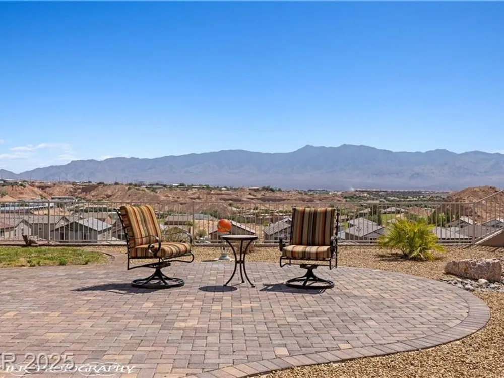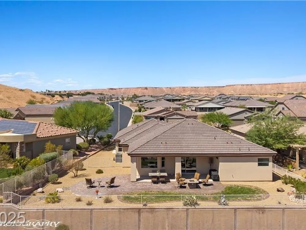 Welcome to 656 Shadow Ridge in the 55+ gated community of Shadow Crest! This beautiful 3BR, 3BA home with a 3-car garage sits on a .21-acre lot and offers panoramic views of the NV, AZ & UT mountains, the Oasis Golf Course, valley & city lights. Built in 2021 with quality 4x6 construction, the open concept floor plan includes a spacious den plus an additional office/work space. A highlight is the 240 sf attached casita featuring its own bedroom, bath, kitchenette & walk-in closet-perfect for guests or multi-gen living. Interior features include tile and carpet flooring, custom cabinets, stainless appliances, and a primary suite with a garden tub and walk-in shower. Epoxy-coated garage floors add durability and style. The fully fenced backyard with desert and lawn landscaping creates the perfect setting to relax and enjoy the views.