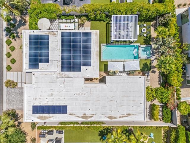 FEATURED IN THE 2025 MODERNISM WEEK SIGNATURE HOME TOUR--ONE OF JUST TWO NEWER-BUILT HOMES SELECTED. This true Palm Springs gem located in the highly sought-after Escena community is extensively upgraded, blending sophisticated design with cutting-edge technology. An open-concept floor plan is bathed in natural light, creating a bright and airy atmosphere that highlights the home's clean lines and modern finishes. Expansive Fleetwood sliding glass doors open to a private outdoor oasis, offering seamless indoor-outdoor living that is perfect for entertaining and everyday enjoyment.The resort-style backyard features a stunning pool and spa, an outdoor shower, built-in Fisher & Paykel BBQ, gas fire pit, a beautifully designed pergola with a solar-powered motorized shade, and an array of lounge areas - ideal for hosting gatherings or unwinding under the desert sky. Inside, the chef's kitchen is anchored by a large quartz island, complemented by stainless steel appliances and bold, stylish finishes that add character throughout the home. A gas interior fireplace adds warmth and ambiance to the main living area, while California Closet systems in the Primary, Garage, and Entry Closet provide seamless organization throughout.This residence has been significantly upgraded with a complete smart home environment, including Control4 climate and lighting control, Sonos sound system inside and out, automated Somfy window shades, a water softening system, and a 37-panel financed solar system for energy efficiency and long-term savings.Thoughtfully designed for both comfort and entertaining, this exceptional property captures the essence of Palm Springs living at its finest.