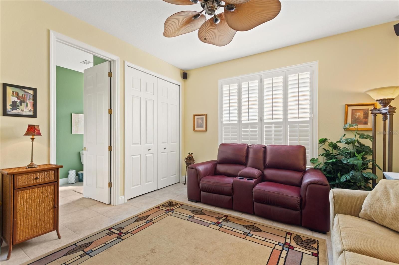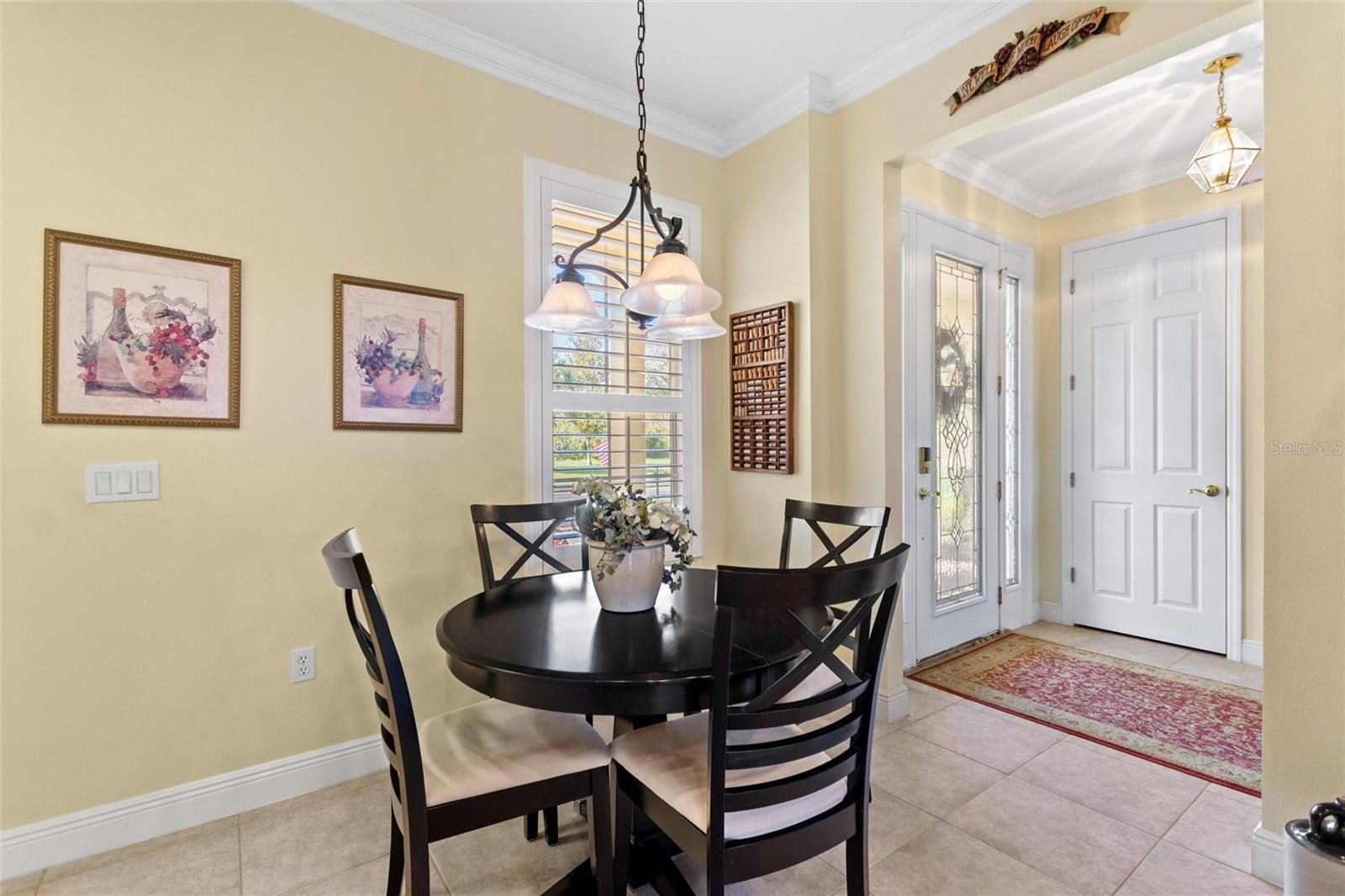 - Ceiling Fan(s), Crown Molding, Eat-in Kitchen, Main Level Primary, Solid Surface Counters, Thermostat, Window Treatments