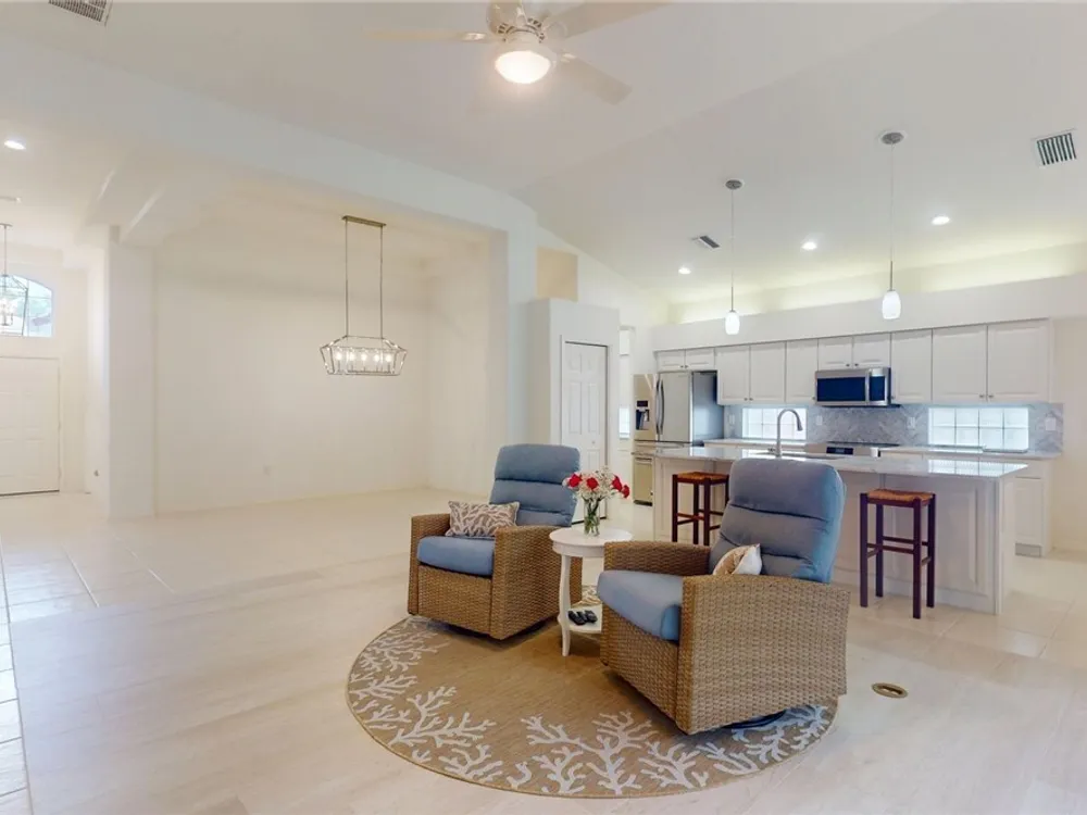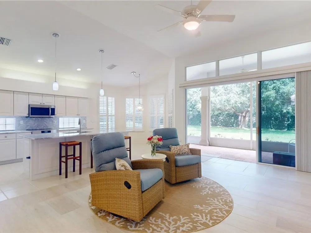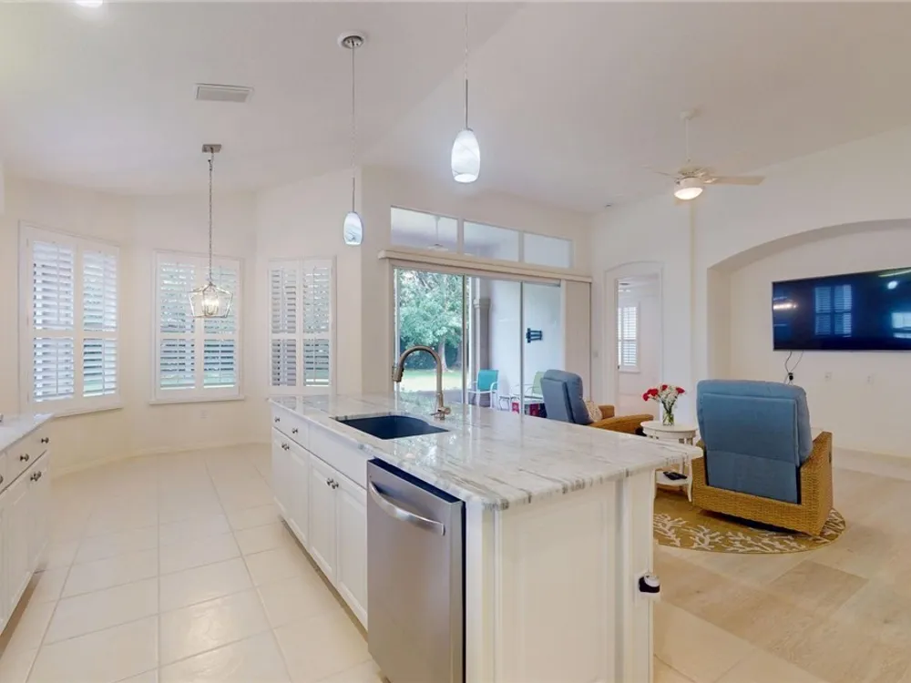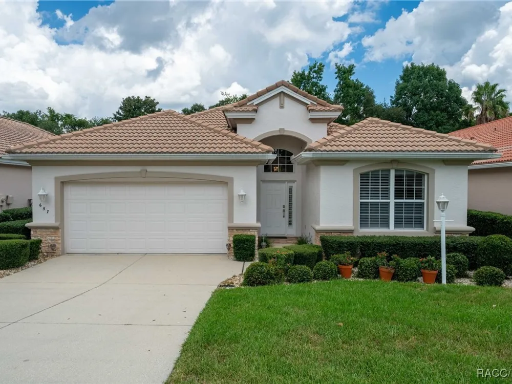 Welcome to this beautifully upgraded 2-bedroom + den, 2-bath, 2-car garage home in the heart of Terra Vista! This home blends comfort, style, and functionality, offering an ideal retreat for everyday living and entertaining. Inside, you'll love the thoughtfully designed floor plan featuring a spacious living room with new flooring, a versatile den/office, and a freshly painted master suite. The kitchen has been completely refreshed with granite countertops, a new sink and faucet, upgraded appliances including a dishwasher, oven, and microwave, plus a stylish backsplash. Cabinet drawers and shelves have all been lined for a neat, finished look. The bathrooms have also been updated with new commodes and shower heads, while new lighting in the kitchen, dining and foyer adds a warm, inviting glow. All recessed lighting has been replaced, and the home boasts electrical upgrades throughout, new smoke detectors, and elevated TV mount outlets in both the living room and exterior. Additional upgrades include plantation shutters throughout, a new keyless entry lock on the front door, and a water line replacement in the garage for a refrigerator with an icemaker. Step outside and take advantage of Terra Vista's world-class amenities, including championship golf courses, resort-style pools, a luxurious clubhouse, fitness centers, dining, and nightly entertainment. Enjoy the convenience of nearby shopping, dining, walking and biking trails, and medical facilities. This move-in ready home has been meticulously maintained and enhanced with over a dozen thoughtful upgrades truly offering peace of mind and modern comfort. Don't miss this opportunity to own a piece of paradise!
