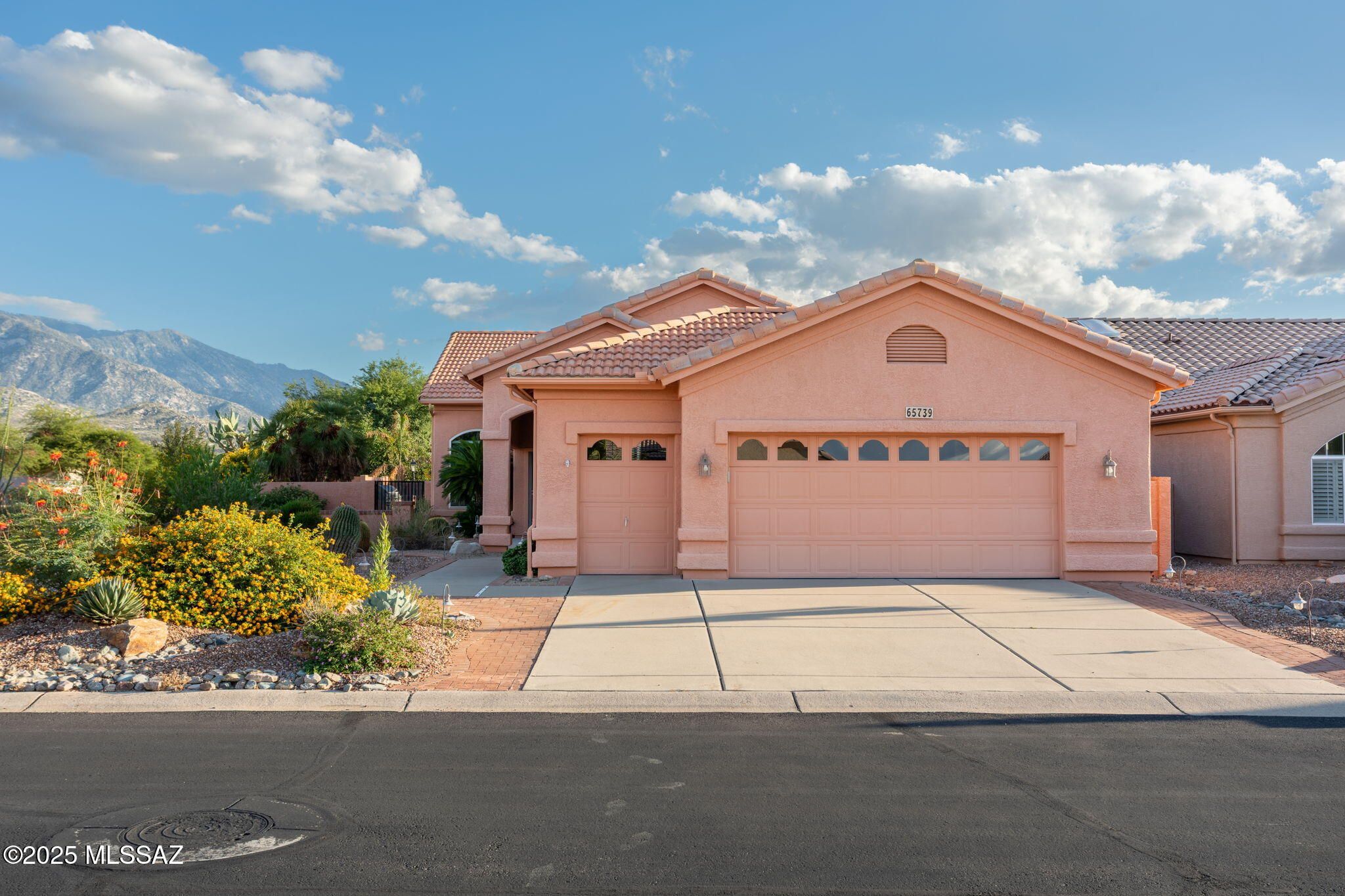 Price Reduced. HUD Home Save thousands. Great value at a modest price. Bright open feeling home. Spacious great room concept floor plan. 2 large bedrooms. 2 full baths Single story, Kitchen has a big island a breakfast nook, granite counter tops. Living area offers Catalina Mountain Views, vaulted ceilings, & large windows create a light and airy ambiance.. Family room off kitchen, plus a separate den. Covered patio, nicely landscaped back yard with awesome mountain views. 2 car garage. plus golf cart garage. 2nd home and investor buyers are welcome to bid 15 days from list date. Buyers are responsible for utility turn-on and any required permits for utility connect and re-winterization fee. Buyer to verify all info.
