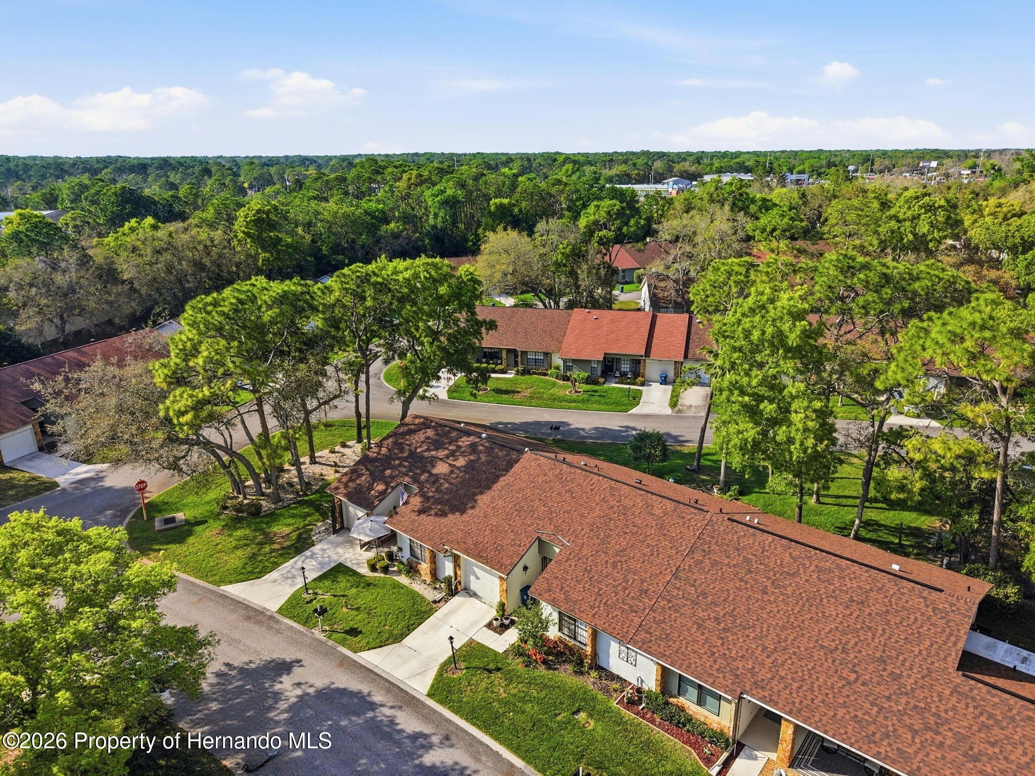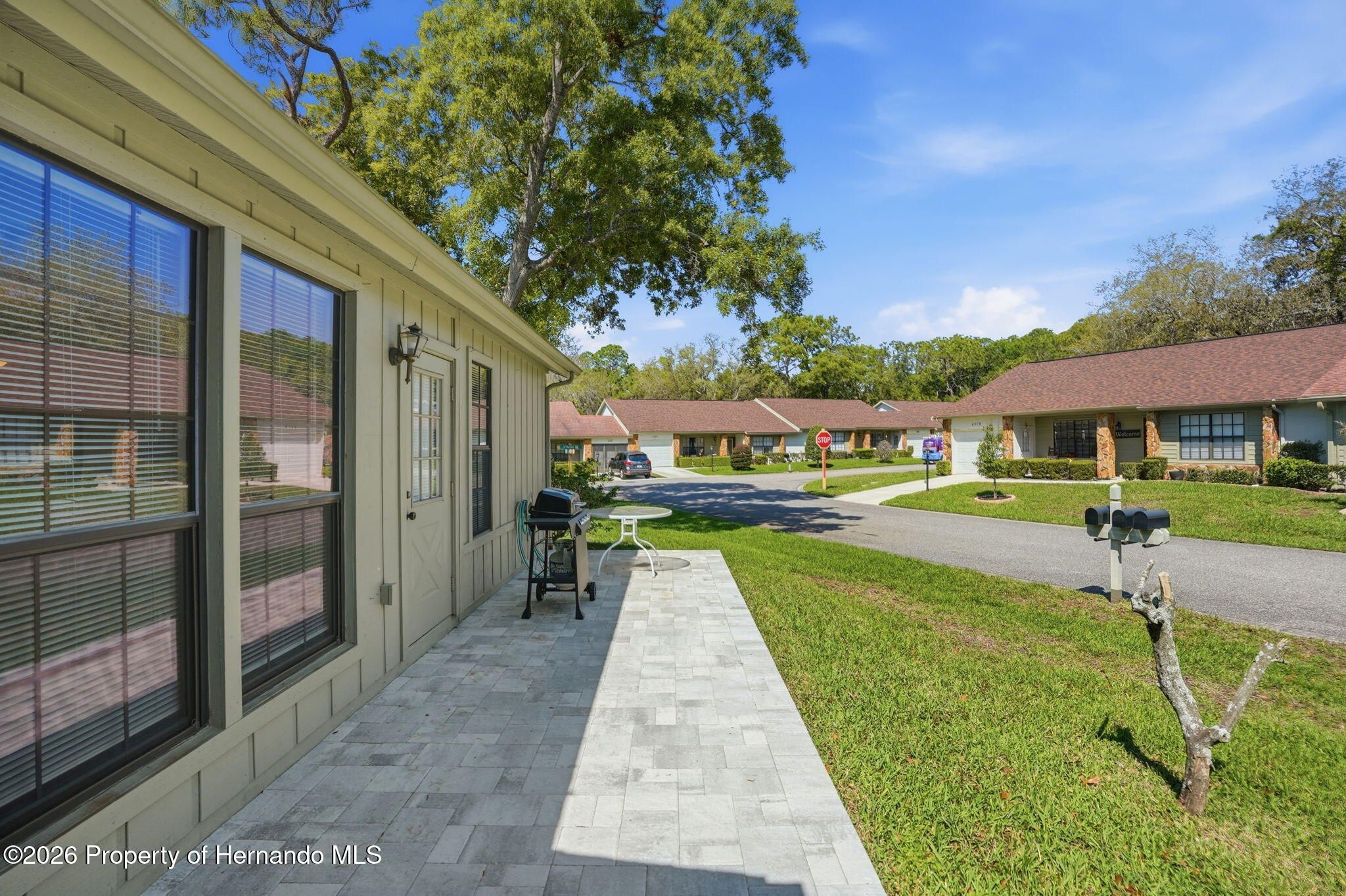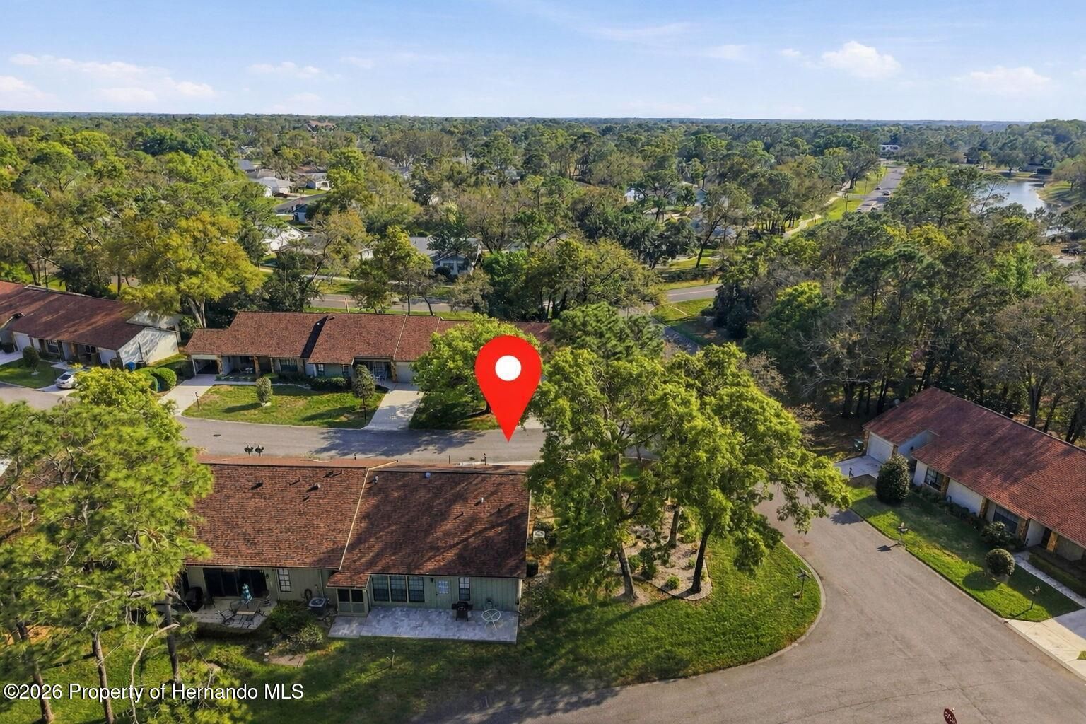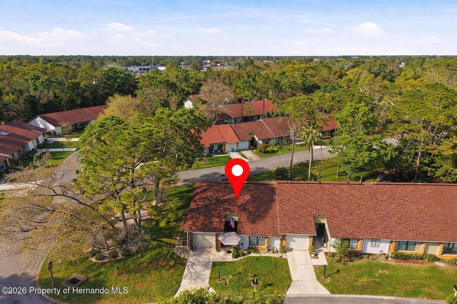 MOVE-IN READY!! Maintenance-Free VILLA! END UNIT!! NEW ROOF!! NEW REAR PATIO!! 2/2/1 + GOLF CART GARAGE!! LARGE SIDE YARD with only one neighbor on the one side...so you don't feel closed in!! Located in a village with its own pool + in addition to the two large community pools!! Lots of village activities by the pool!! Located in the HIGHLY desired 55+, gated, golf and pickle ball community of Timber Pines!! No outside maintenance - everything is included!! Cable + Internet included, as well!! This particular unit offers so much: 2 large bedrooms + 2 full bathrooms + 1 car garage with attic storage space and its been freshly painted + front porch + outside patio with brand new brick pavers + because it's an end unit, you have a side yard with the feeling of extra space (see the aerial photo of the GIS map in the photos + breakfast nook + refreshed kitchen with painted cabinets and new countertops! Floor to ceiling windows make the home feel light, bright, and spacious!! SPACIOUS VILLA with 1,054 sq ft living space ; 1,418 sq feet total!! GREAT FLOOR PLAN!! NEW ROOF!! NEWER APPLIANCES!! Just move-in and decorate!! TIMBER PINES COMMUNITY: Feel that sense of being part of what so many come to Timber Pines for!! This active adult community offers so much to its residents from amazing golf courses, onsite restaurant and bar, sidewalks for walking, a golf-cart friendly neighborhood, to daily planned activities to enjoy meeting your neighbors! This is truly a sought after destination to live in Florida! The resort-style amenities allow you to enjoy the Clubhouse AND Lodge, 2 large community resort-style pools with spas, or take advantage of the wellness center and fitness center, or play pickle-ball on the new AWARD WINNING courts, or play tennis at any of the 8 lighted courts, or golf at one of the 4 immaculately maintained impressive championship golf courses with driving range, 2 chipping & 2 putting greens, or enjoy lunch or dinner at the fine dining restaurant or at the grille and bar with friends, or join one of the hundred plus social clubs sure to match your hobbies and interests from pool to arts and crafts and everything in between! ** The HOA INCLUDES all of these amazing amenities with a 24-hour guard at the gates, Cable TV AND High-Speed Internet. ** LOCATION: Located just 45 minutes north of Tampa Bay, 15 minutes from the Suncoast Parkway for quick and easy access to Tampa and Tampa International Airport! Top Ranked Tampa General Hospitals in the county! Top Ranked Bayonet Point Hospital 10 minutes away! 15 minutes to sunsets at Pine Island, TOP US Beaches 1 hour away! Enjoy everything AMAZING that Timber Pines and Florida have to offer! Land, Site, and a One time charge 2900 dollars Capital Reserve. Close to everything!! Shoppes, restaurants, hospitals, schools...everything!! Less than 10 minutes to kayaking, paddle-boarding, and swimming with the manatees in the clear Weeki Wachee River or enjoying a day at Buccaneer Bay Water Park!! 15 minutes to the sunsets at Pine Island, boating and fishing!! Less than 10 minutes to the Suncoast Parkway for quick and easy access to Tampa International Airport and for all the fun that Tampa Bay has to offer!! 1 hour + to TOP US BEACHES!! 1.5 hours to Disney World and Universal Studios and all the theme parks!!