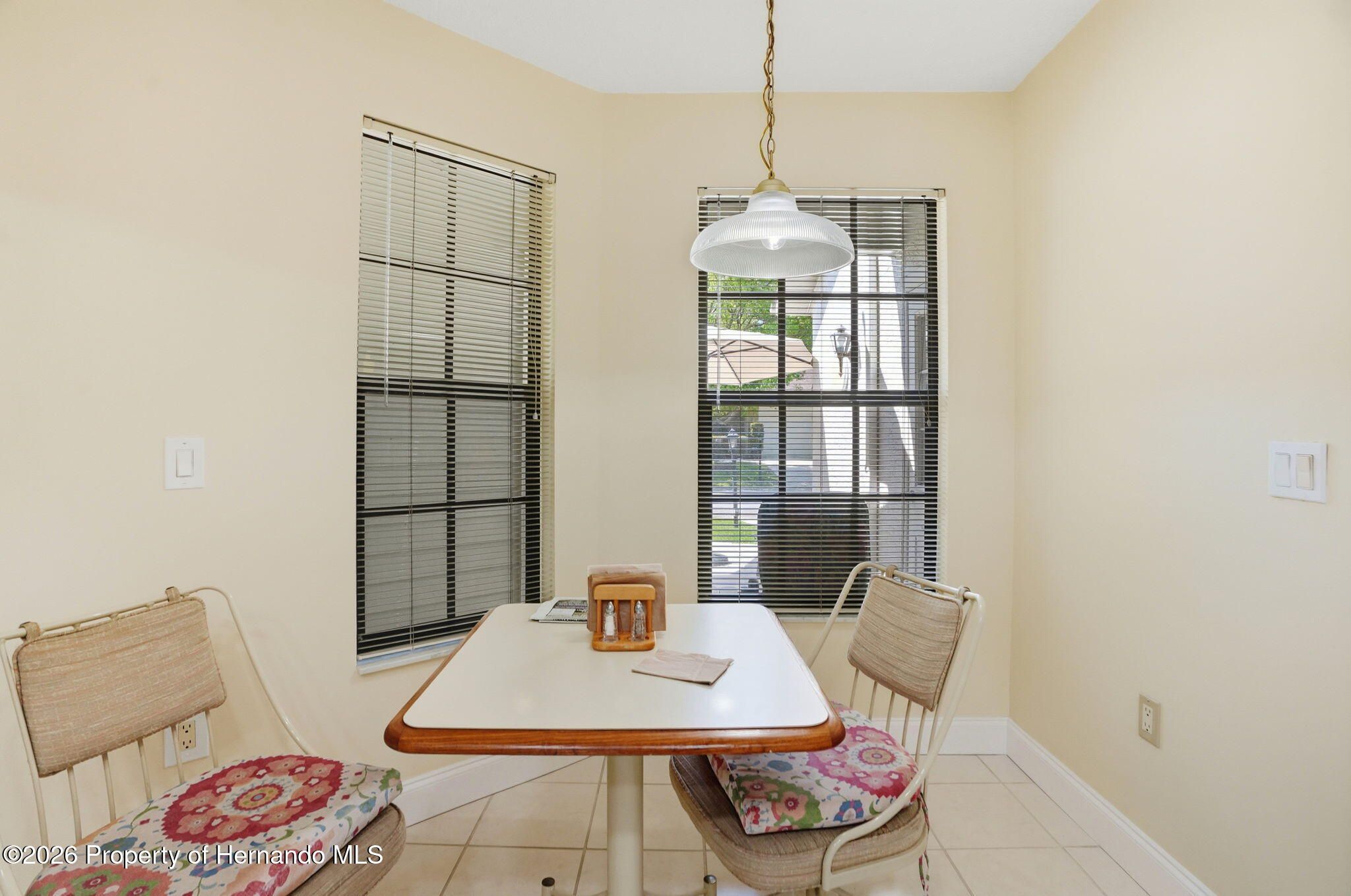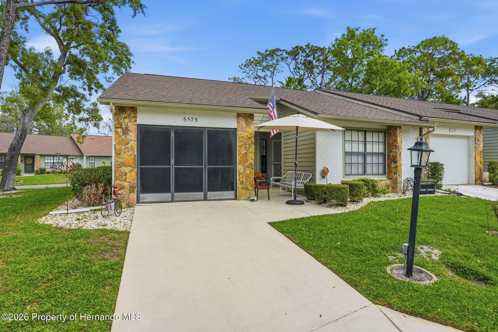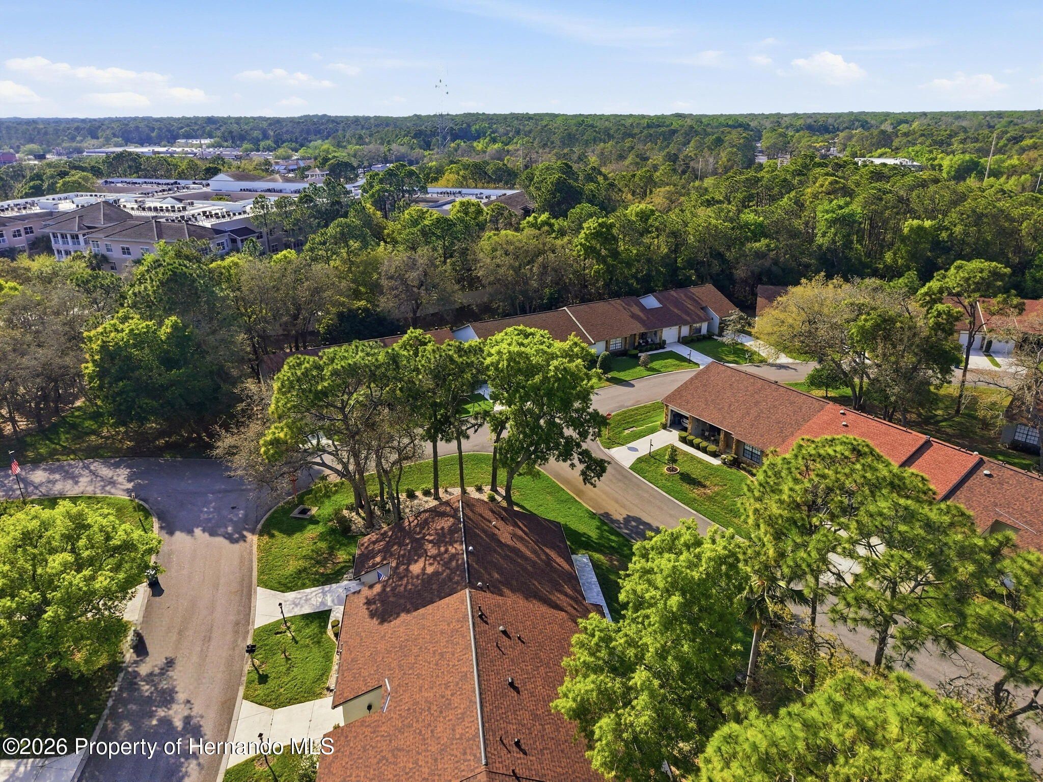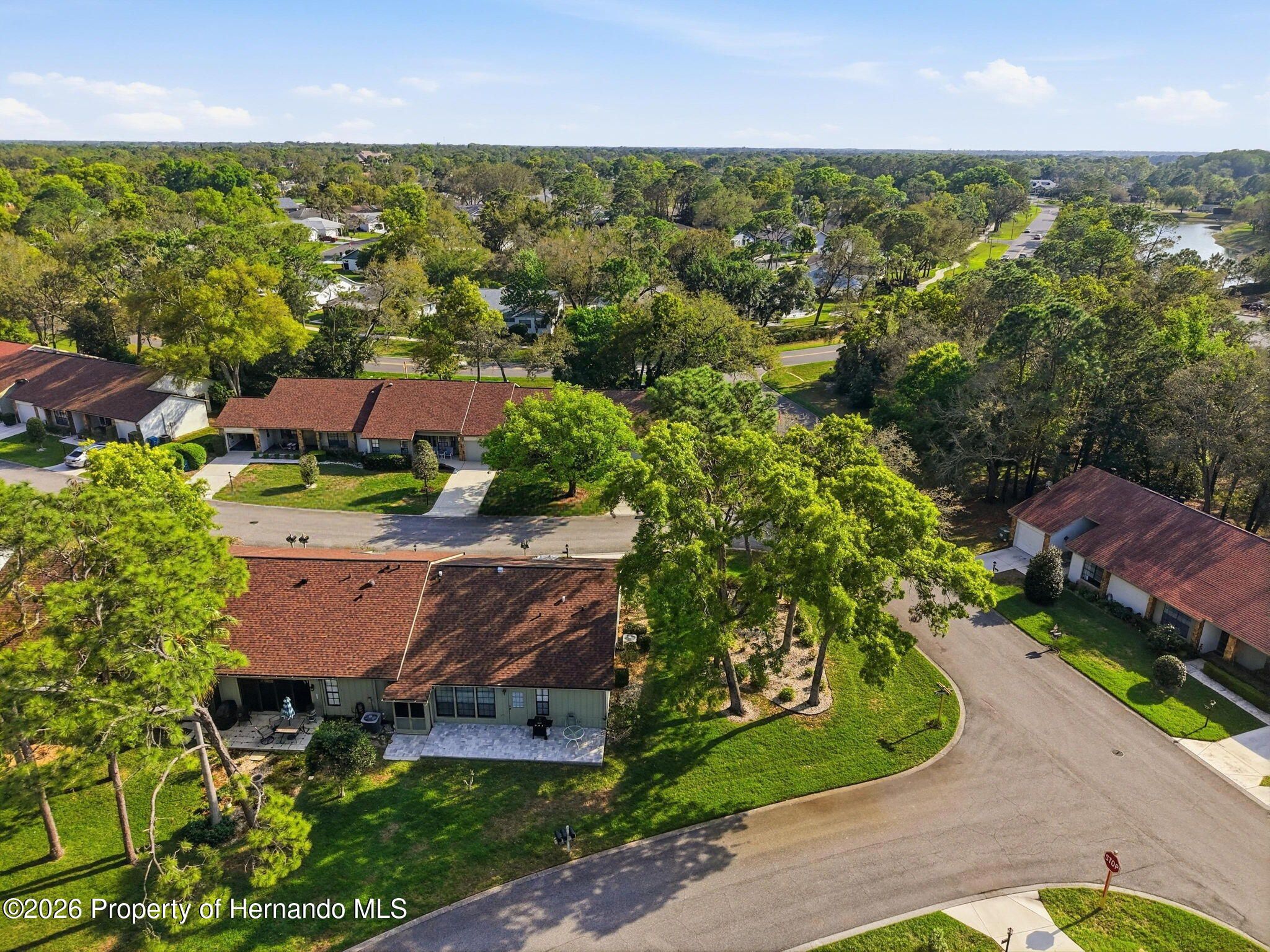 MOVE-IN READY!! Maintenance-Free VILLA! END UNIT!! NEW ROOF!! NEW REAR PATIO!! 2/2/1 + GOLF CART GARAGE!! LARGE SIDE YARD with only one neighbor on the one side...so you don't feel closed in!! Located in a village with its own pool + in addition to the two large community pools!! Lots of village activities by the pool!! Located in the HIGHLY desired 55+, gated, golf and pickle ball community of Timber Pines!! No outside maintenance - everything is included!! Cable + Internet included, as well!! This particular unit offers so much: 2 large bedrooms + 2 full bathrooms + 1 car garage with attic storage space and its been freshly painted + front porch + outside patio with brand new brick pavers + because it's an end unit, you have a side yard with the feeling of extra space (see the aerial photo of the GIS map in the photos + breakfast nook + refreshed kitchen with painted cabinets and new countertops! Floor to ceiling windows make the home feel light, bright, and spacious!! SPACIOUS VILLA with 1,054 sq ft living space ; 1,418 sq feet total!! GREAT FLOOR PLAN!! NEW ROOF!! NEWER APPLIANCES!! Just move-in and decorate!! TIMBER PINES COMMUNITY: Feel that sense of being part of what so many come to Timber Pines for!! This active adult community offers so much to its residents from amazing golf courses, onsite restaurant and bar, sidewalks for walking, a golf-cart friendly neighborhood, to daily planned activities to enjoy meeting your neighbors! This is truly a sought after destination to live in Florida! The resort-style amenities allow you to enjoy the Clubhouse AND Lodge, 2 large community resort-style pools with spas, or take advantage of the wellness center and fitness center, or play pickle-ball on the new AWARD WINNING courts, or play tennis at any of the 8 lighted courts, or golf at one of the 4 immaculately maintained impressive championship golf courses with driving range, 2 chipping & 2 putting greens, or enjoy lunch or dinner at the fine dining restaurant or at the grille and bar with friends, or join one of the hundred plus social clubs sure to match your hobbies and interests from pool to arts and crafts and everything in between! ** The HOA INCLUDES all of these amazing amenities with a 24-hour guard at the gates, Cable TV AND High-Speed Internet. ** LOCATION: Located just 45 minutes north of Tampa Bay, 15 minutes from the Suncoast Parkway for quick and easy access to Tampa and Tampa International Airport! Top Ranked Tampa General Hospitals in the county! Top Ranked Bayonet Point Hospital 10 minutes away! 15 minutes to sunsets at Pine Island, TOP US Beaches 1 hour away! Enjoy everything AMAZING that Timber Pines and Florida have to offer! Land, Site, and a One time charge 2900 dollars Capital Reserve. Close to everything!! Shoppes, restaurants, hospitals, schools...everything!! Less than 10 minutes to kayaking, paddle-boarding, and swimming with the manatees in the clear Weeki Wachee River or enjoying a day at Buccaneer Bay Water Park!! 15 minutes to the sunsets at Pine Island, boating and fishing!! Less than 10 minutes to the Suncoast Parkway for quick and easy access to Tampa International Airport and for all the fun that Tampa Bay has to offer!! 1 hour + to TOP US BEACHES!! 1.5 hours to Disney World and Universal Studios and all the theme parks!!