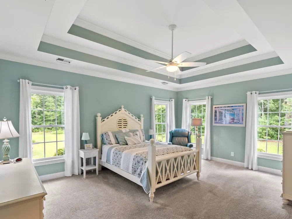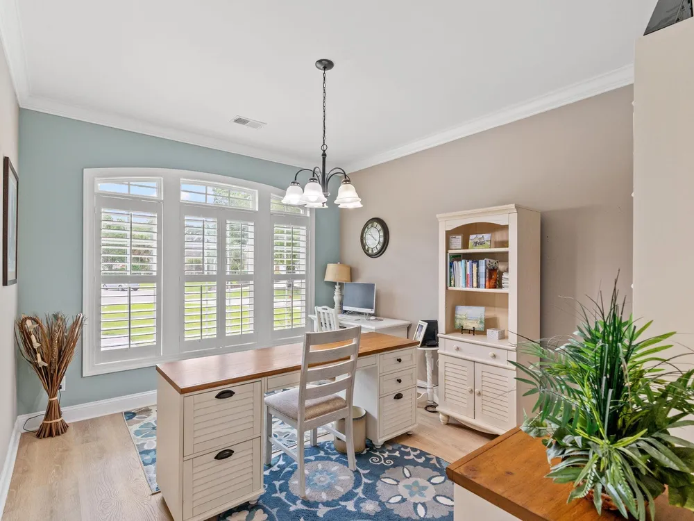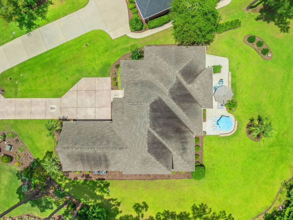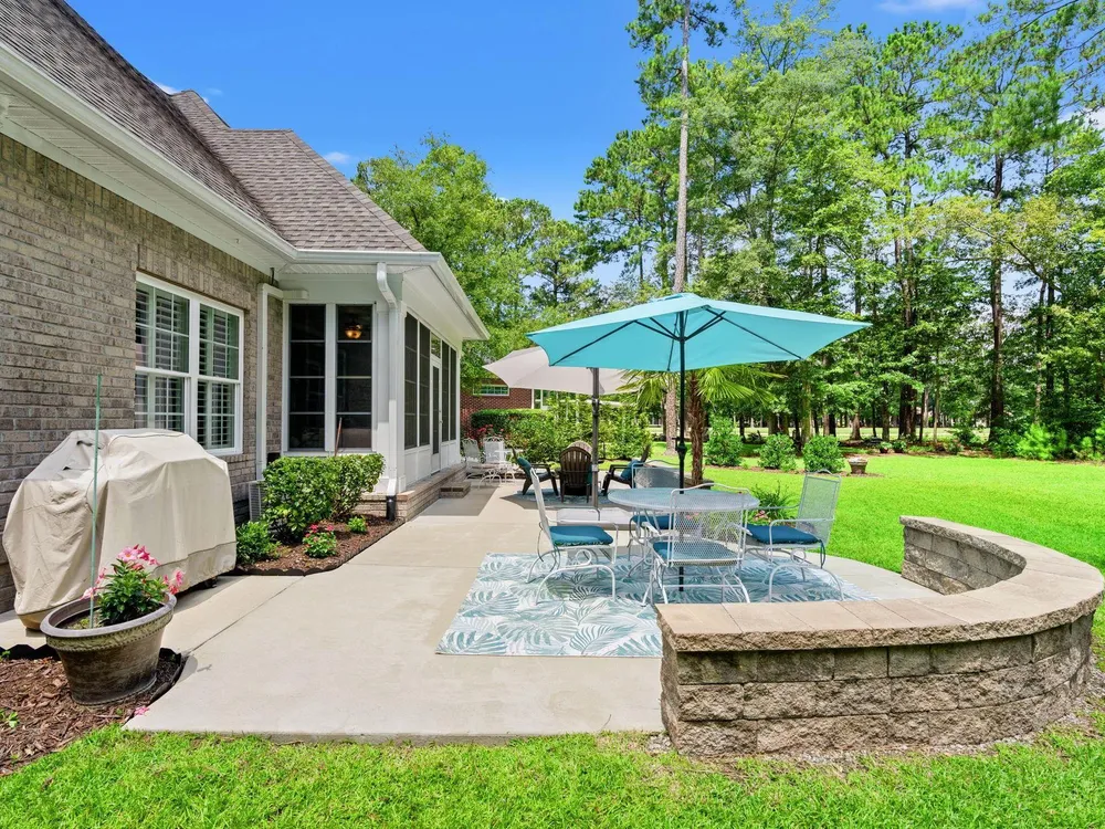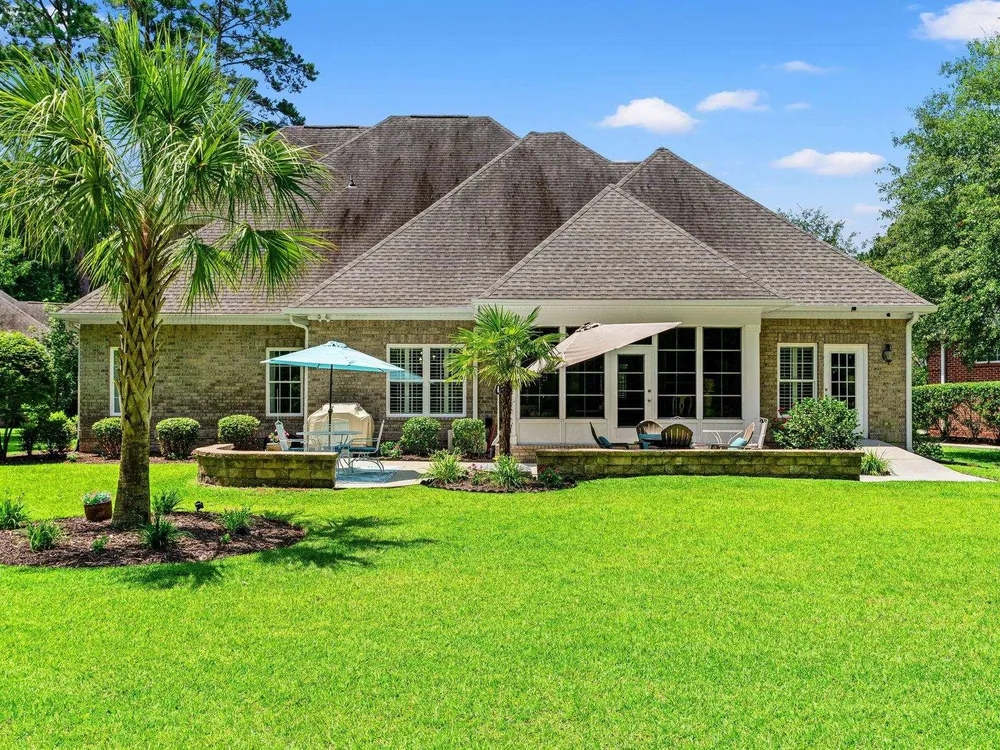 Location, location, location! Step into luxury in this stunning 5 bedroom, 3.5 bath home situated off the 9th hole of the prestigious Blackmoor Golf Course. Built in 2018 and offering over 4,000 sq. ft. under roof, this residence is designed with comfort, style, and function in mind. From the moment you arrive, the custom driveway, brick stucco, and mature landscaping set the tone for what awaits inside. The main floor Primary Suite features dual vanities, a soaking tub, walk-in shower, and an extra-large walk-in closet. The home also includes a private back bedroom with handicap accessibility and a zero-threshold shower for added convenience. At the heart of the home is a chef’s kitchen, complete with granite countertops, custom cabinetry, oversized center island, double ovens, and a gas cooktop—perfect for both everyday living and entertaining. The kitchen opens to a spacious living area with vaulted ceilings, a breakfast nook, and access to the Carolina Room with Easy Breeze windows and mini-split system, offering year-round enjoyment. Additional highlights include: formal dining room, private office, plantation shutters, crown molding, tankless water heater, oversized garage with ample storage, and large bedrooms. Outside, enjoy serene view of the 9th fairway and wooded backdrop, creating a private retreat while still being in the heart of a sought-after golf community. This home offers the perfect balance of luxury, functionality, and timeless design—a true Murrells Inlet gem! Schedule your showing today.