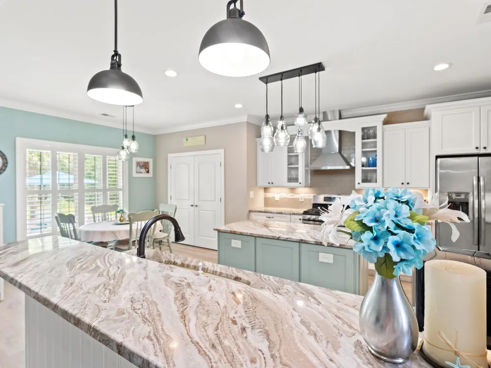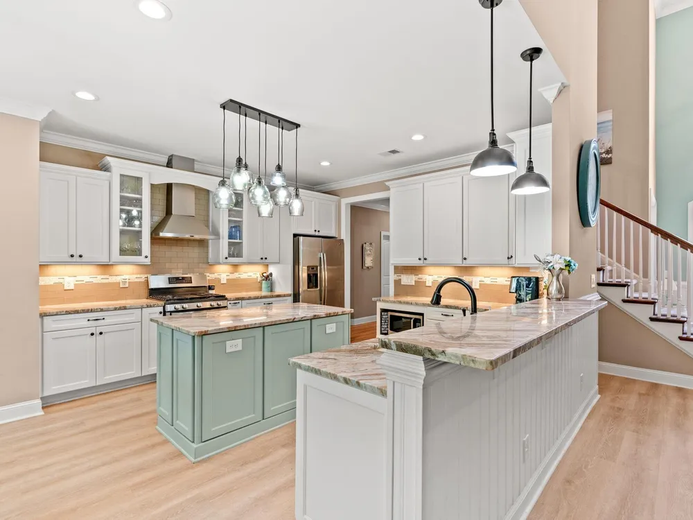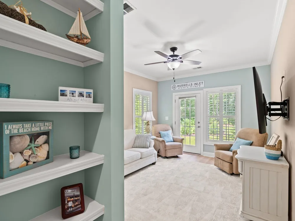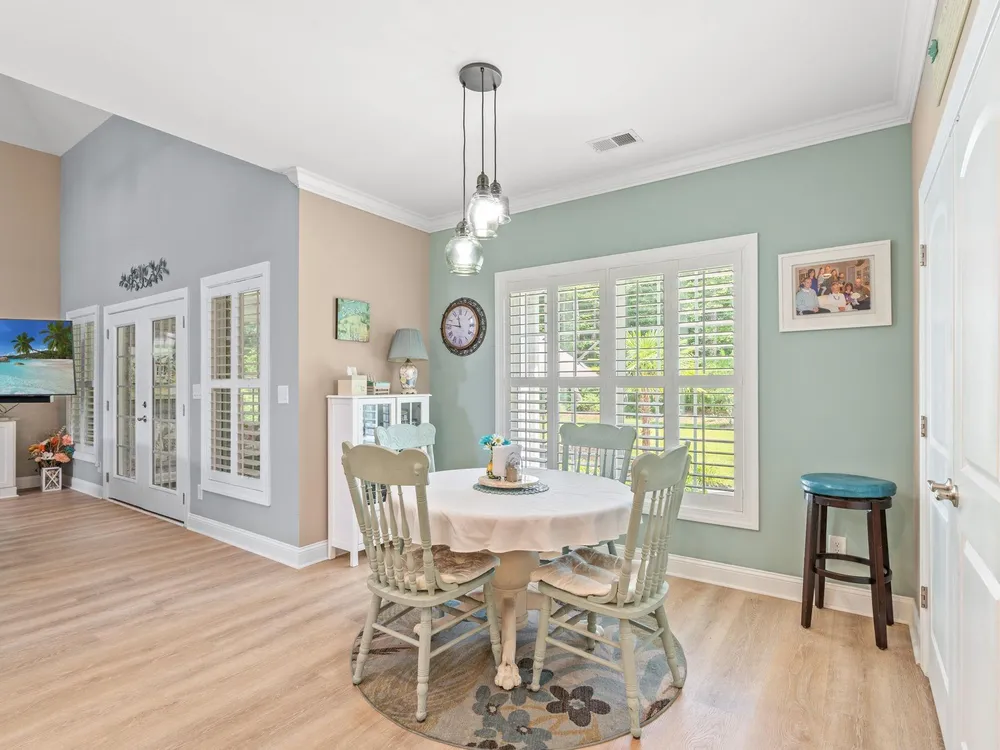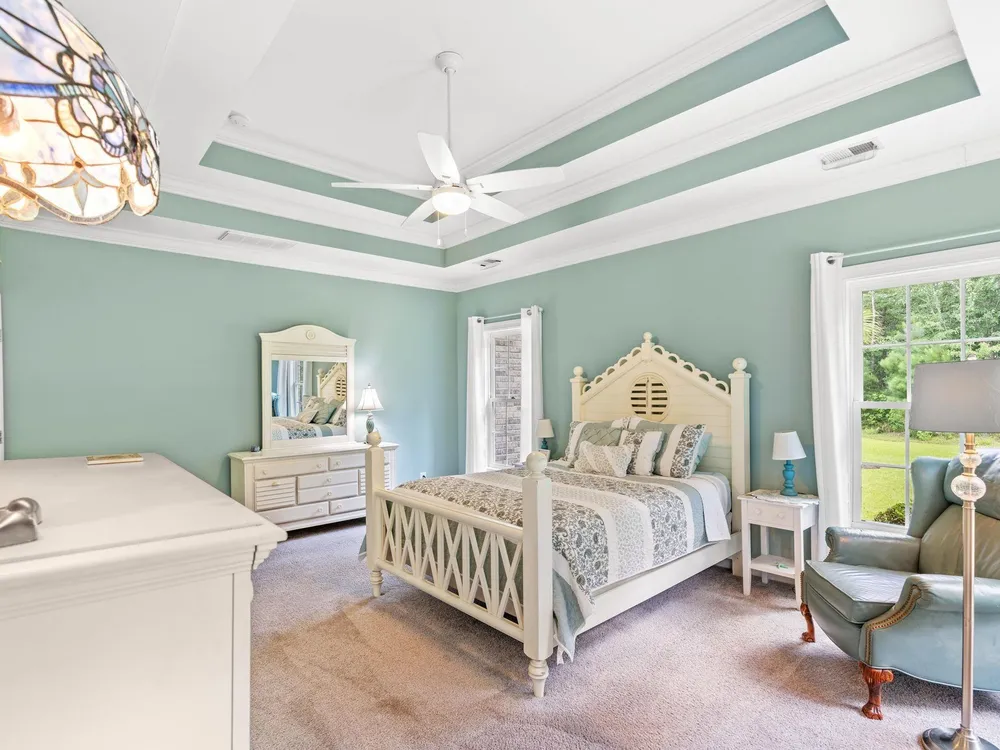 Location, location, location! Step into luxury in this stunning 5 bedroom, 3.5 bath home situated off the 9th hole of the prestigious Blackmoor Golf Course. Built in 2018 and offering over 4,000 sq. ft. under roof, this residence is designed with comfort, style, and function in mind. From the moment you arrive, the custom driveway, brick stucco, and mature landscaping set the tone for what awaits inside. The main floor Primary Suite features dual vanities, a soaking tub, walk-in shower, and an extra-large walk-in closet. The home also includes a private back bedroom with handicap accessibility and a zero-threshold shower for added convenience. At the heart of the home is a chef’s kitchen, complete with granite countertops, custom cabinetry, oversized center island, double ovens, and a gas cooktop—perfect for both everyday living and entertaining. The kitchen opens to a spacious living area with vaulted ceilings, a breakfast nook, and access to the Carolina Room with Easy Breeze windows and mini-split system, offering year-round enjoyment. Additional highlights include: formal dining room, private office, plantation shutters, crown molding, tankless water heater, oversized garage with ample storage, and large bedrooms. Outside, enjoy serene view of the 9th fairway and wooded backdrop, creating a private retreat while still being in the heart of a sought-after golf community. This home offers the perfect balance of luxury, functionality, and timeless design—a true Murrells Inlet gem! Schedule your showing today.