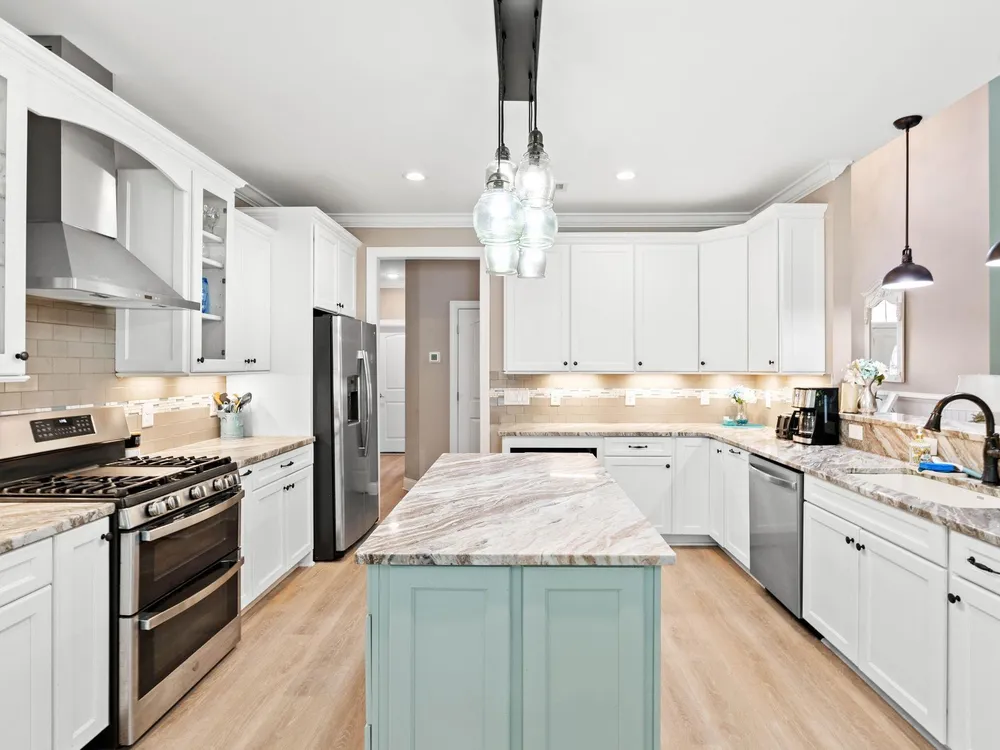 - Double Oven, Dishwasher, Disposal, Microwave, Refrigerator, Range Hood