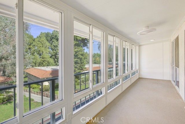 Welcome to 658-O Avenida Sevilla – a two-bedroom, two-bath upper CASTILLA residence with just over 1000 square feet of living space in the Laguna Woods senior community. This property is close to the Aliso Creek with its lovely walking path. The interior of the unit offers several major upgrades including central heat and air, smooth ceilings, fans in both the living room and primary bedroom and a full-size stackable washer-dryer conveniently located in a hall closet. This home features a lovely panoramic tree-filled neighborhood view from the rear balcony. Accessible via glass sliders in the living room, the covered enclosed balcony is ideal for year-round entertaining, dining and relaxing. The kitchen has stainless steel appliances and granite countertops. The spacious primary bedroom suite has ample closet storage space. The versatile guest bedroom can also serve as a home office, workout space, sewing room, arts and crafts studio or any number of other uses. The nearby assigned carport is just steps away and features both upper and lower storage cabinets. Do not miss this terrific residence!