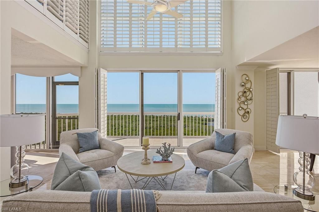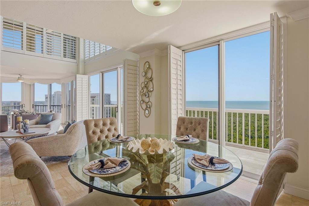 This rare two-story penthouse residence offers a sophisticated architectural presence seldom found in the Naples high-rise market. On the 21st floor, PH-2 delivers elevated coastal living with expansive western exposures overlooking protected mangrove preserves and the open waters of the Gulf of Mexico, providing breathtaking sunset views and a remarkable sense of privacy. The residence encompasses 2,703 square feet of verified living area and features four bedrooms plus a den and 3.5 baths, thoughtfully arranged across the two levels. This distinctive layout creates natural separation between private living quarters and main entertaining spaces, an intentional design benefit that enhances livability, functionality and guest privacy. For buyers seeking the scale and flow of a single-family home with the ease of condominium living, this architectural configuration offers an exceptional solution. Interior updates and improvements reflect commitment to quality and comfort, with refined finishes, generous ceiling heights, and expansive window walls that maximize light and views throughout the home. The kitchen has been remodeled and enhanced, offering granite countertops, updated cabinetry and stainless steel appliances. Hurricane-impact glass windows provide storm protection, energy efficiency and peace of mind. The air-conditioning system has been replaced in recent years, underscoring the attention given to the mechanical infrastructure. The residence has been carefully maintained and enhanced to support full-time and seasonal living, offering immediate enjoyment while allowing flexibility for further personalization. The building’s recently updated common areas set a luxurious tone upon arrival, with redesigned lobbies and resident spaces that elevate the overall living experience and reinforce long-term value. Residents enjoy a refined, well-managed environment within Pelican Bay, one of Naples sought-after coastal communities. Ideally situated in Naples, this penthouse combines architectural distinction, upscale amenities and proximity to Pelican Bay’s beaches, dining and cultural offerings, presenting a compelling opportunity for buyers seeking a premier lifestyle at an elevated standard.